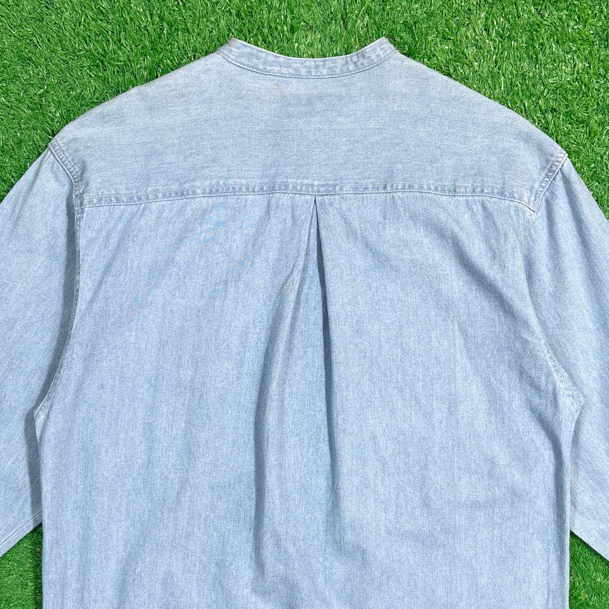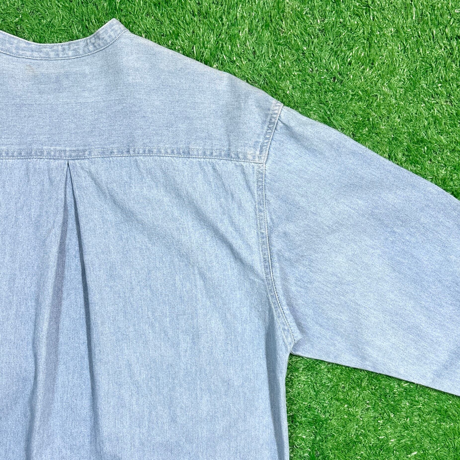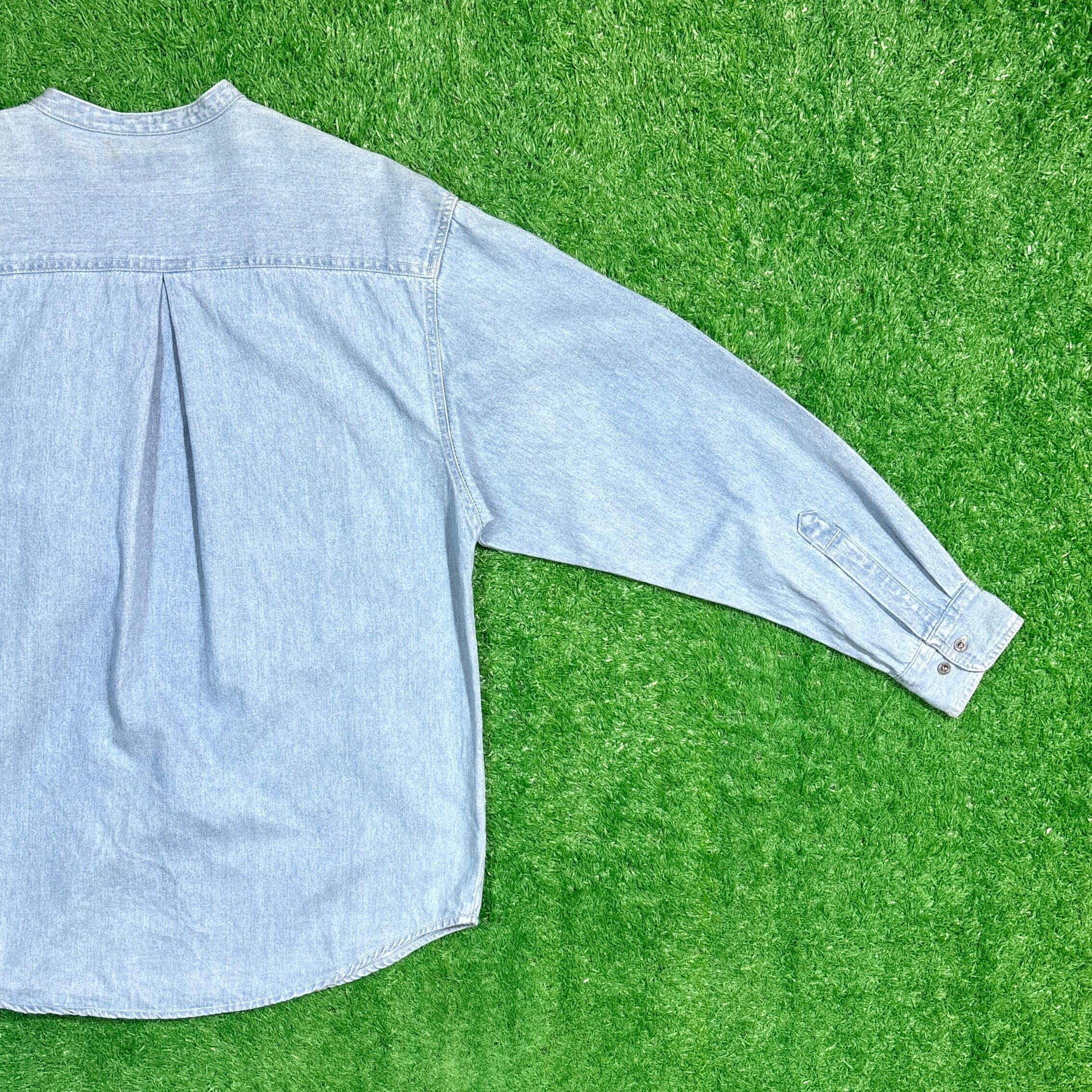 【Men's】 90s ノーカラー デニムシャツ / 90年代 古着 長袖 シャツ メンズ 襟なし 703