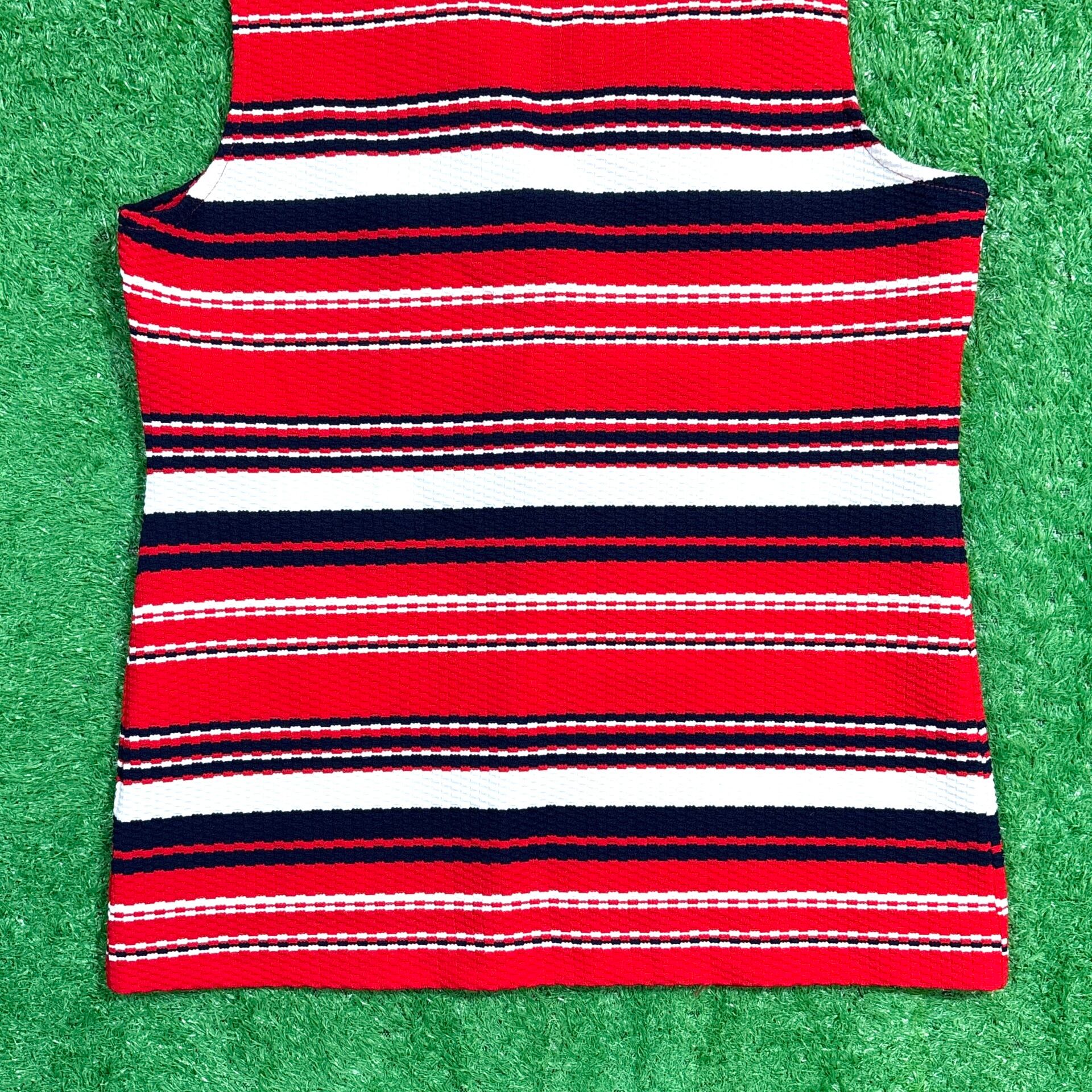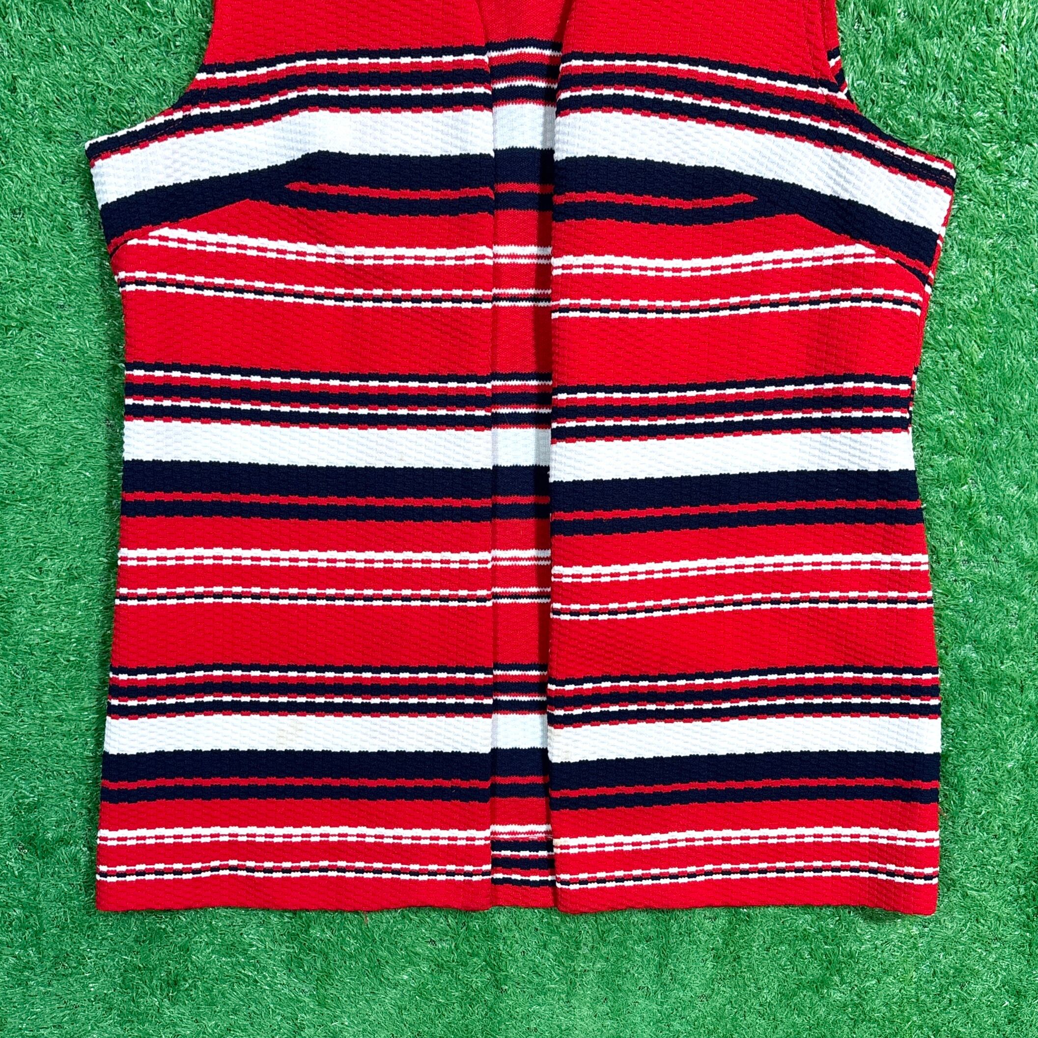 【Lady's】 70ボーダー デザイン ベスト / 70年代 レトロ 古着 レディース 赤 711