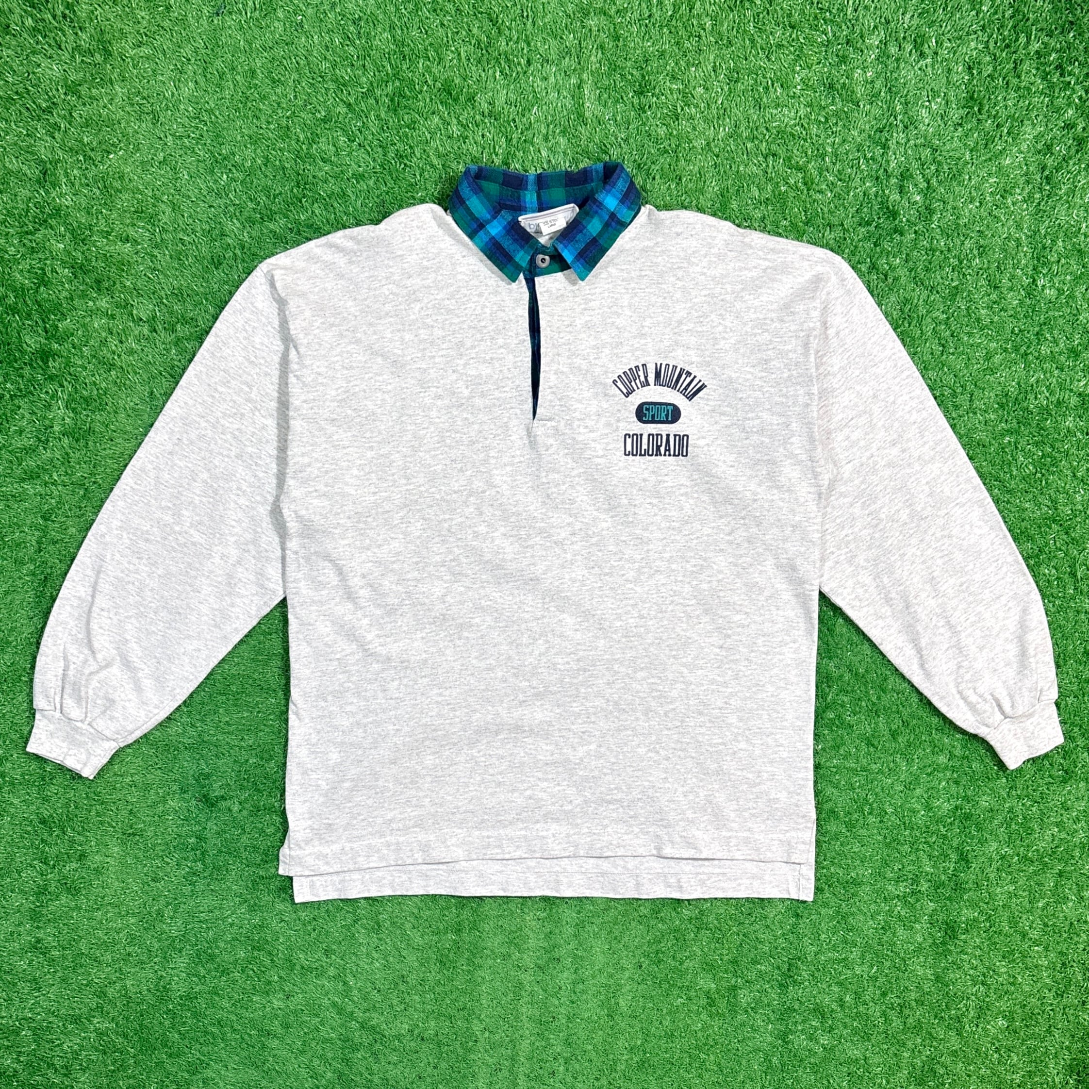 胸元には「COPPER MOUNTAIN COLORADO」のカレッジ風ロゴプリントが入り、スポーティーかつカジュアルな雰囲気を演出。薄手のスウェット生地で、柔らかく軽い着心地が魅力です。襟元にはチェックの生地が切り替えで施されておりアクセントになっています。