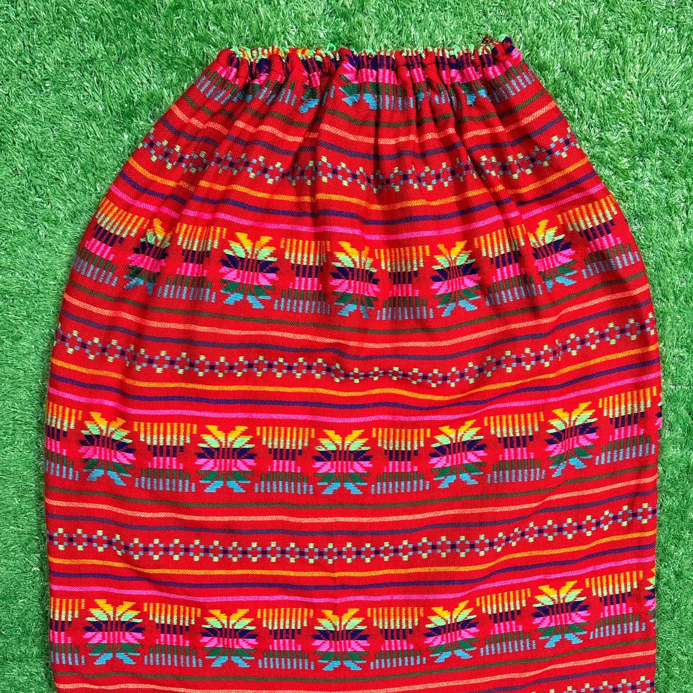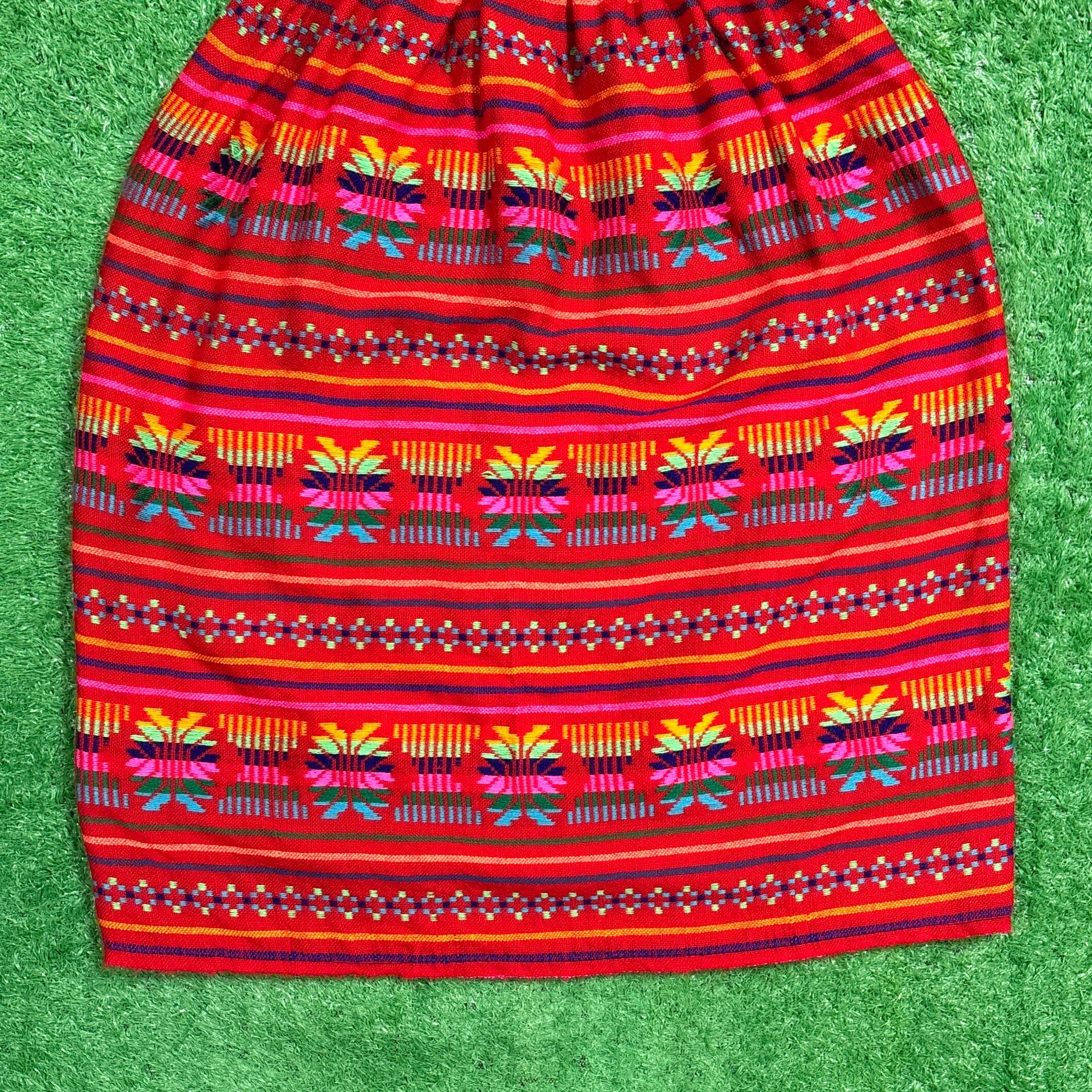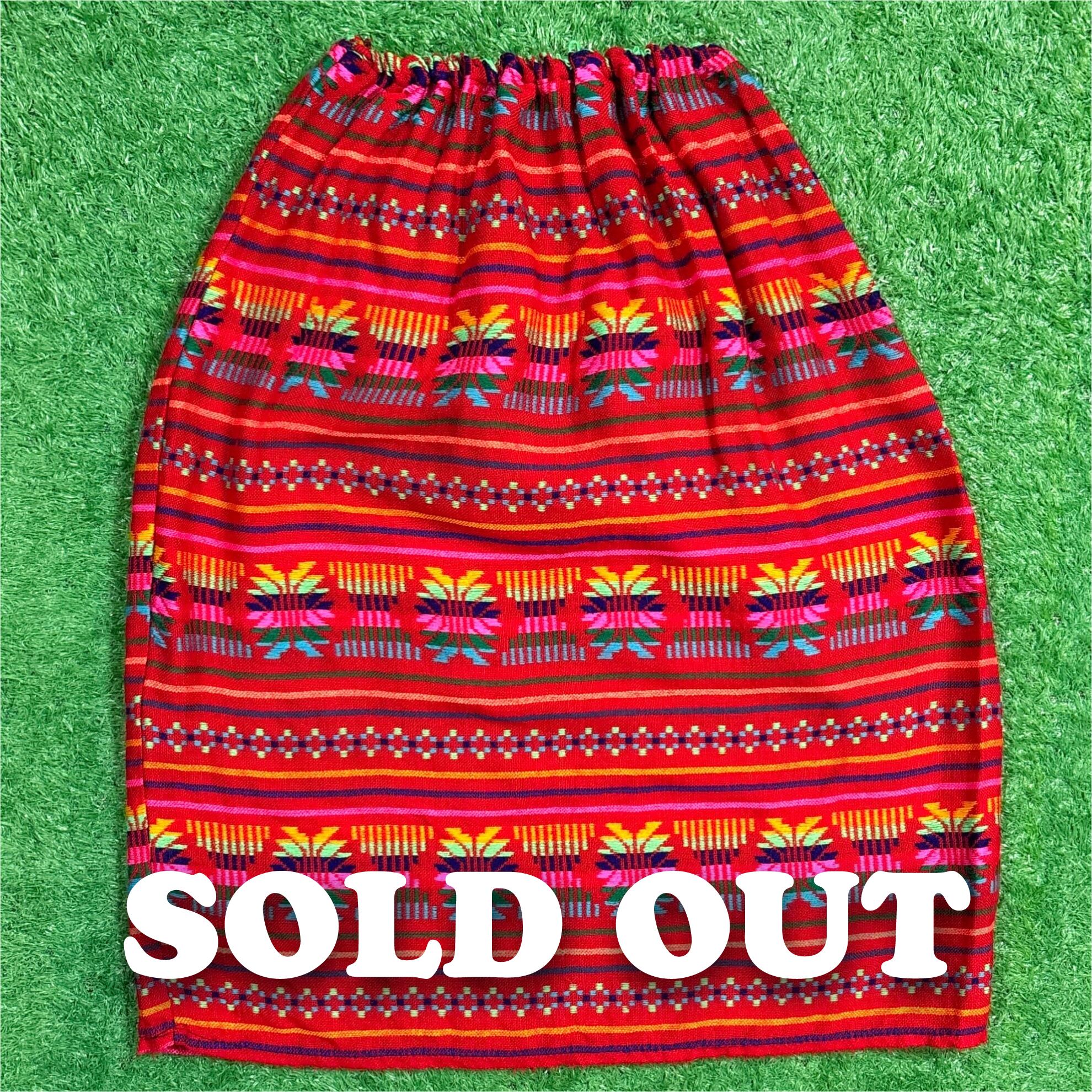【Lady's】 ネイティブ柄 イージー スカート / 古着 赤 レディース 総柄 725