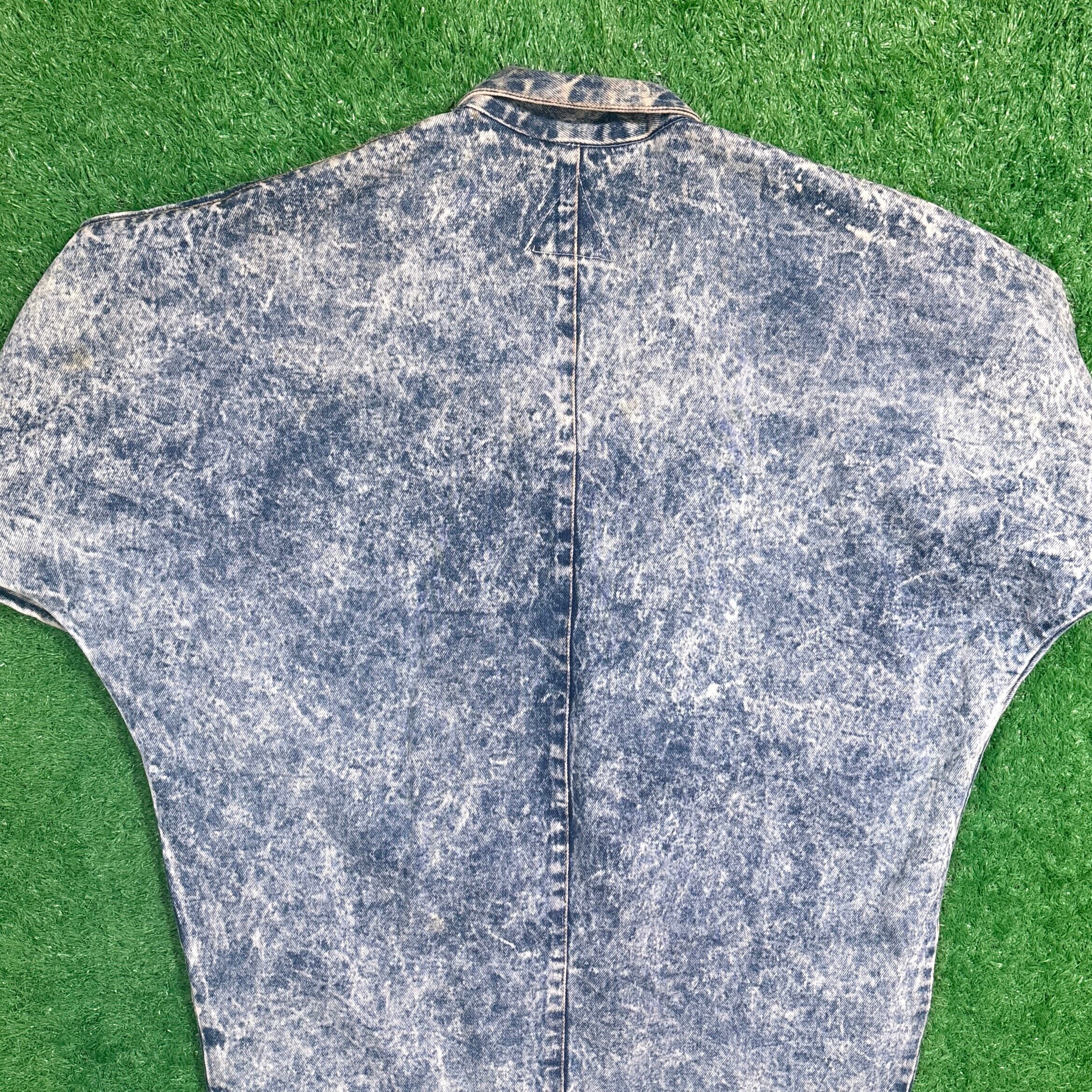 【Unisex】 90s ケミカルウォッシュ デニム テーラードジャケット / アメリカ製 USA製 90年代 デニムジャケット ジャケット 古着 メンズ レディース 728