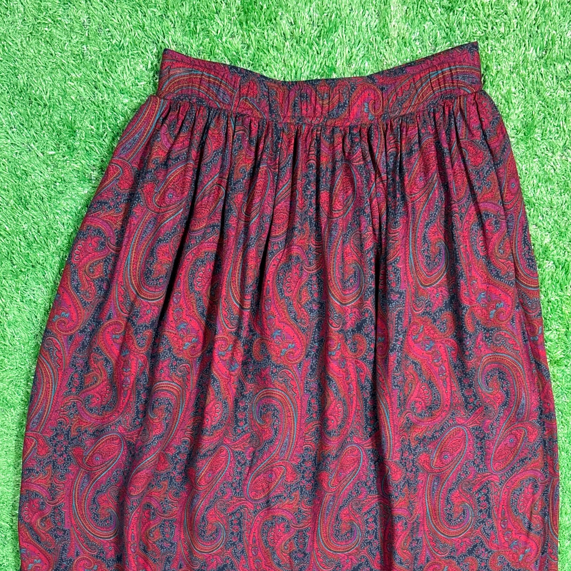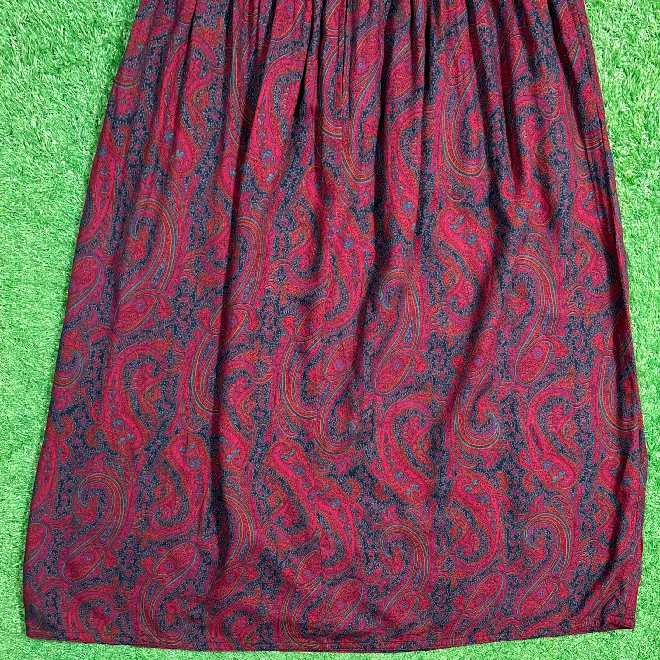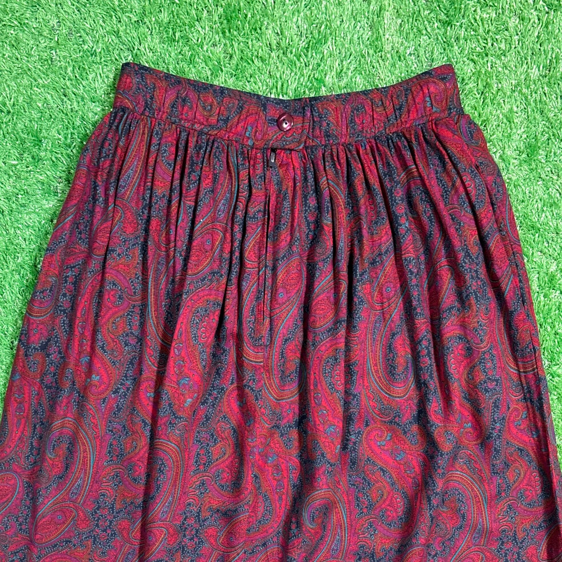【Lady's】 90s ペイズリー柄 イージー スカート / アメリカ製 USA製 90年代 総柄 レディース 赤 古着 741