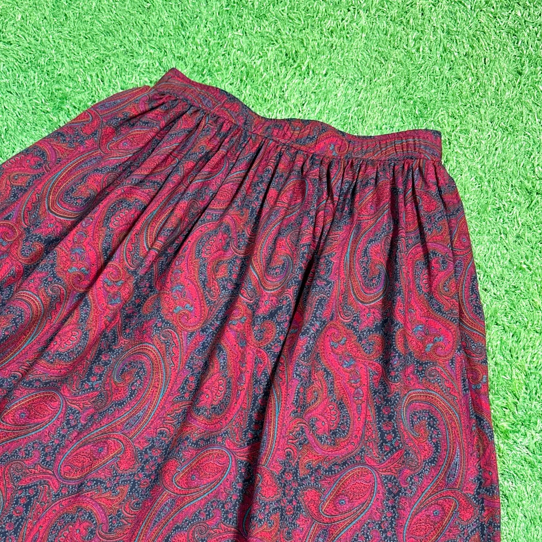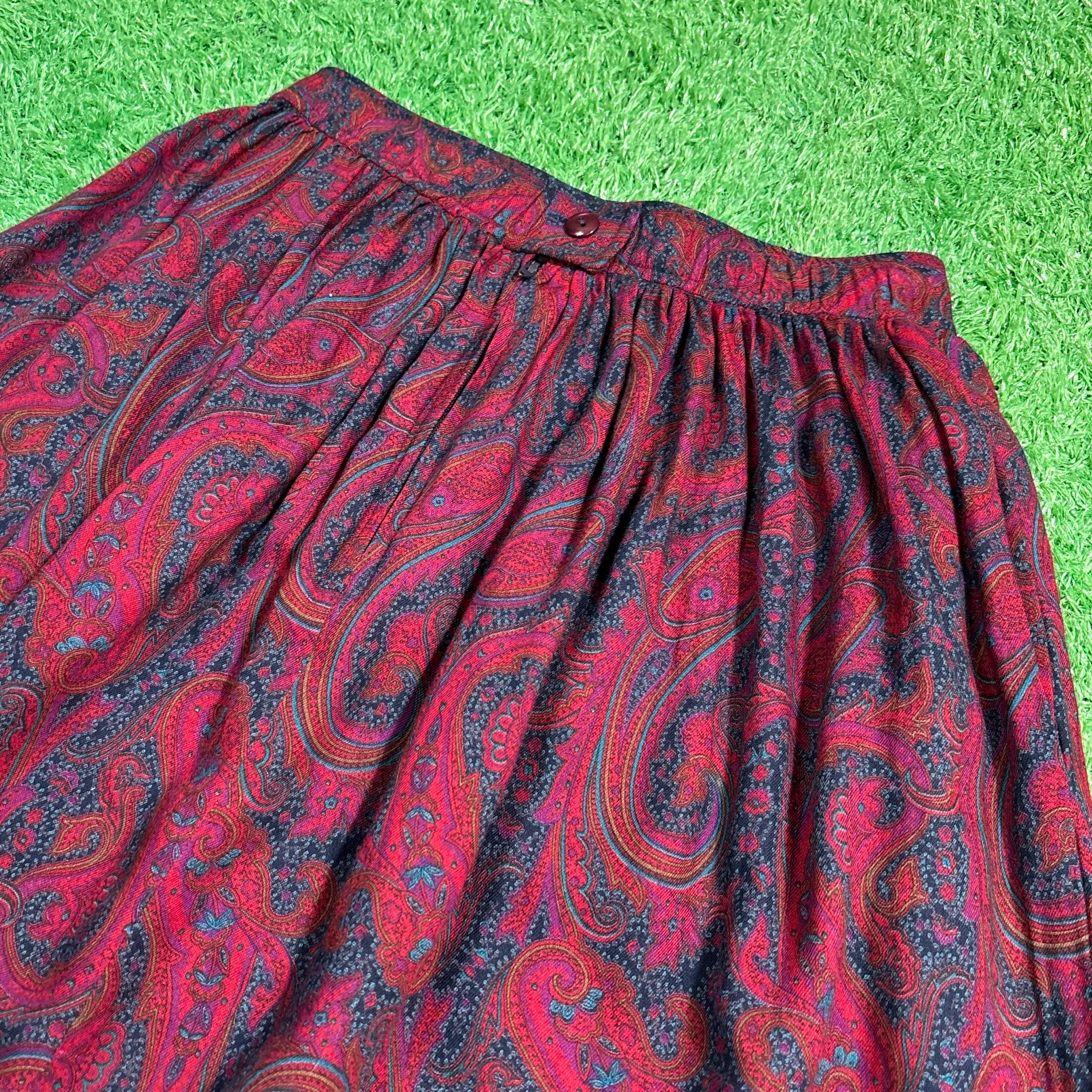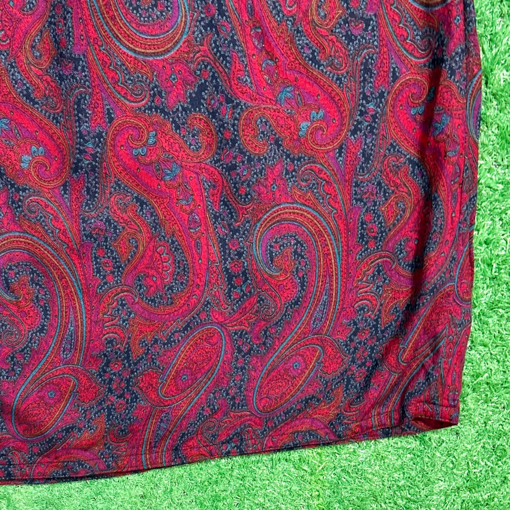 【Lady's】 90s ペイズリー柄 イージー スカート / アメリカ製 USA製 90年代 総柄 レディース 赤 古着 741