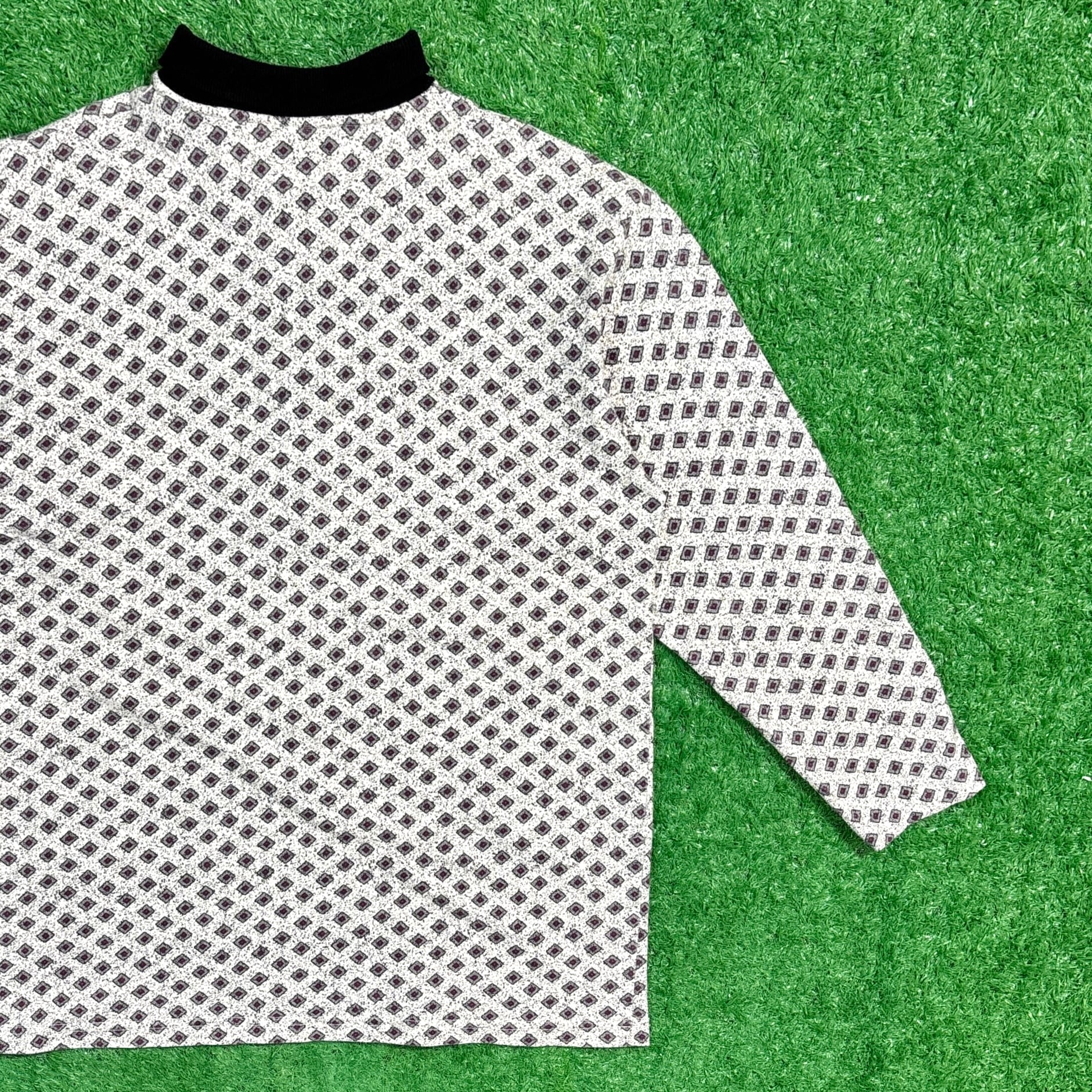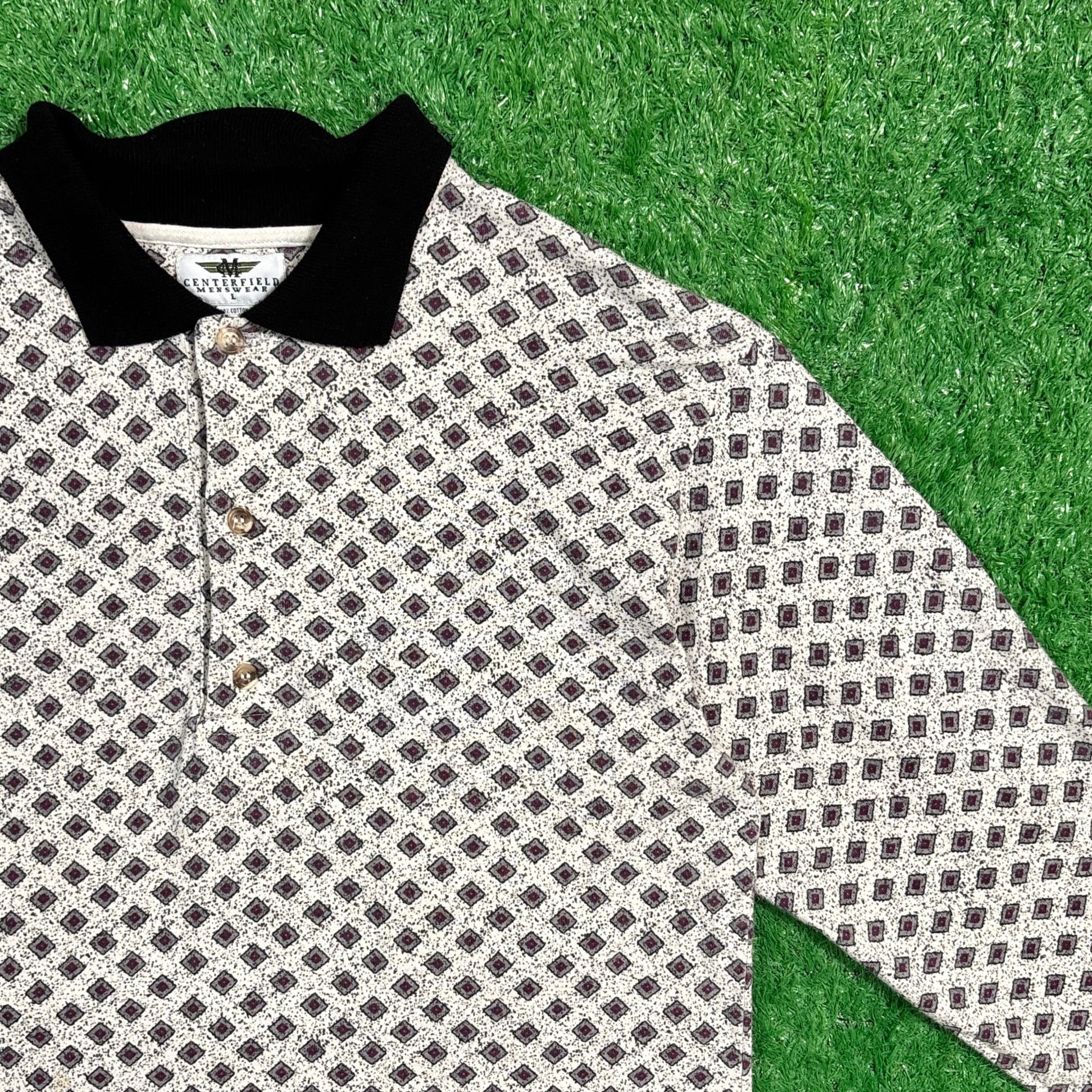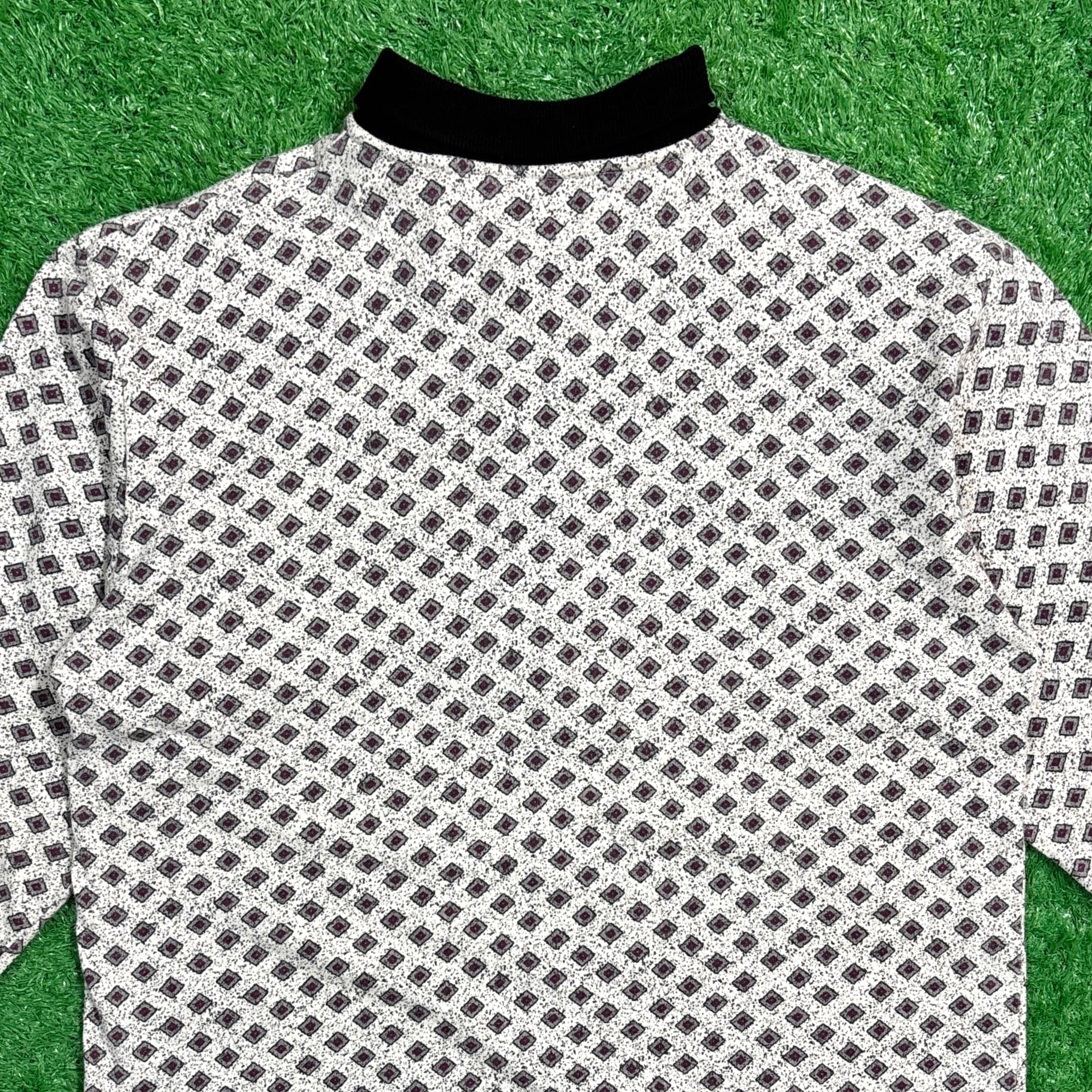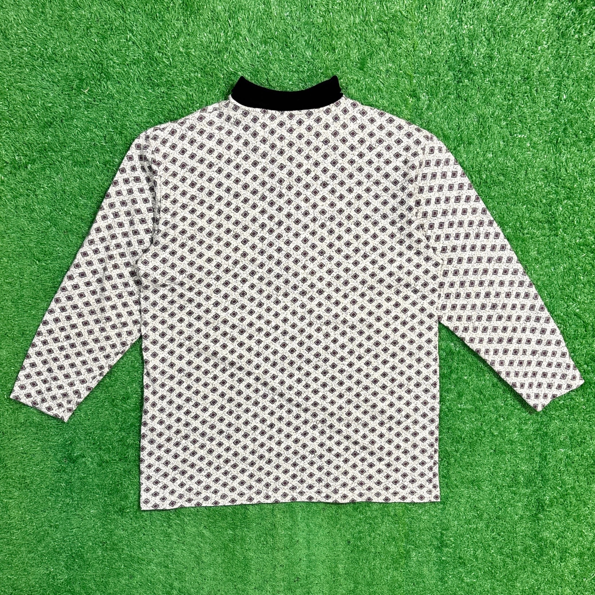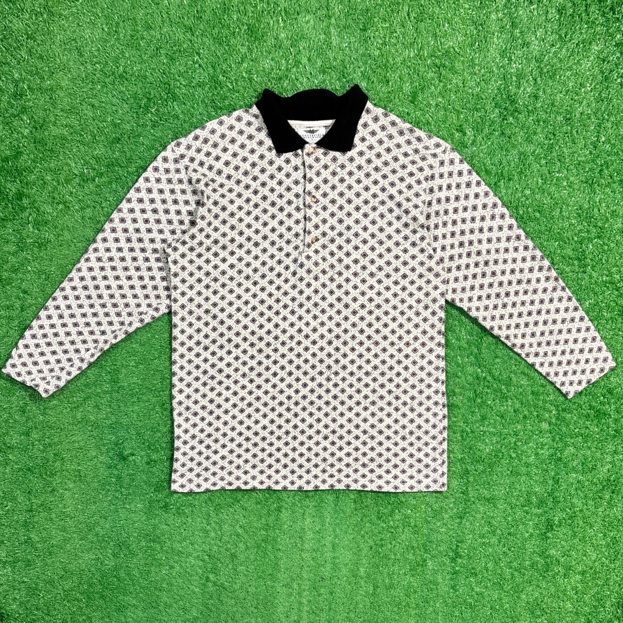 【Men's】 90s ハーフボタン 襟付き トップス / 90年代 古着 長袖 ポロシャツ メンズ 総柄 760