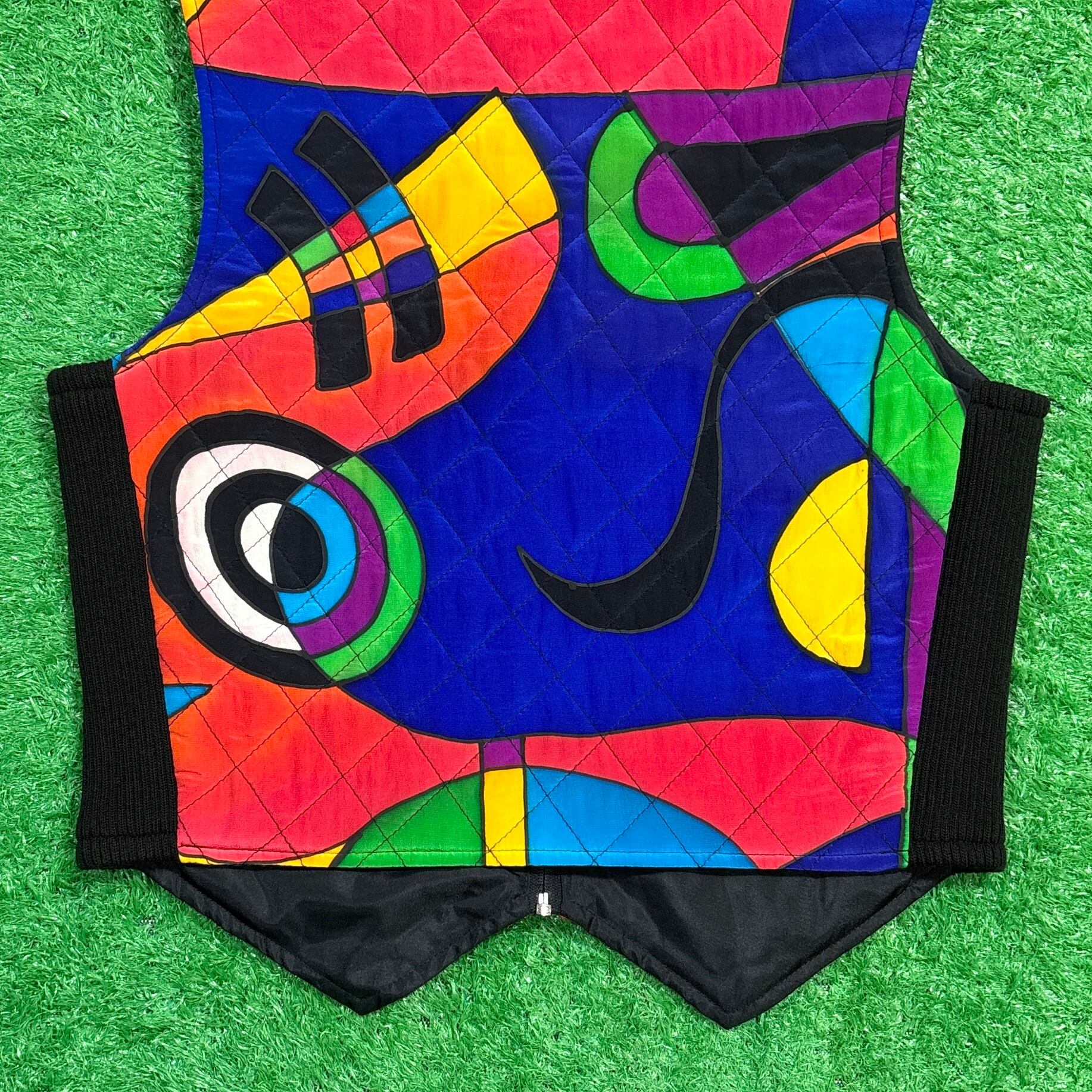 【Lady's】 90s ヒッピー イラスト キルティング ベスト / 古着 総柄 レディース 762