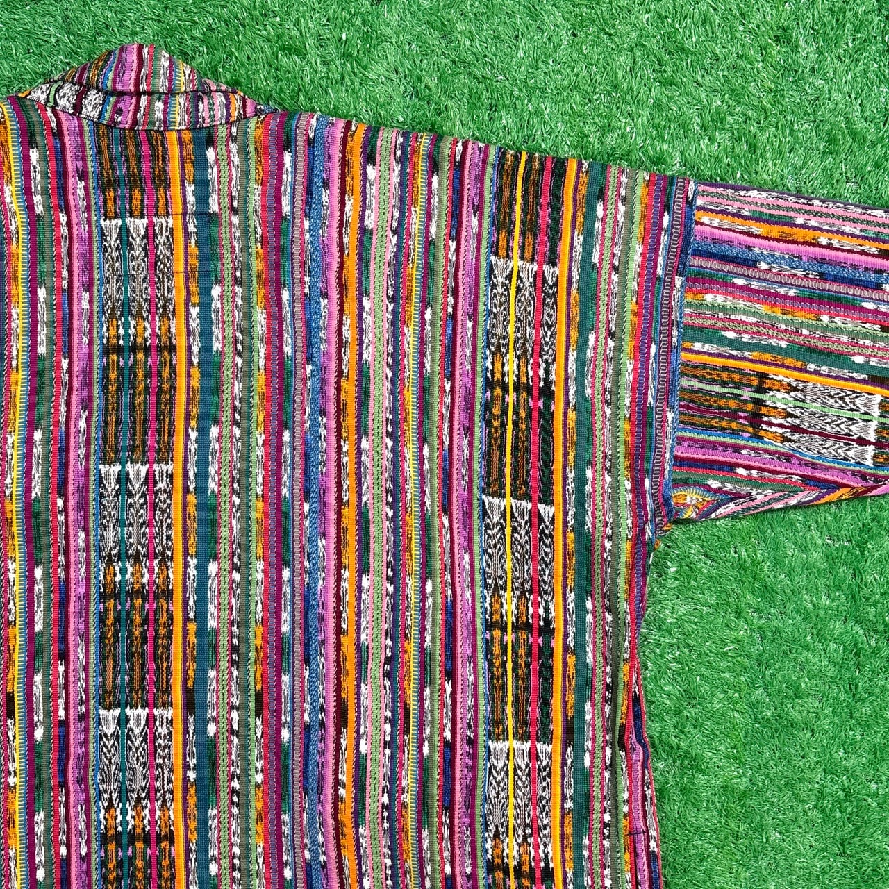 【Unisex】 Guatemala 織り 羽織り ジャケット / グアテマラ製 古着 羽織 メンズ レディース ネイティブ 民族 ヒッピー 766