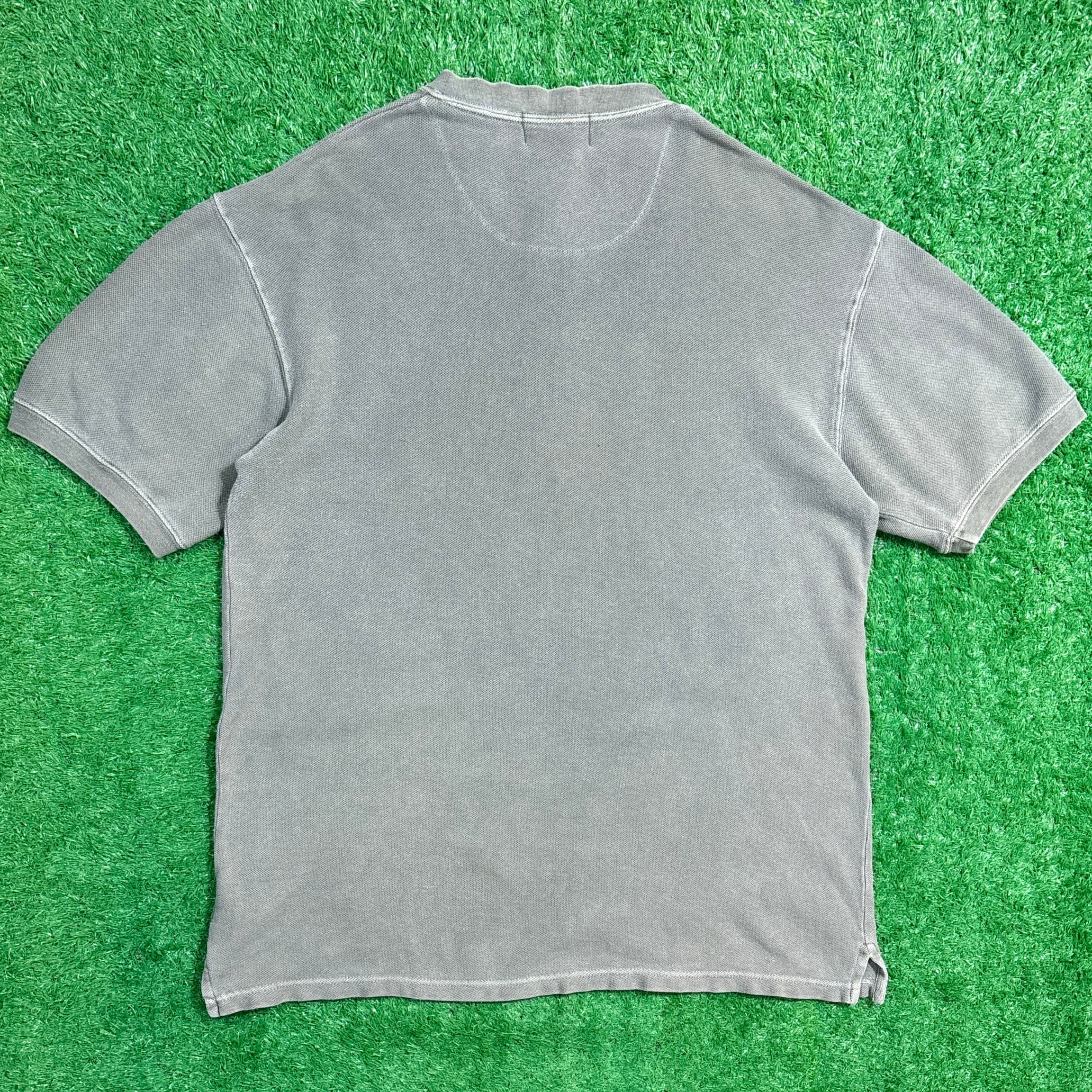 鹿の子特有の凹凸感があり、さらりとした快適な着心地が魅力。グレーの落ち着いたカラーに加え、胸元のヘンリーネックデザインが程よいアクセントになっています。シンプルながらも古着らしい雰囲気を感じられる一枚です。