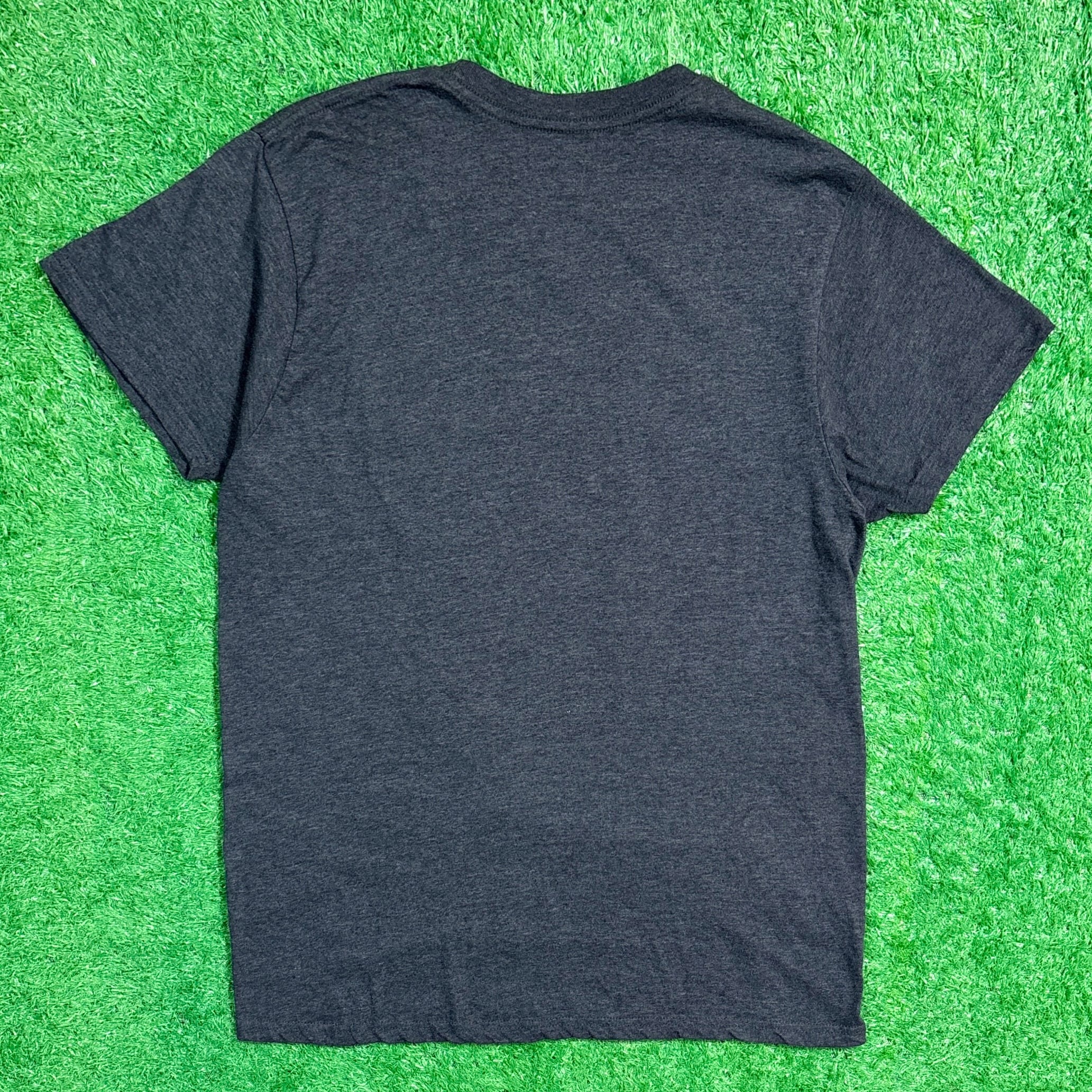 フロントにはアイコニックな“スマイルフェイス”ロゴと、サイケデリックなタイダイ風のカラフルな背景デザインが印象的。シンプルながら一枚で存在感を放つ、ファン必携のロックTです。