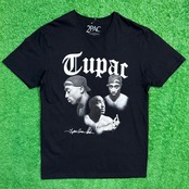 フロントには2PACの印象的なポートレートをモノトーンで大胆にプリント。存在感のあるゴシック調の「Tupac」ロゴがアクセントになっています。90年代ヒップホップカルチャーを象徴するアーティストの世界観を存分に感じられる1枚です。