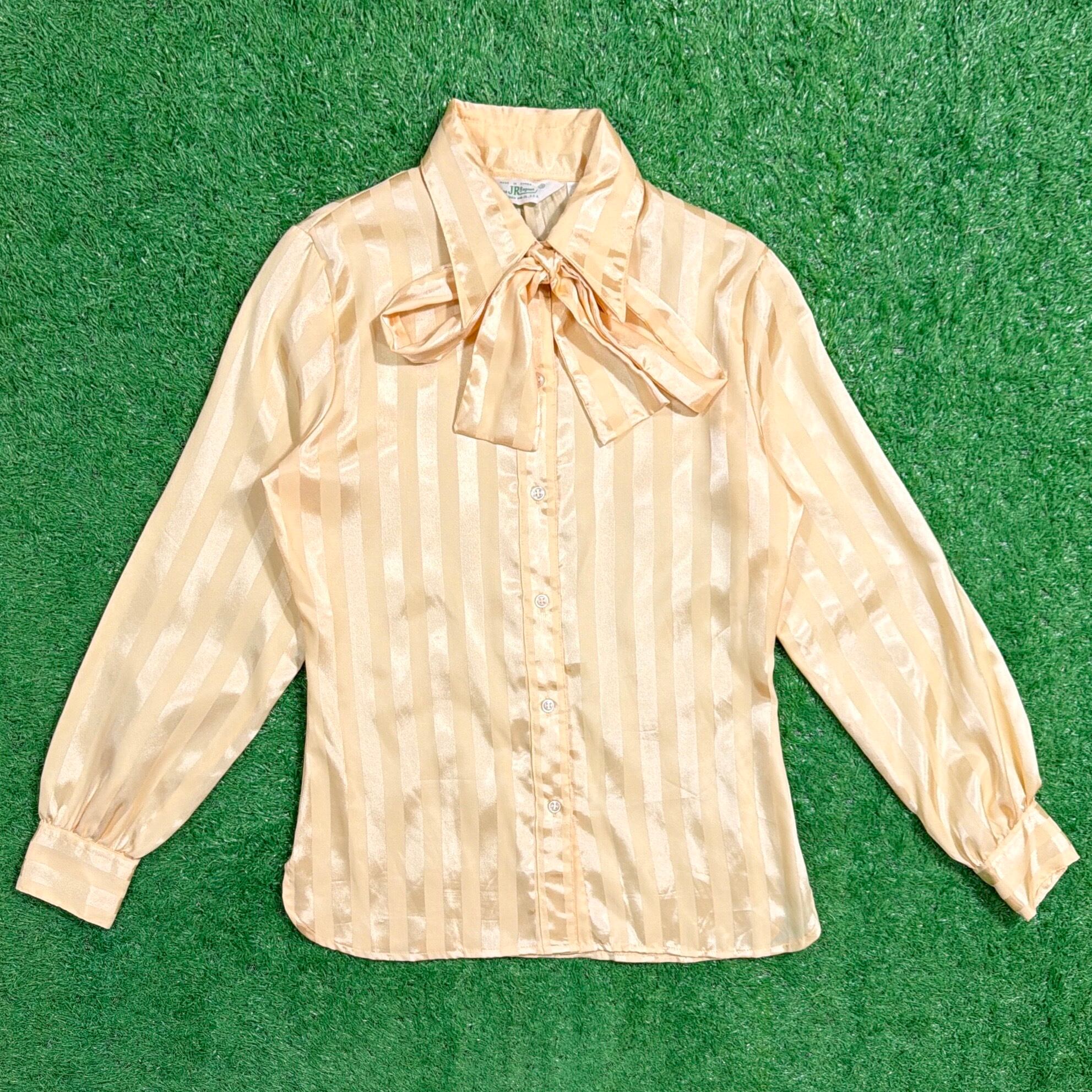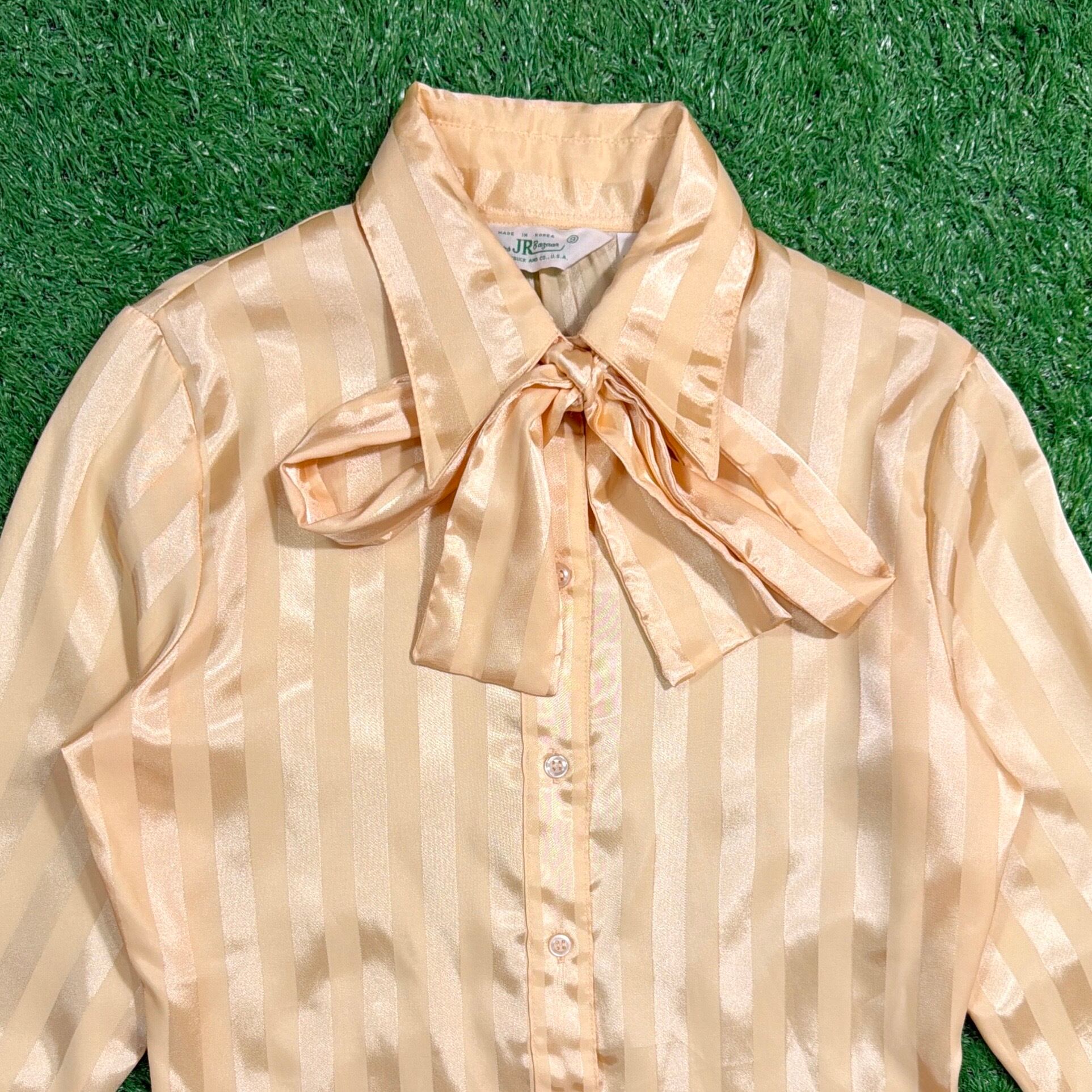 【Lady's】 70s Sears ストライプ ボウタイ シャツ / 70年代 シャツ 大人古着 ボウタイシャツ 古着 レディース ブラウス 840