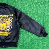 90年代のアメリカ製、イリノイ州のサンガモン・カウンティー(Sangamon County)にあるクォーターミジェット協会(Quarter Midget Association)のバックプリントが目を引くナイロンジャケットです。