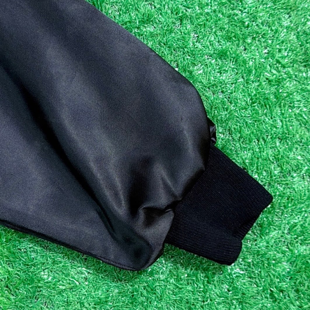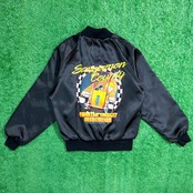 光沢感のあるブラックナイロンに、カーレースをイメージしたビビッドなレーシングカーのイラストが存在感抜群。リブ仕様の襟・袖口・裾がスタジャンライクなクラシックさを演出し、軽量でさらりと羽織れるのも魅力です。