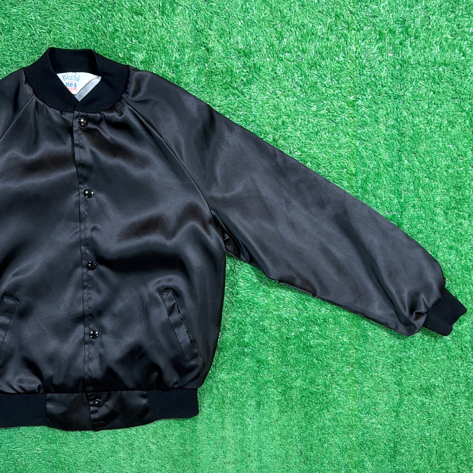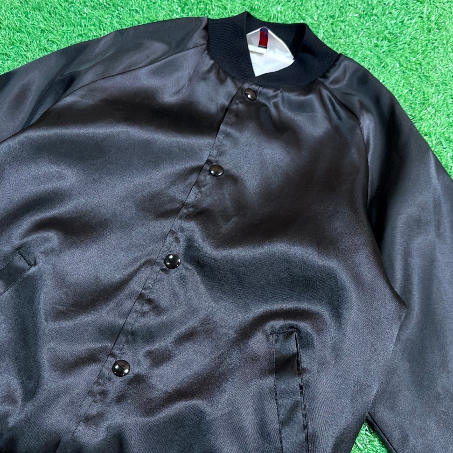 【Lady's】90s Sangamon County カーレース イラスト ナイロン ジャケット / アメリカ製 USA製 90年代 古着 スタジャン 黒 ブラック レディース 842