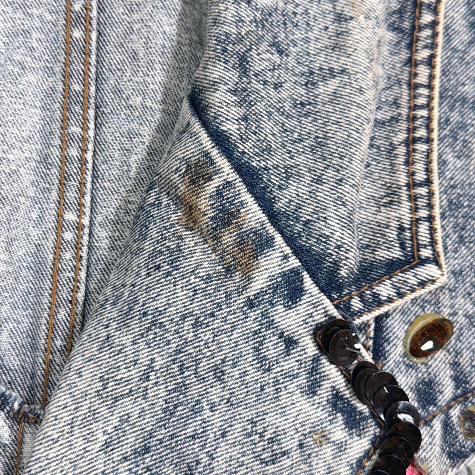 【Lady's】 80s フリンジ デザイン ケミカルウォッシュ デニムジャケット / 80年代 古着 ウエスタン ジャケット デニム アシッドウォッシュ レディース 844