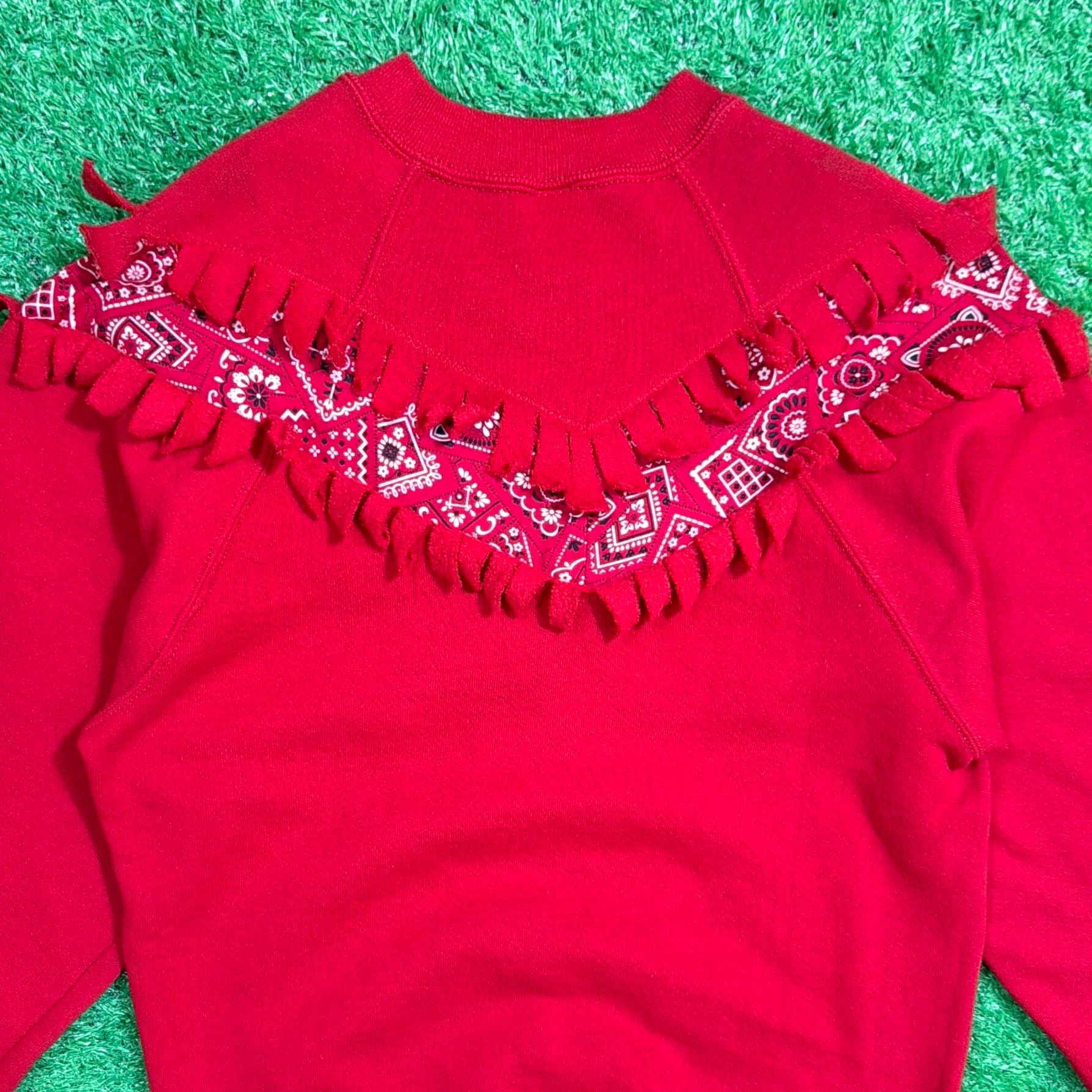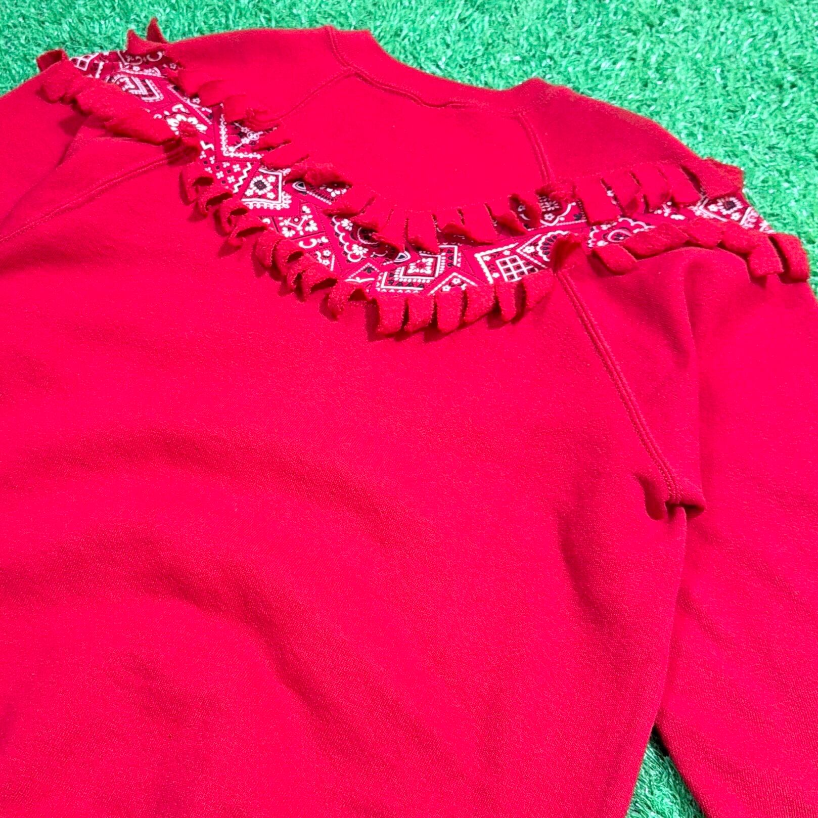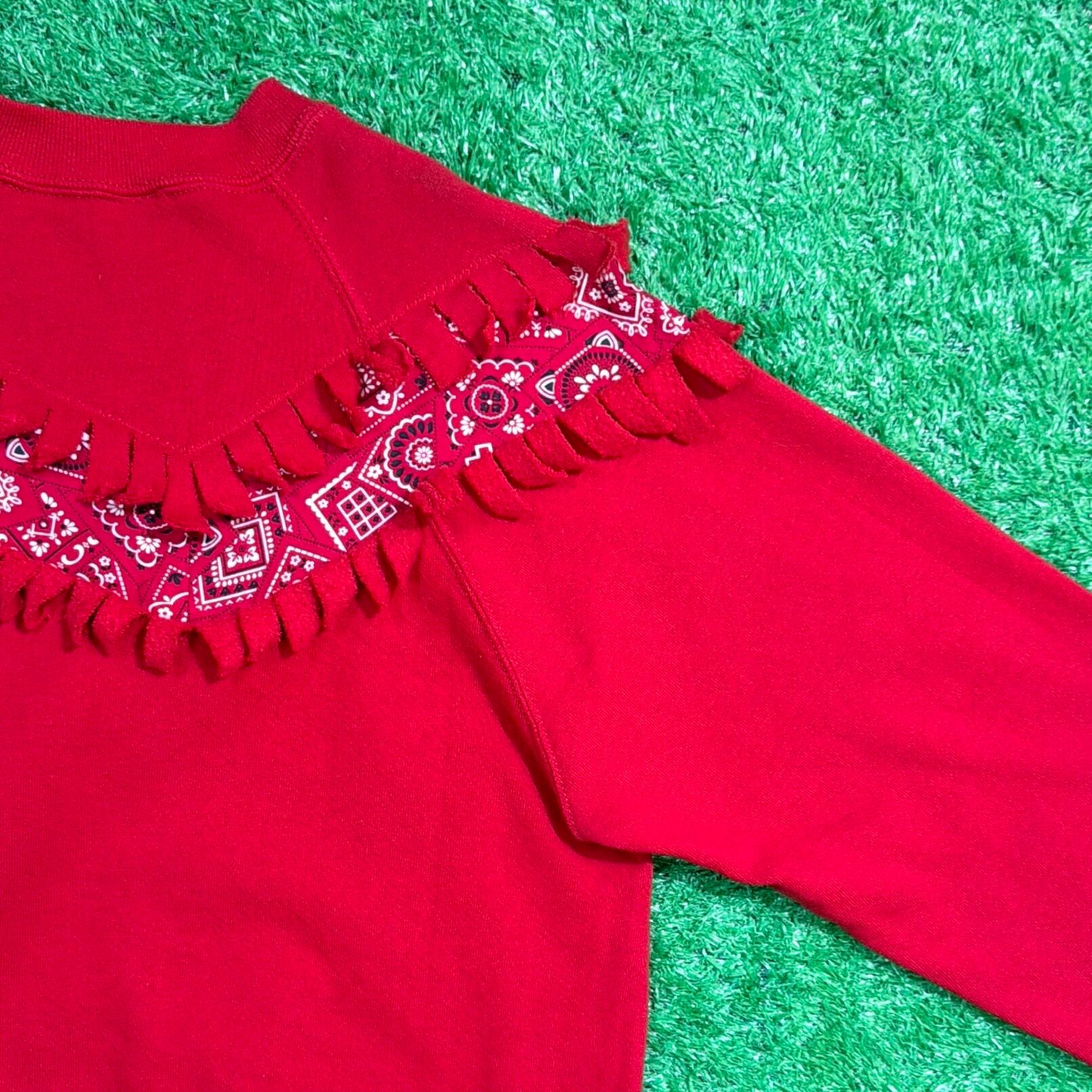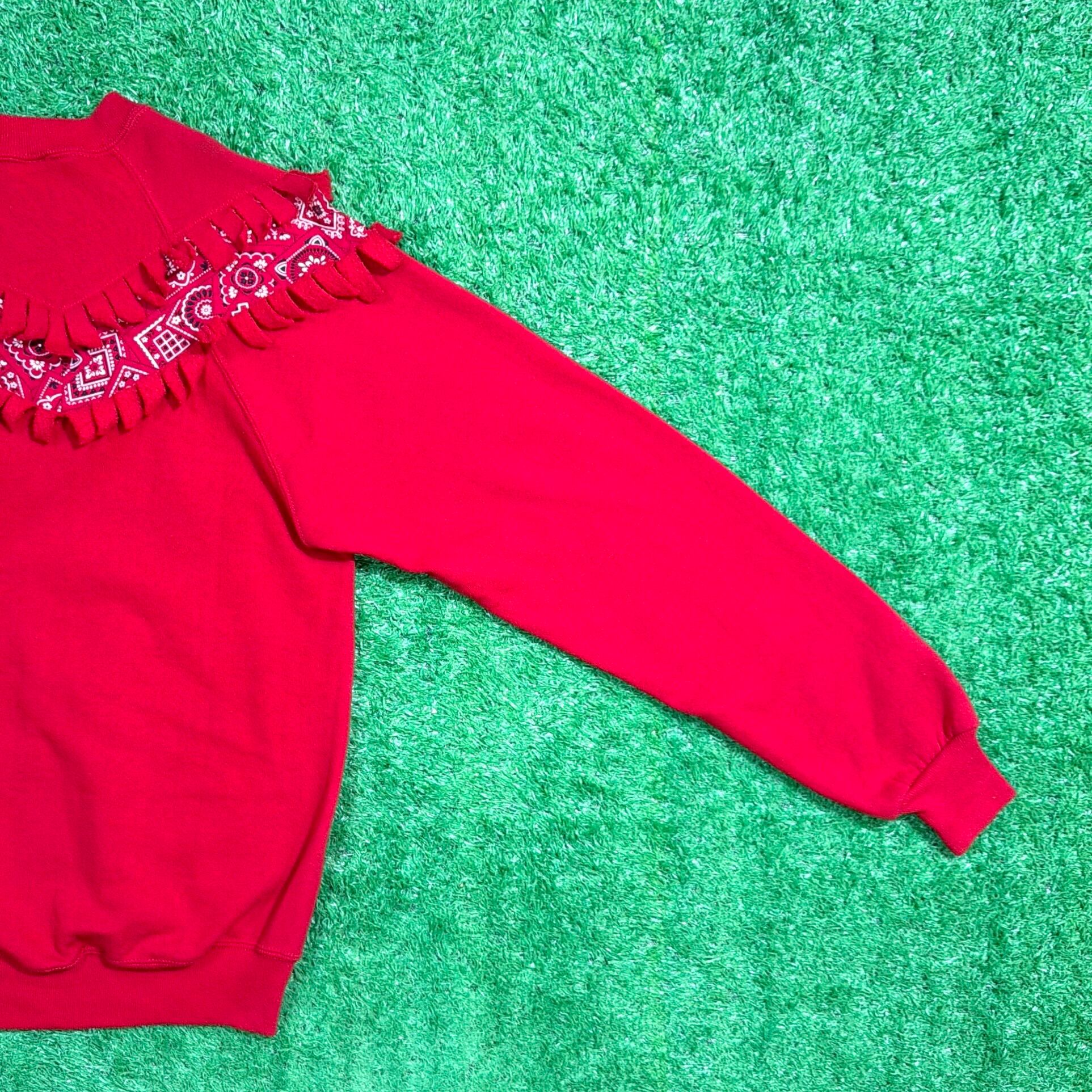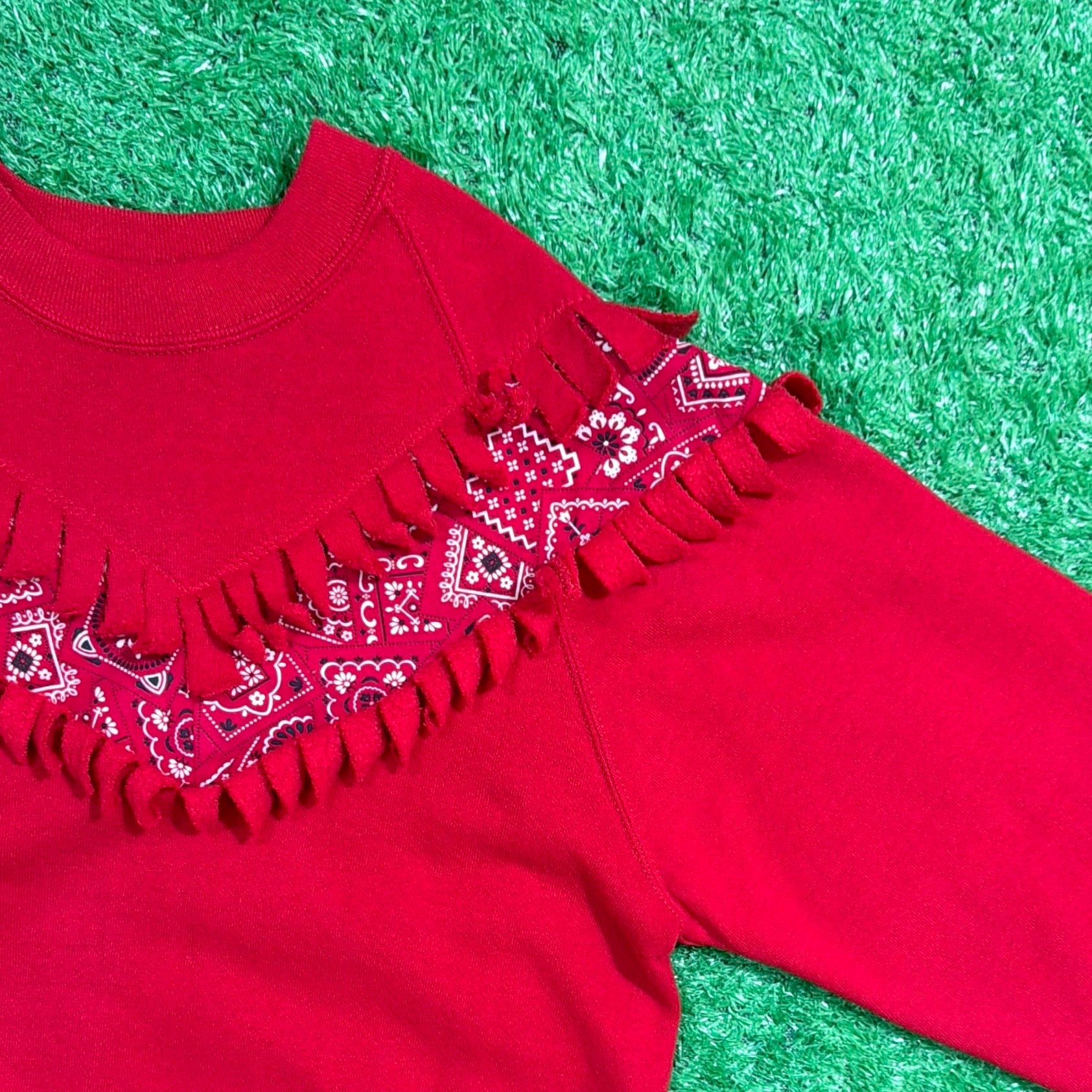 【Men's】 90s ウエスタン デザイン リメイク スウェットシャツ / アメリカ製 USA製 90年代 古着 スウェット トレーナー 赤 レッド ペイズリー フリンジ 847