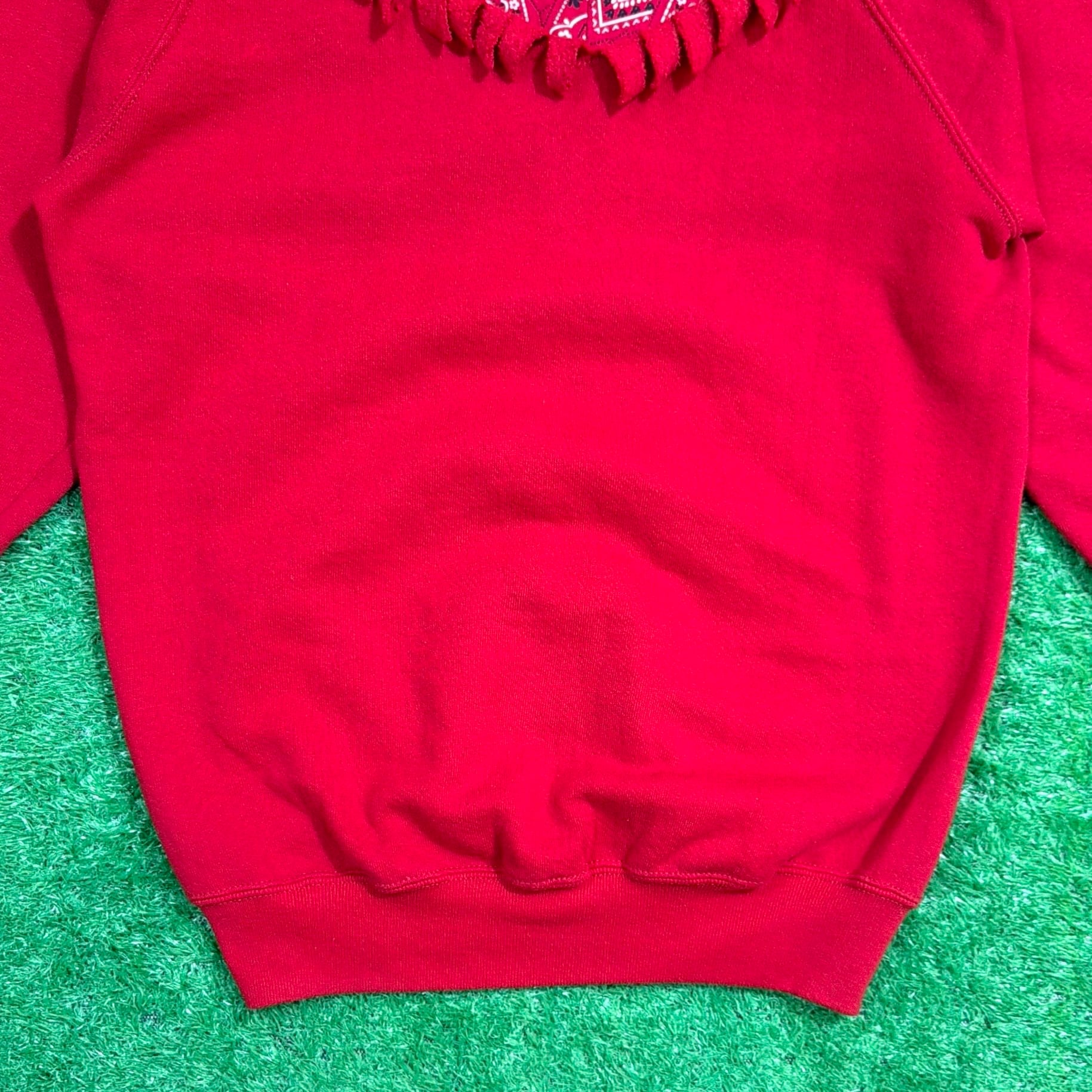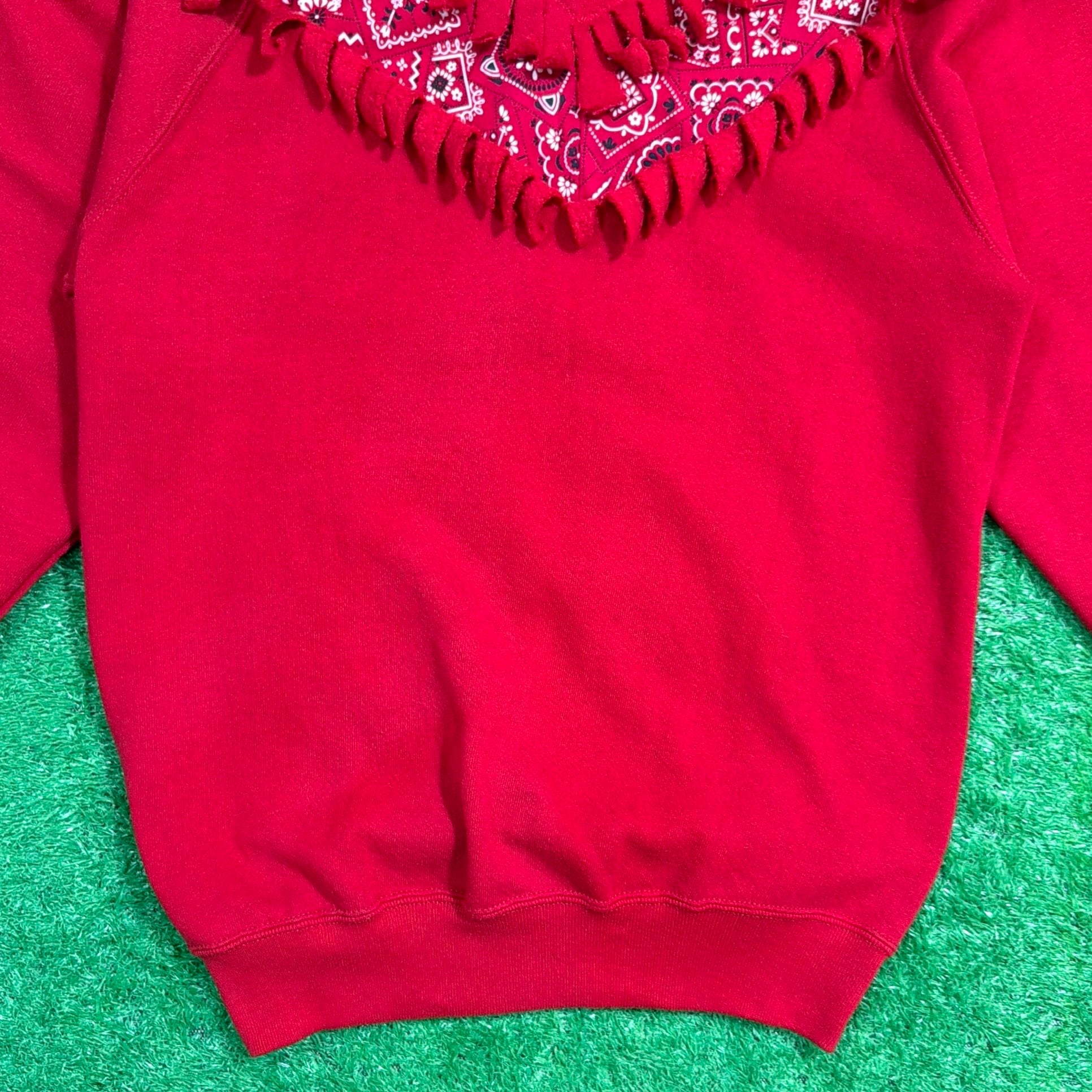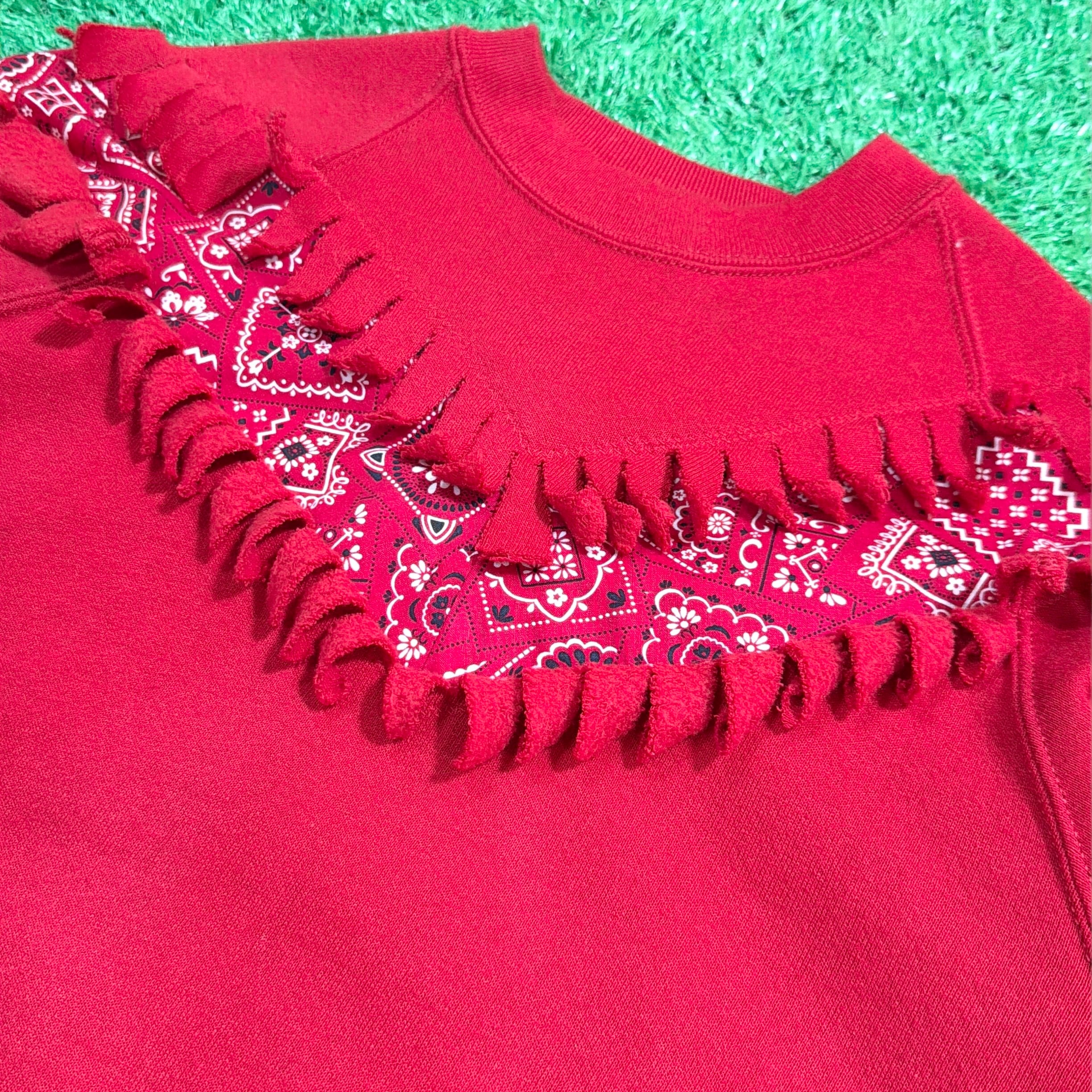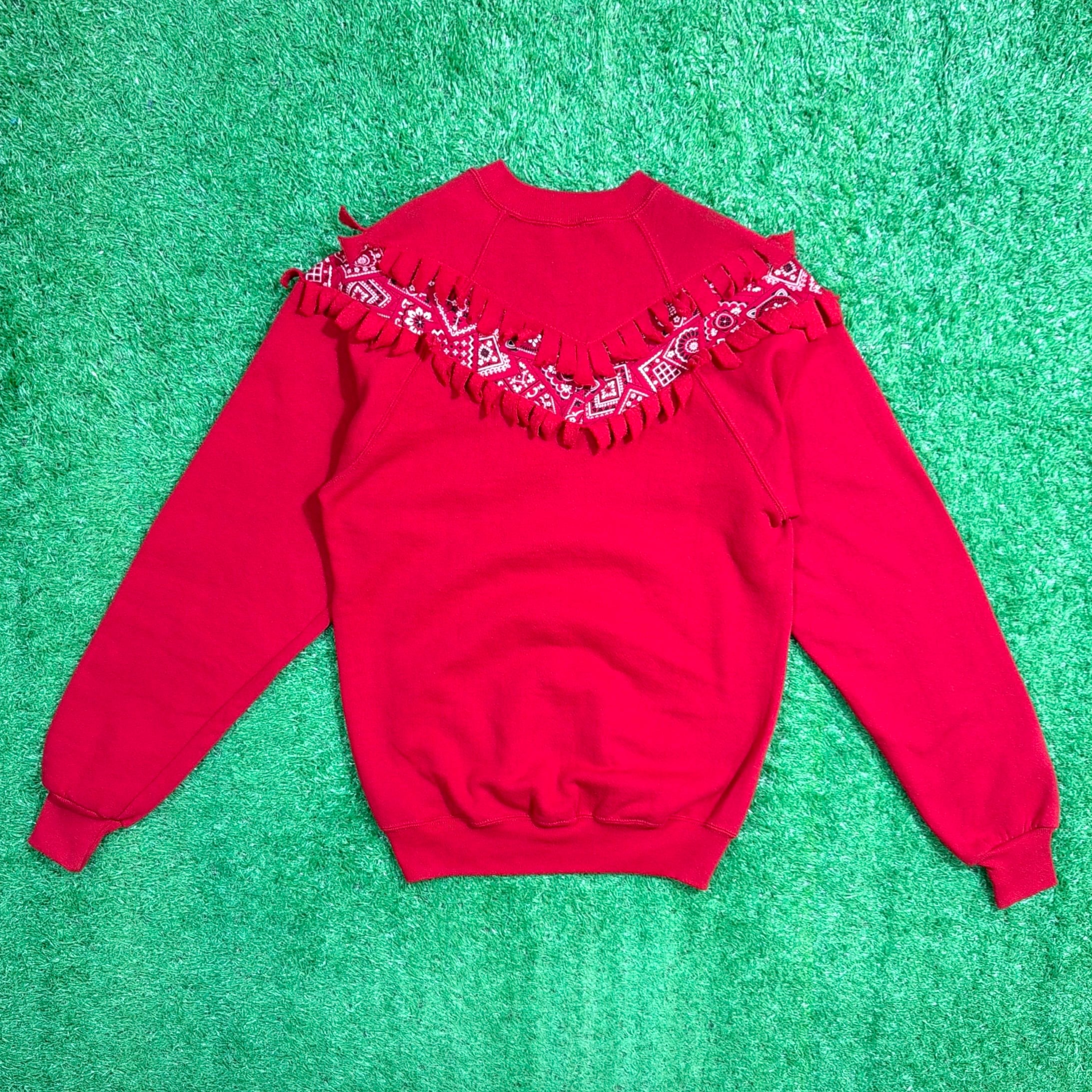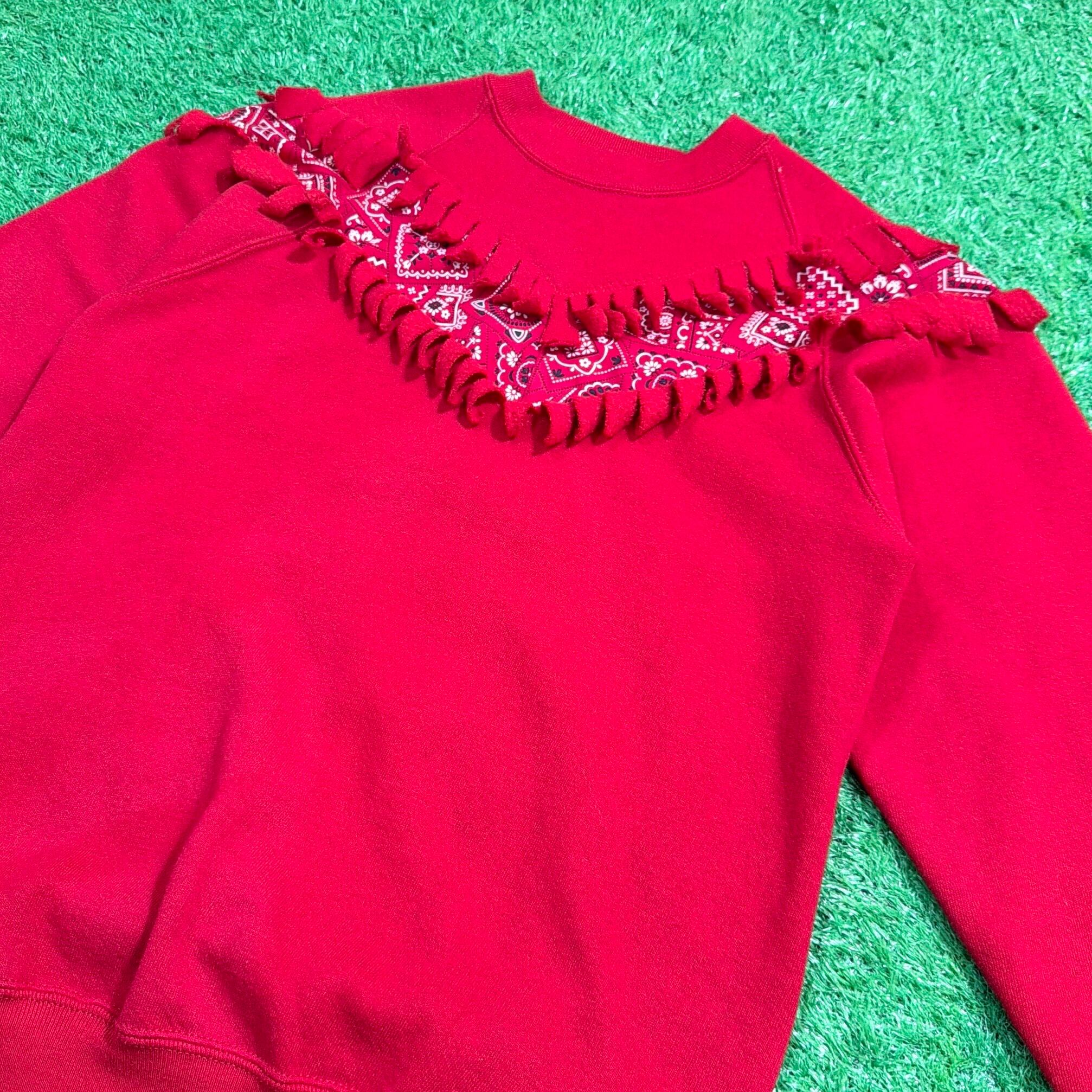 【Men's】 90s ウエスタン デザイン リメイク スウェットシャツ / アメリカ製 USA製 90年代 古着 スウェット トレーナー 赤 レッド ペイズリー フリンジ 847