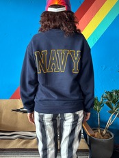 フロントにはイーグルとアンカーをあしらった海軍の公式エンブレム、バックには大きく「NAVY」の文字がプリントされた存在感ある一枚。ミリタリー好きにはたまらないデザインです。Made In USA