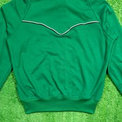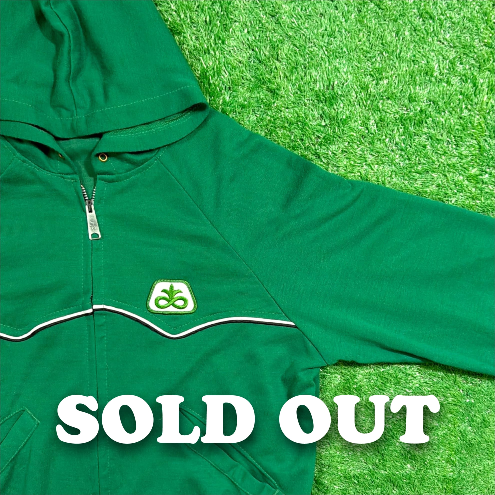 鮮やかなグリーンのボディに、胸元には米国大手の種子メーカー「Pioneer(パイオニア)」のカンパニーロゴのワッペン付き。フロントと背面の切り替え部分にあしらわれたホワイトのパイピングが、ウエスタンシャツを思わせる印象的なアクセントになっています。アクリル素材ならではの柔らかさと軽さがあり着心地も快適です。