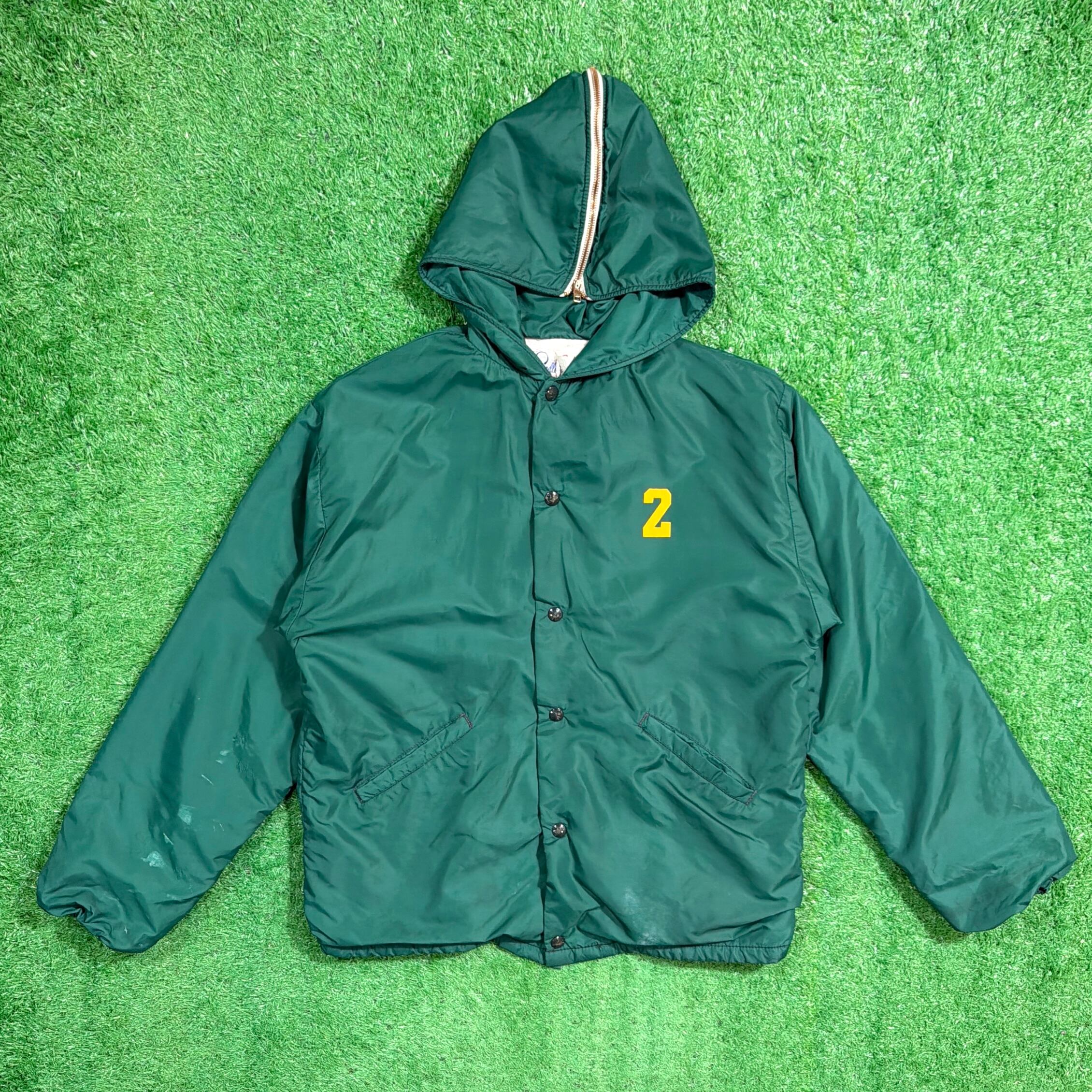 【Unisex】 70s セーラー襟 ナイロンジャケット / 70年代 古着 ジャケット チアリーダー 緑 グリーン セーラー フーディー パーカー メンズ レディース 872