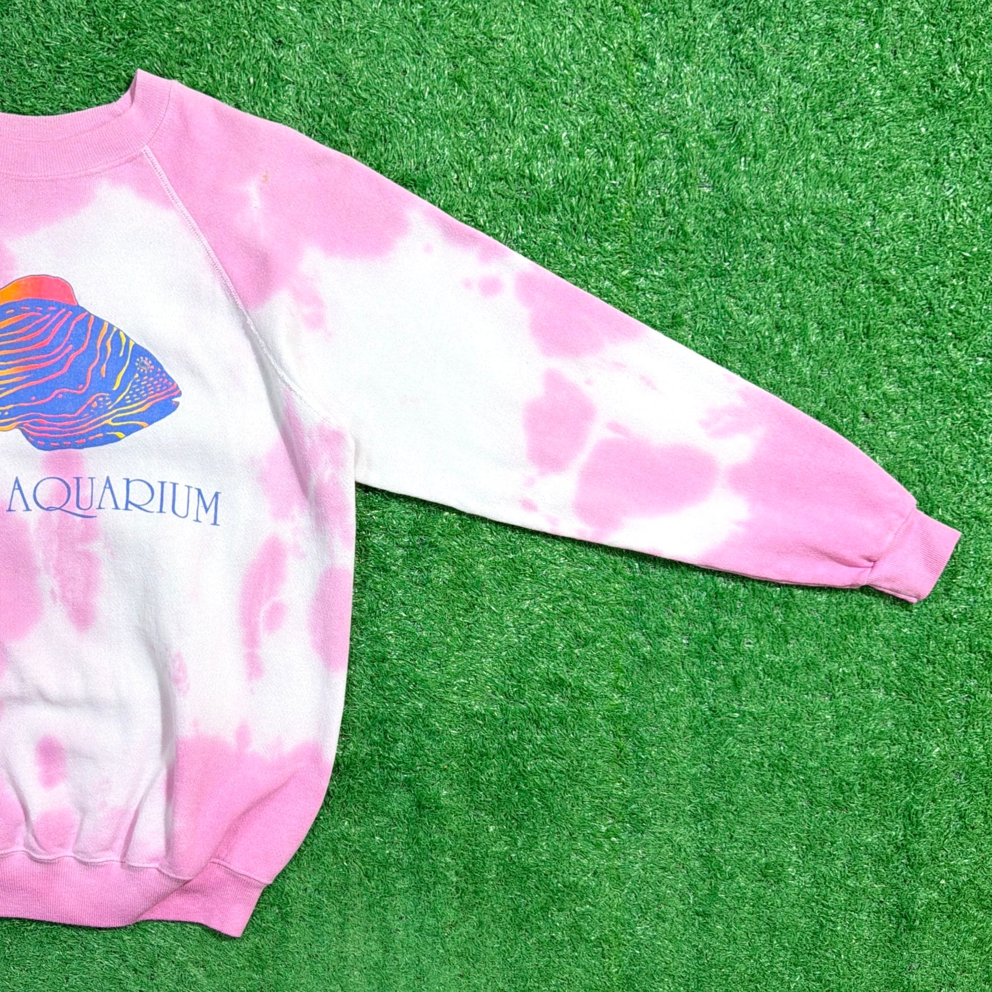 【Men's】 80s MARIN AQUARIUM お魚イラスト ムラ染め スウェットシャツ / アメリカ製 USA製 80年代 スウェット スエット トレーナー ピンク タイダイ 875