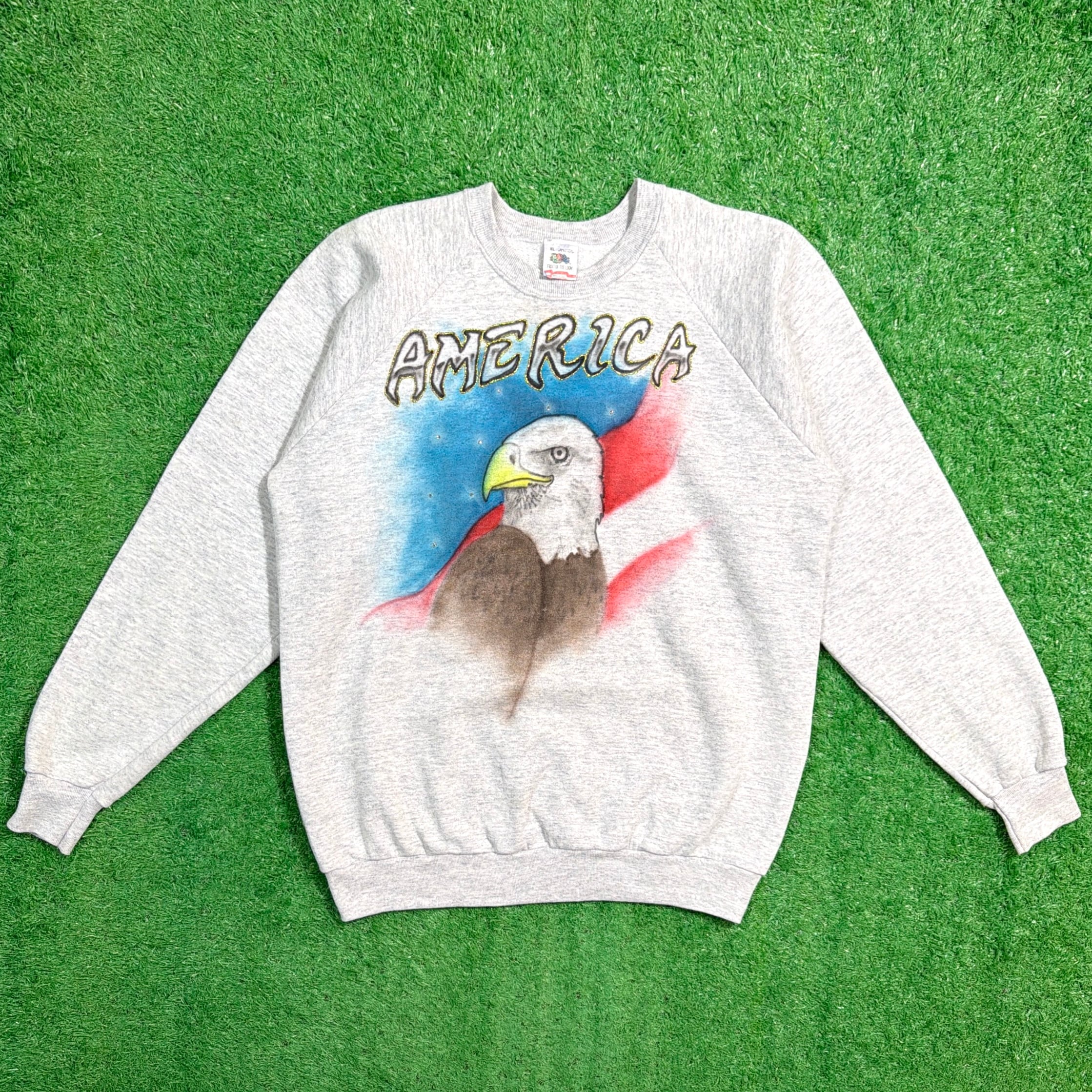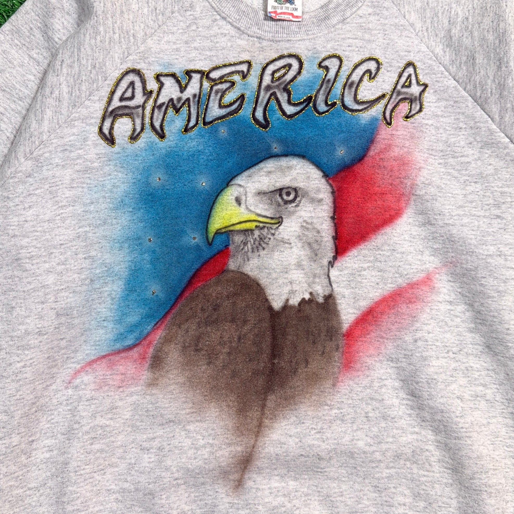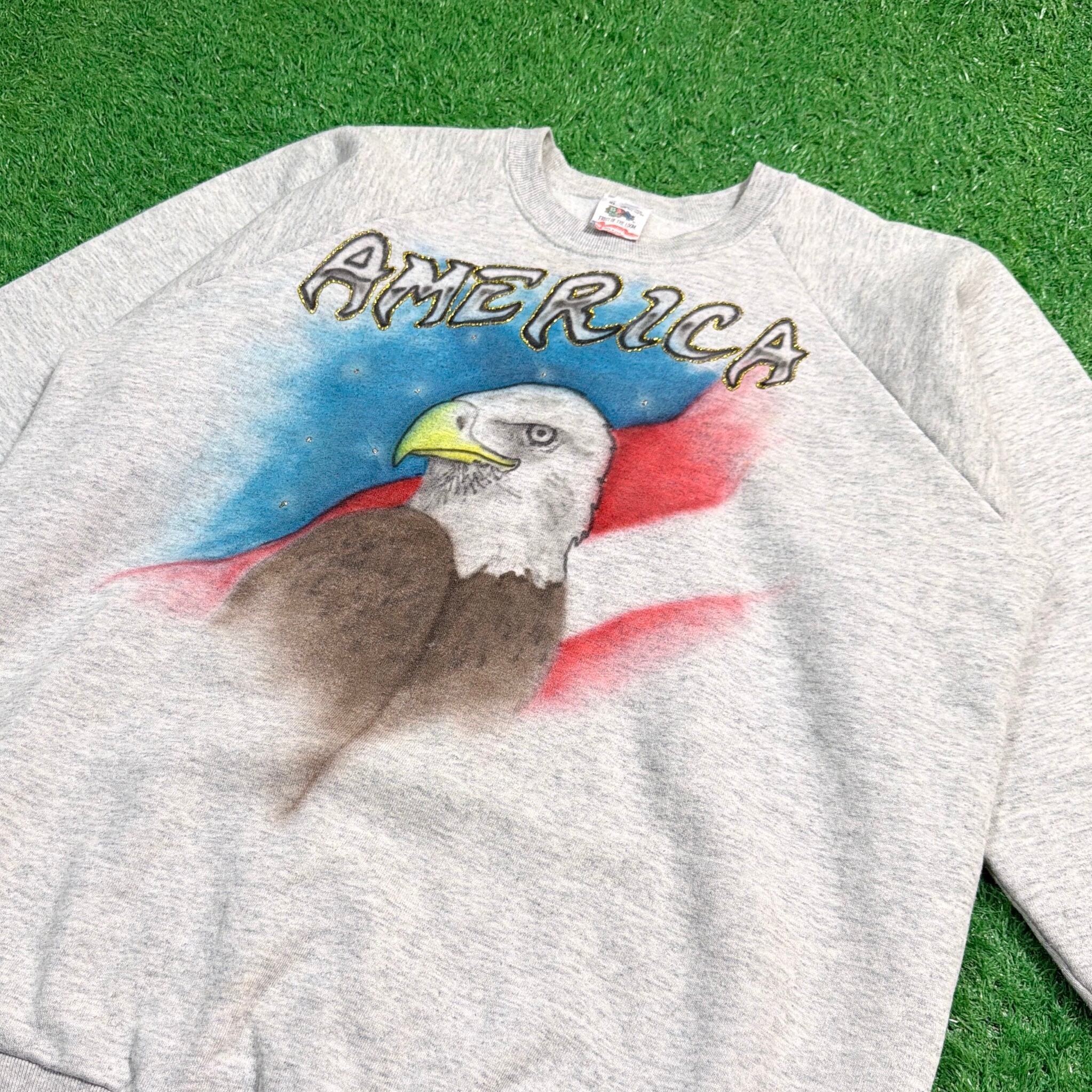 【Men's】 90s AMERICA エアブラシ風 プリント スウェットシャツ / アメリカ製 USA製 90年代 古着 スウェット トレーナー スエット イーグル 星条旗 876