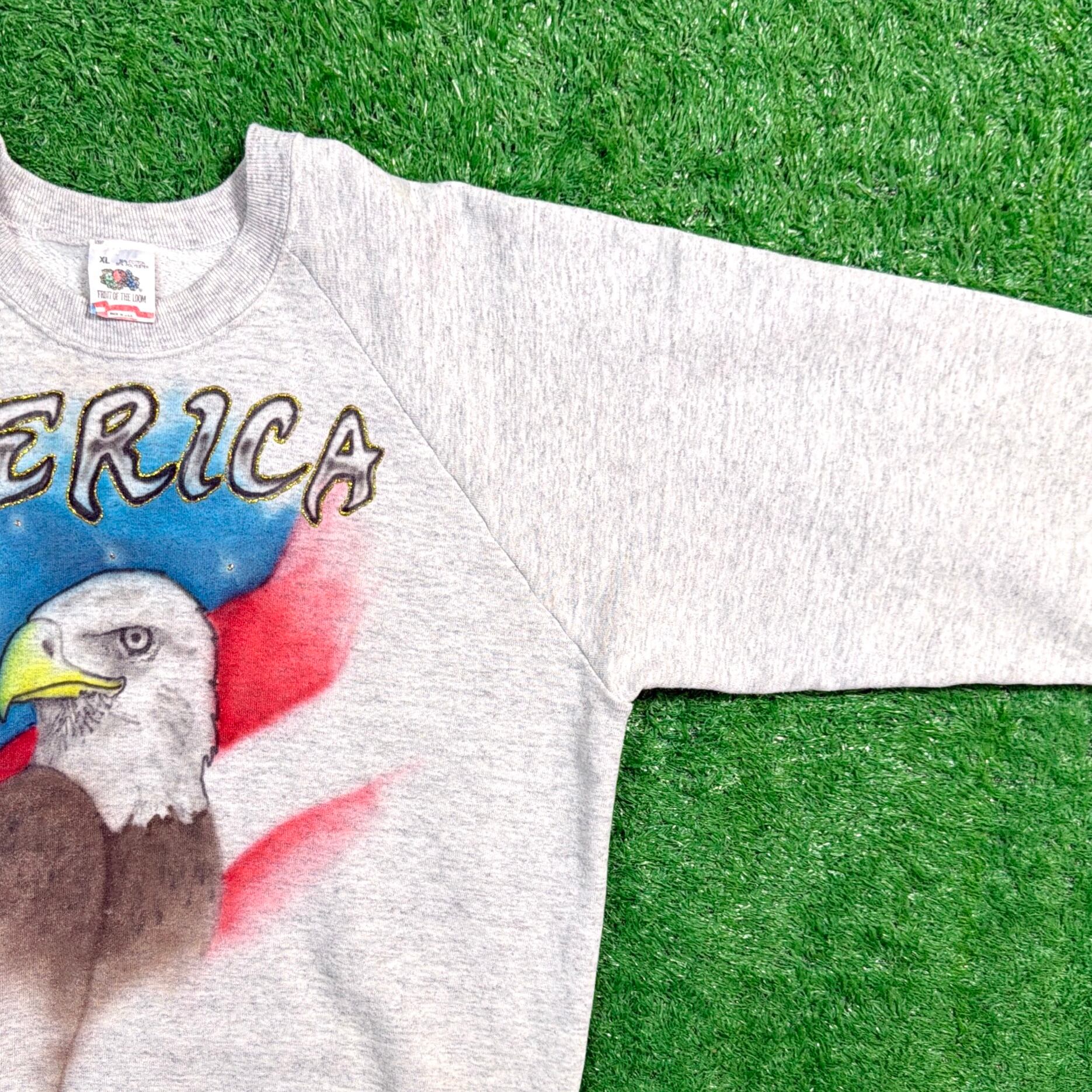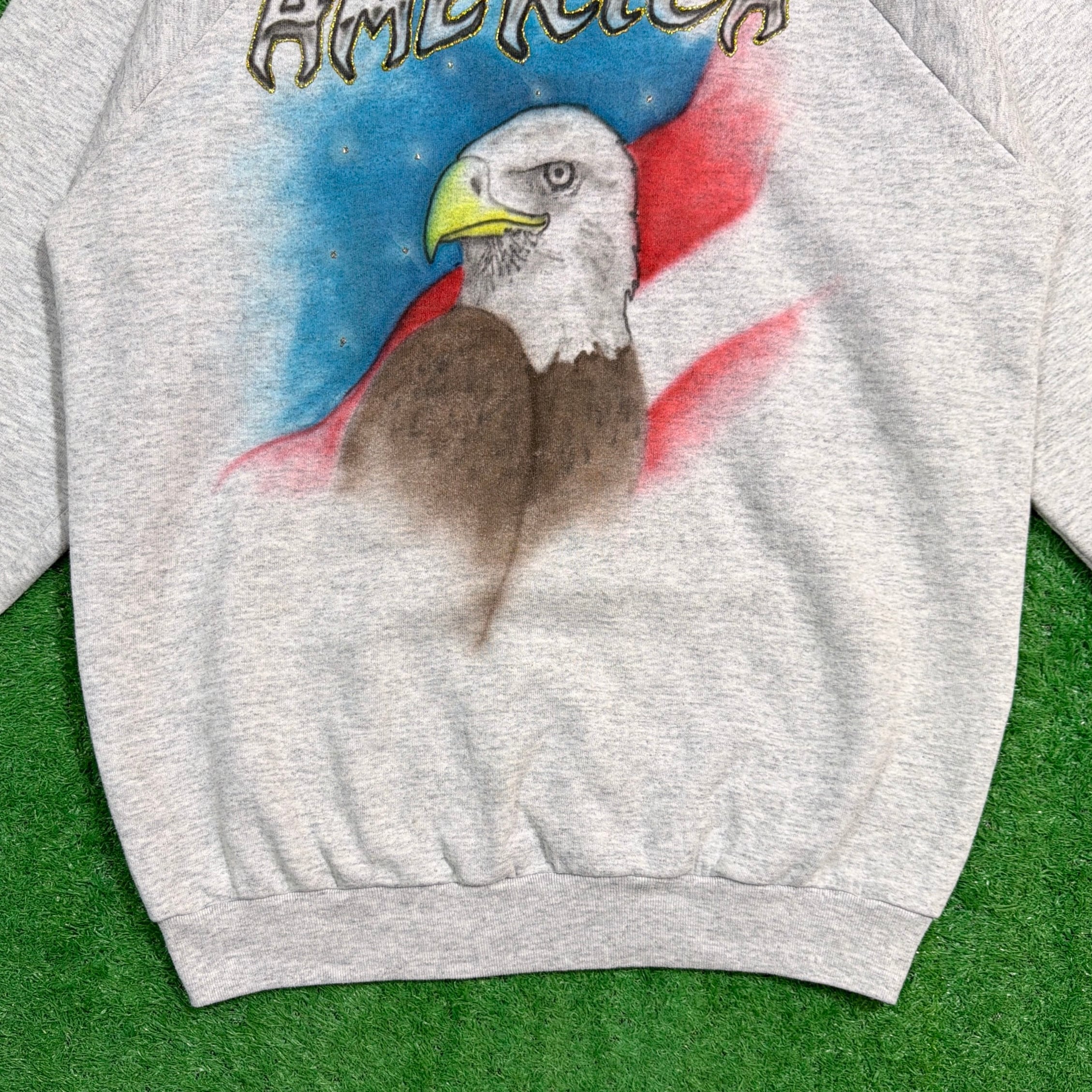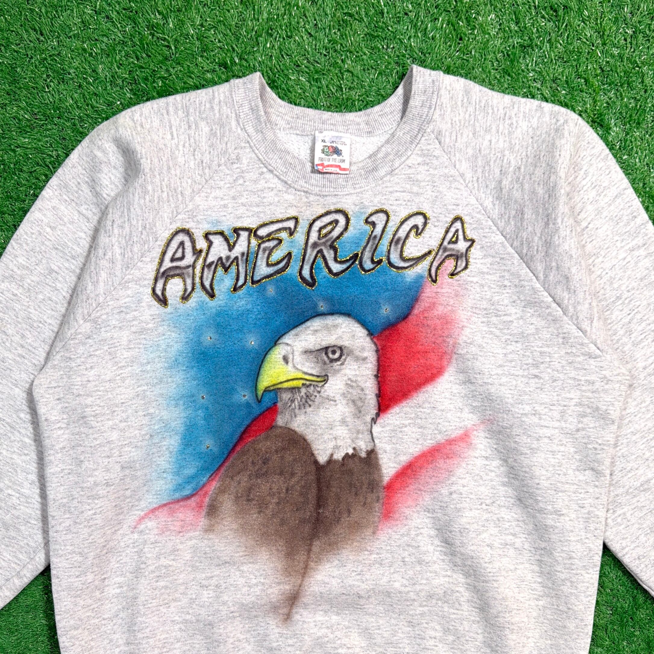 【Men's】 90s AMERICA エアブラシ風 プリント スウェットシャツ / アメリカ製 USA製 90年代 古着 スウェット トレーナー スエット イーグル 星条旗 876