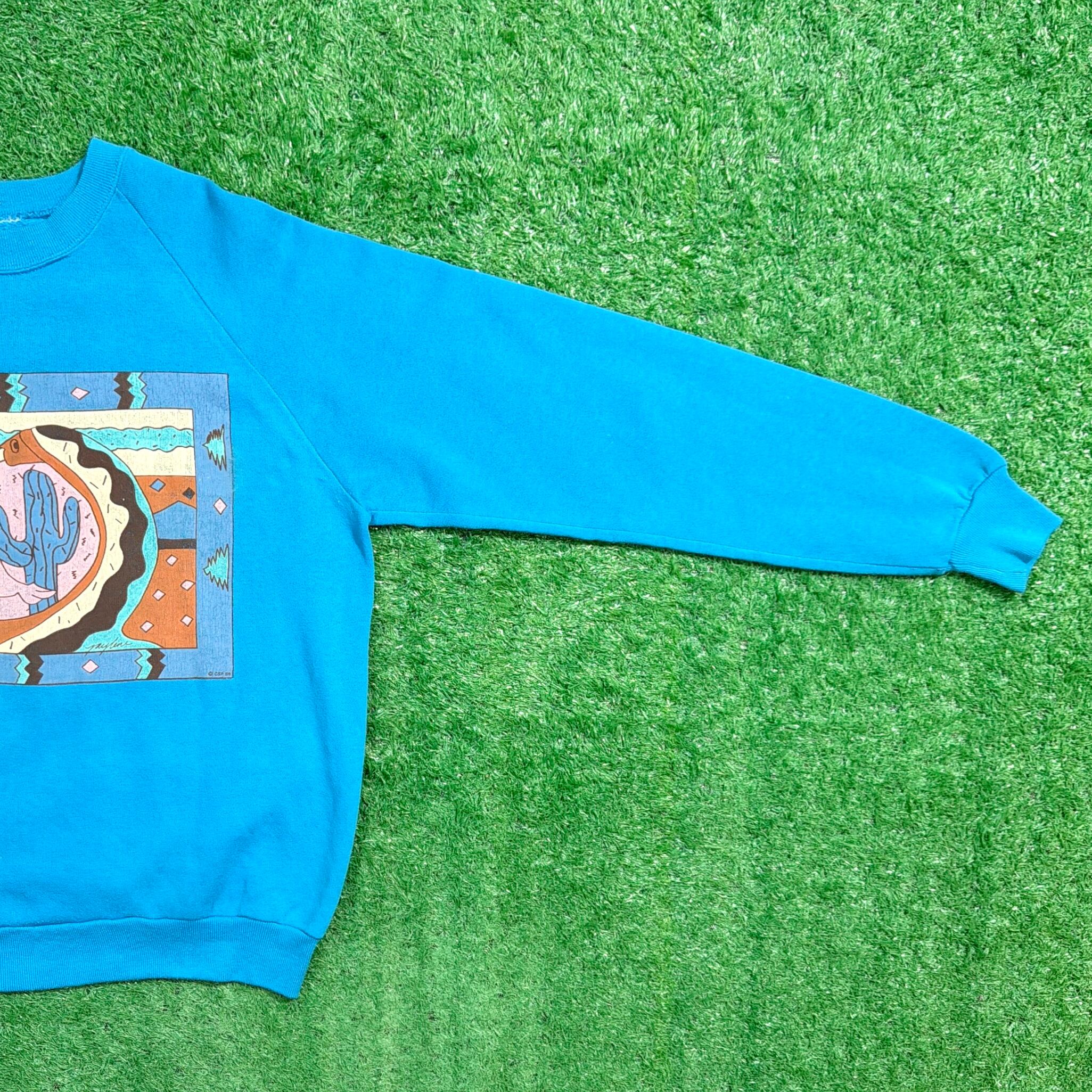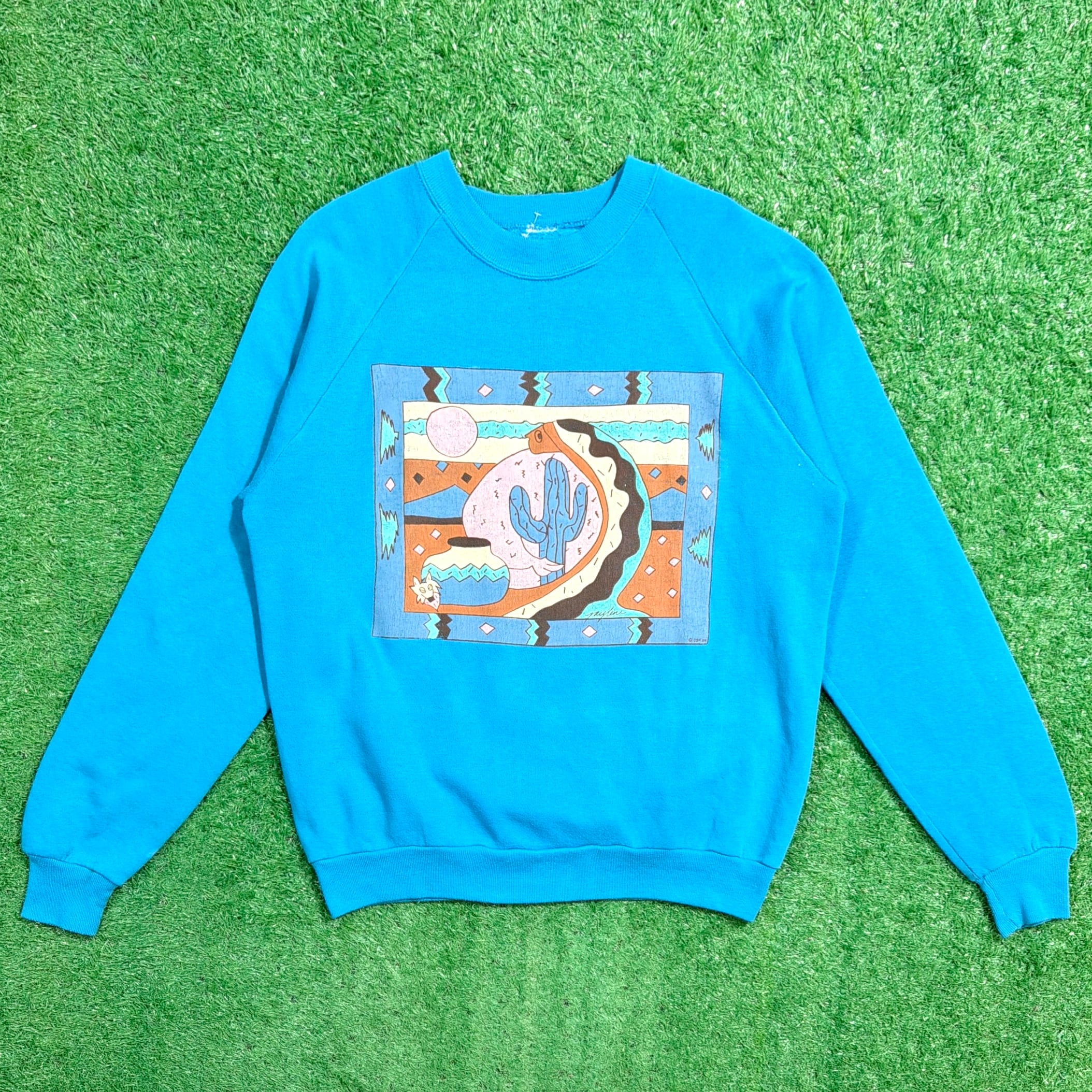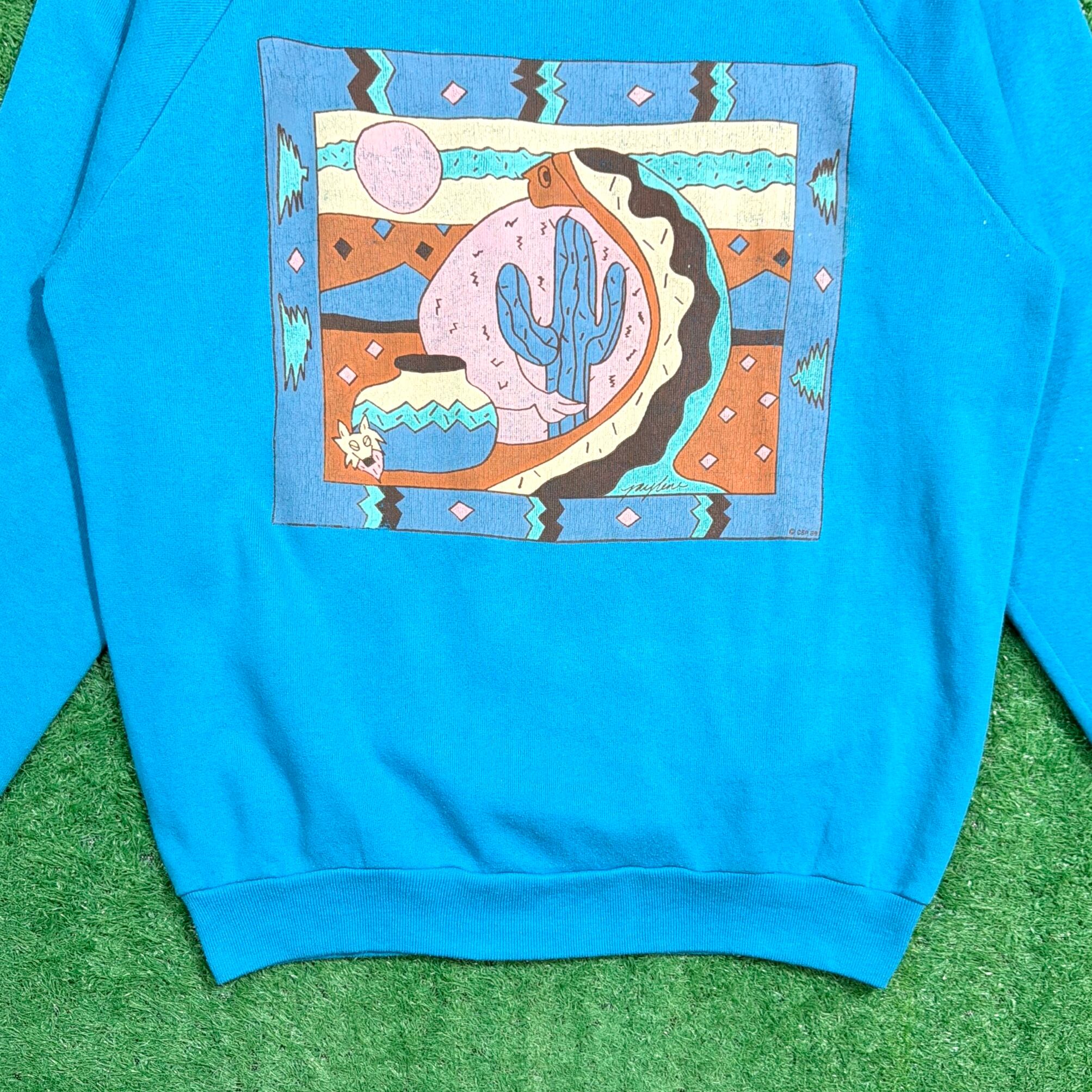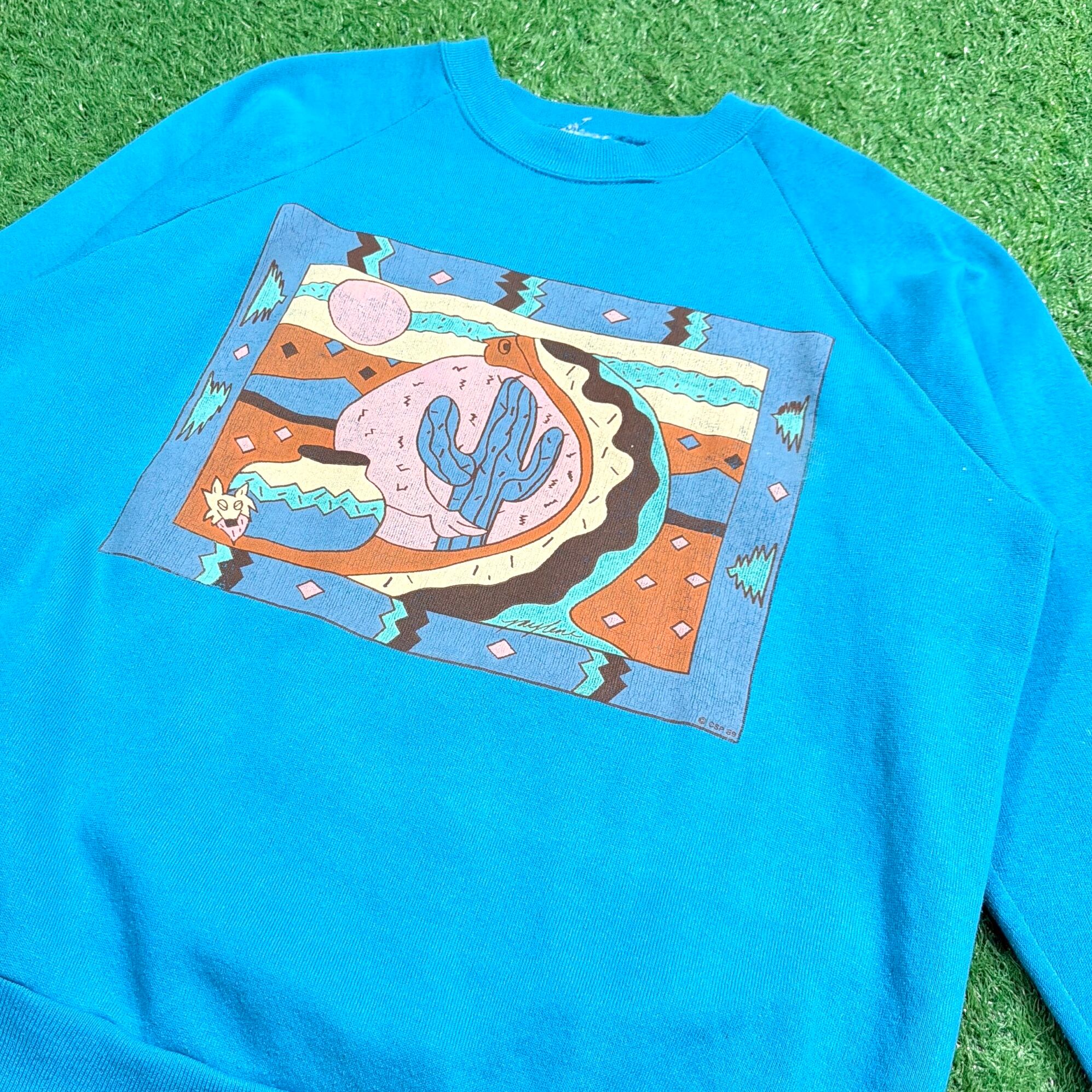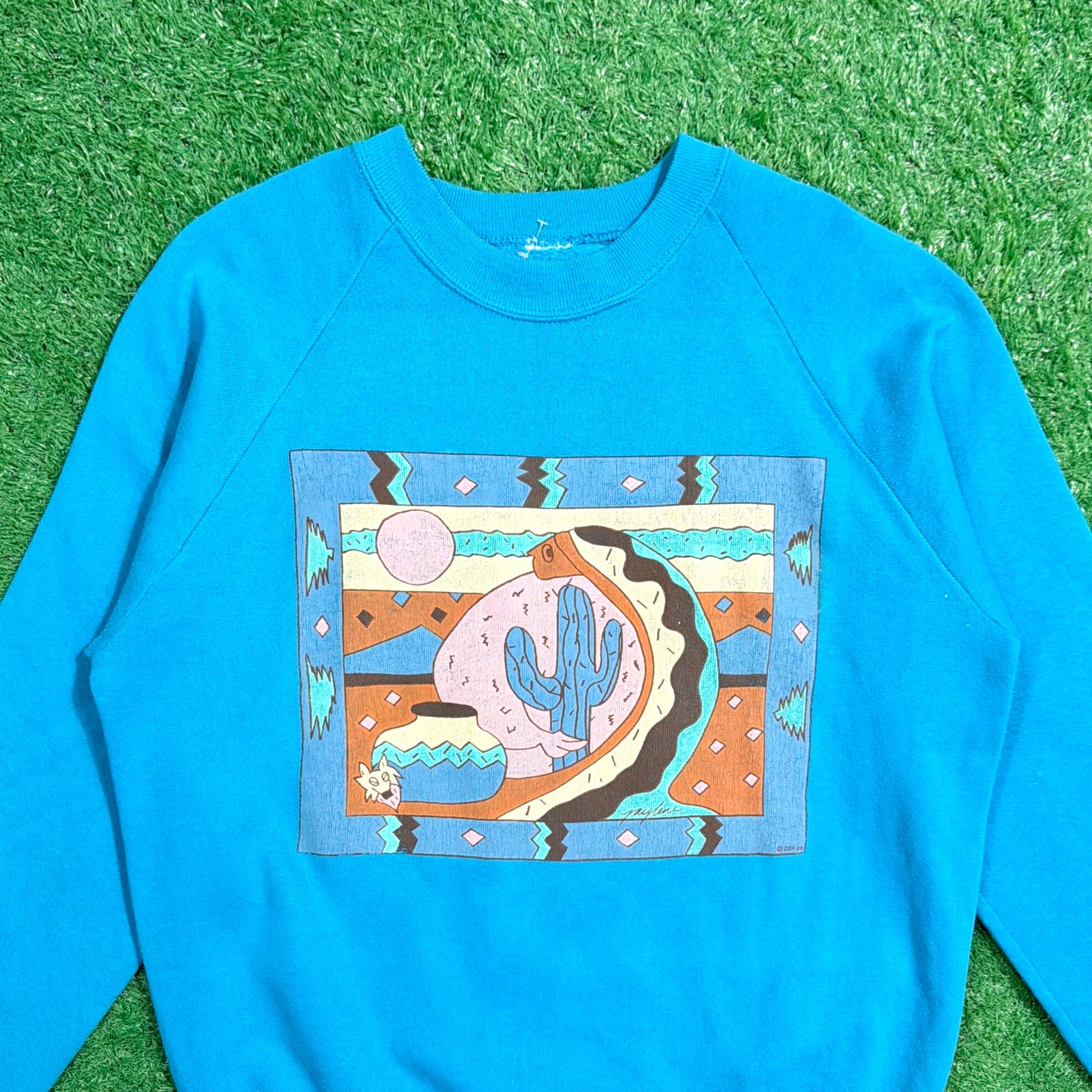 【Men's】 80s サボテン イラスト スウェットシャツ / 80年代 スウェット スエット トレーナー ネイティブアメリカン 青 ブルー 878