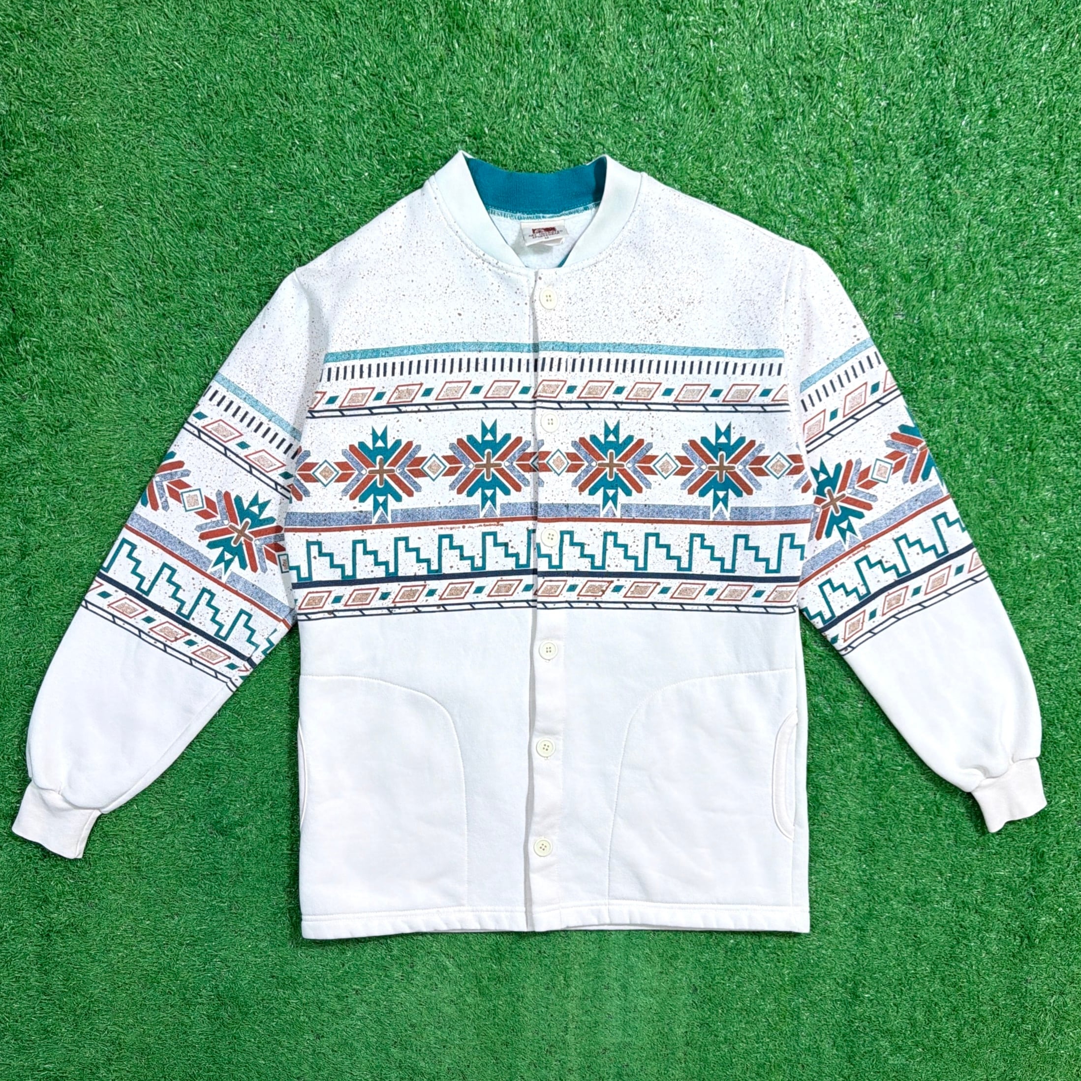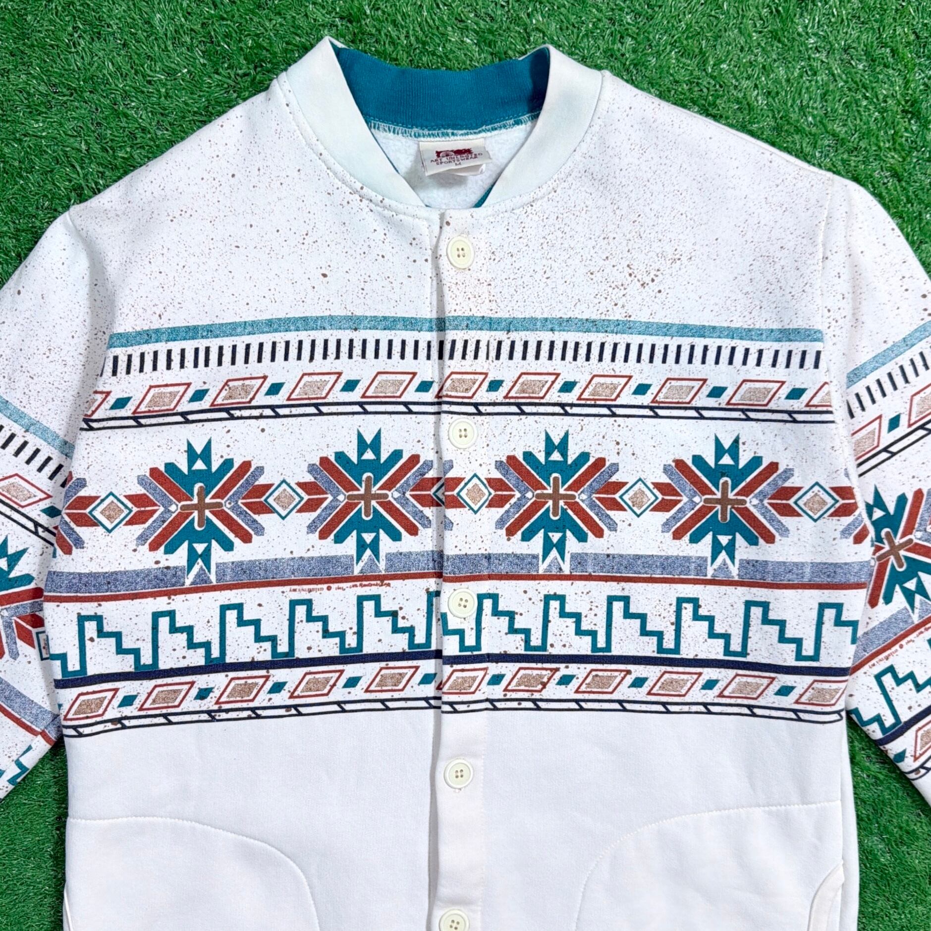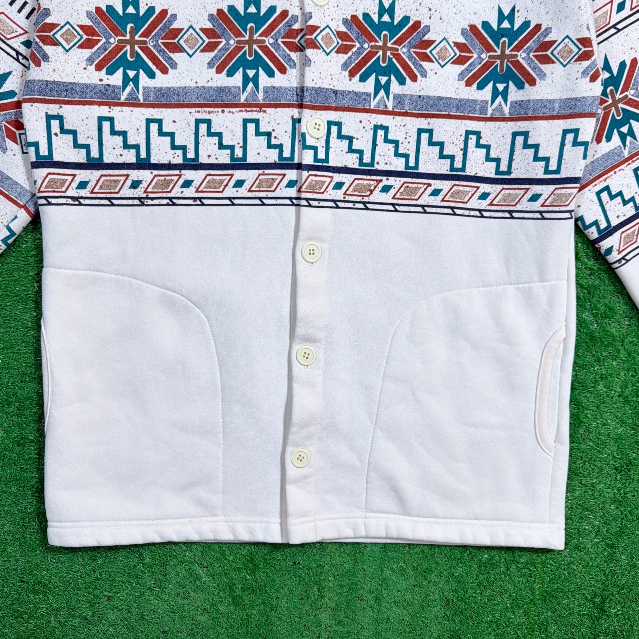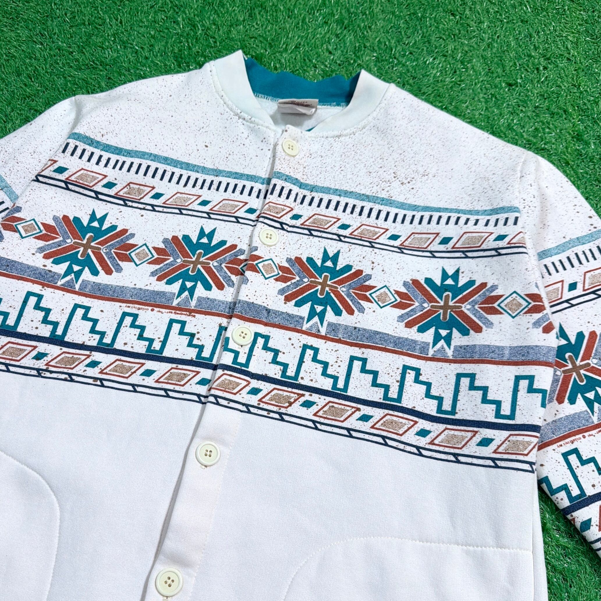 【Men's】 90s ネイティブ柄 スウェット ジャケット / アメリカ製 USA製 90年代 古着 カーディガン ネイティブ スウェットシャツ スエット 白 880