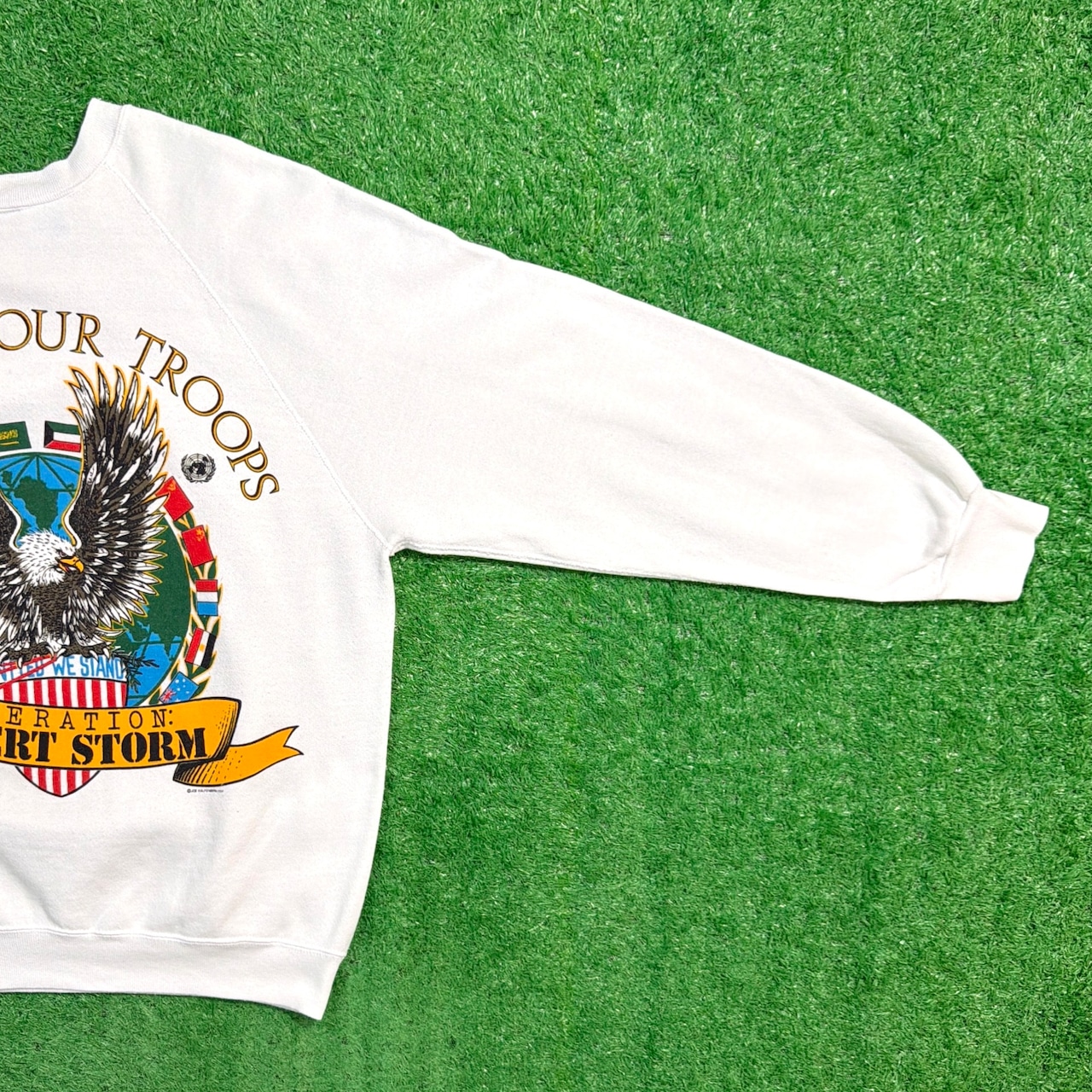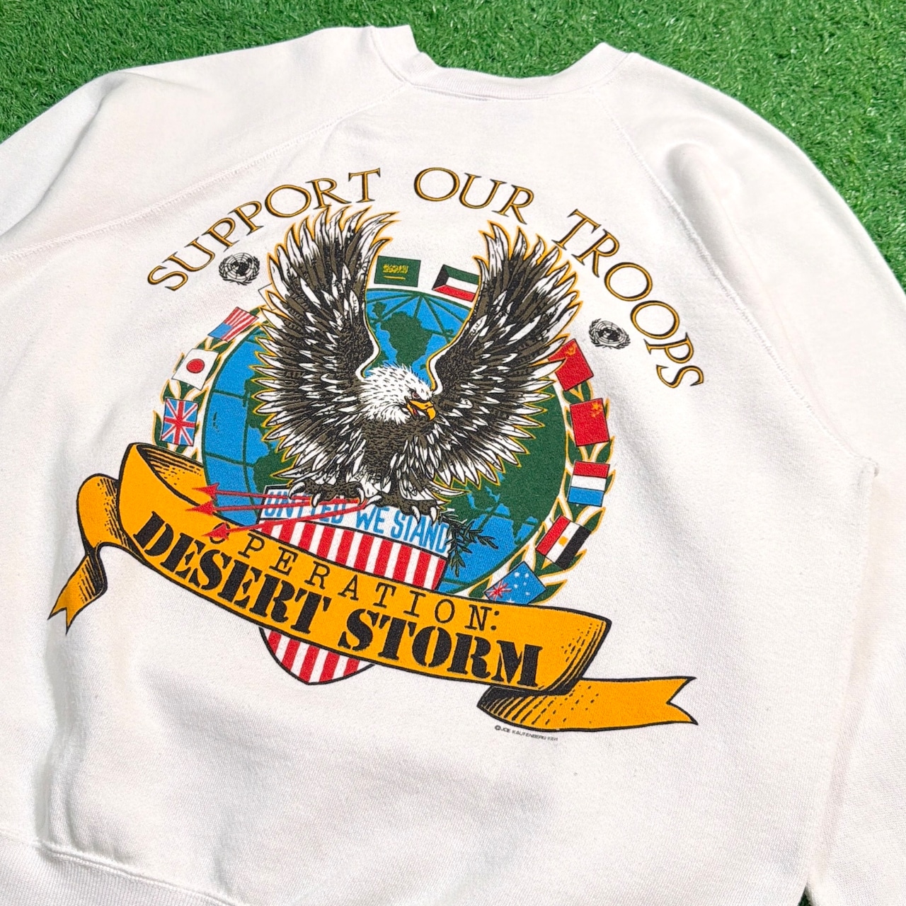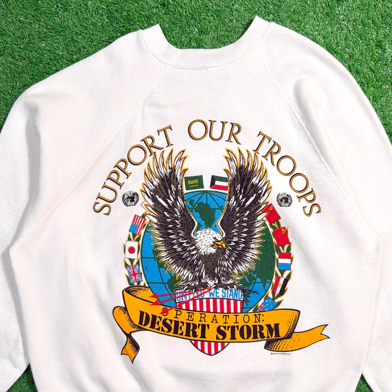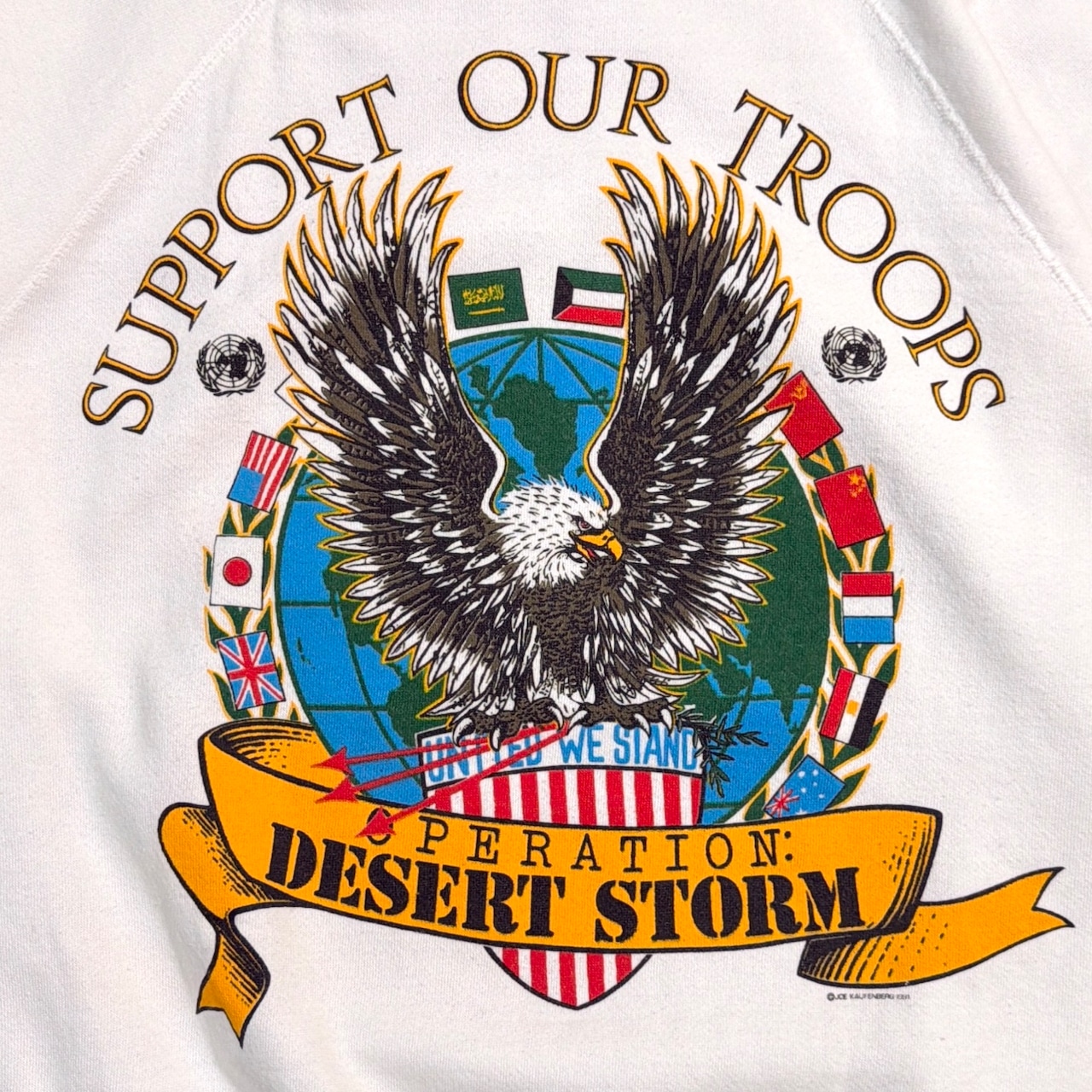 1990年代のアメリカ製、"DESERT STORM(砂漠の嵐作戦)" をテーマにしたスウェットシャツです。