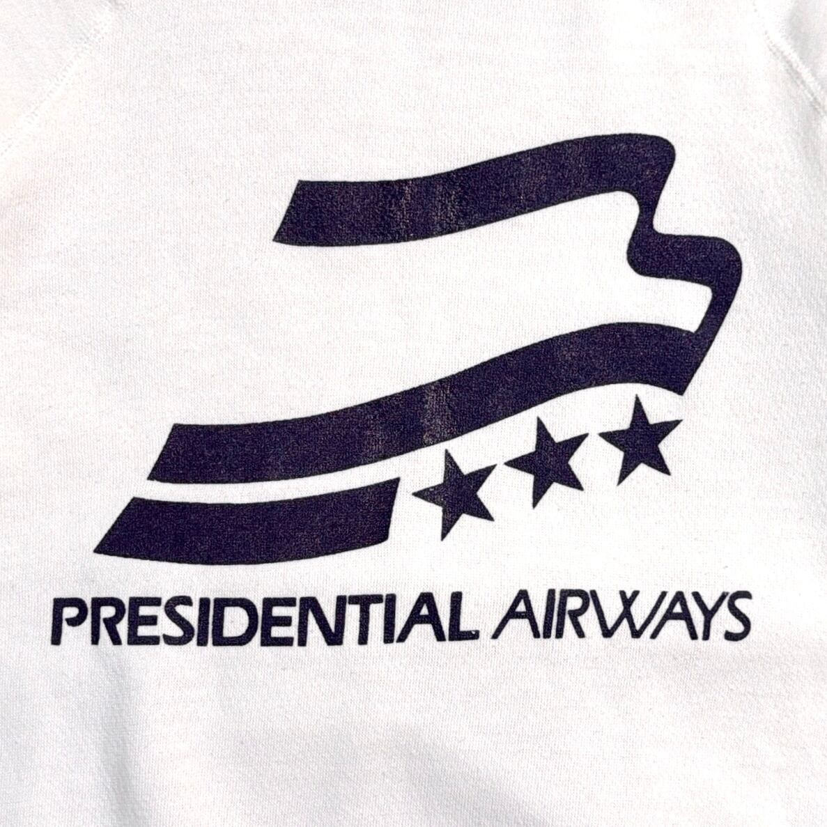 1980年代のアメリカ製、**Presidential Airways(プレジデンシャル航空)**のロゴスウェットです。