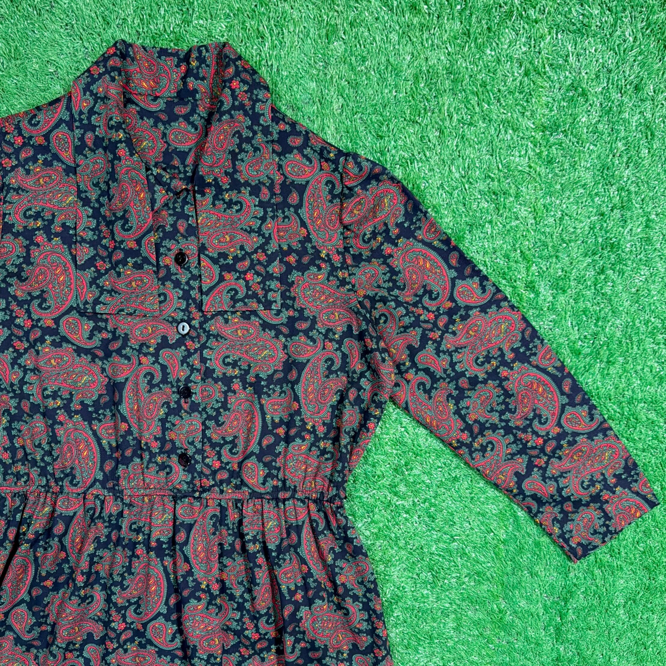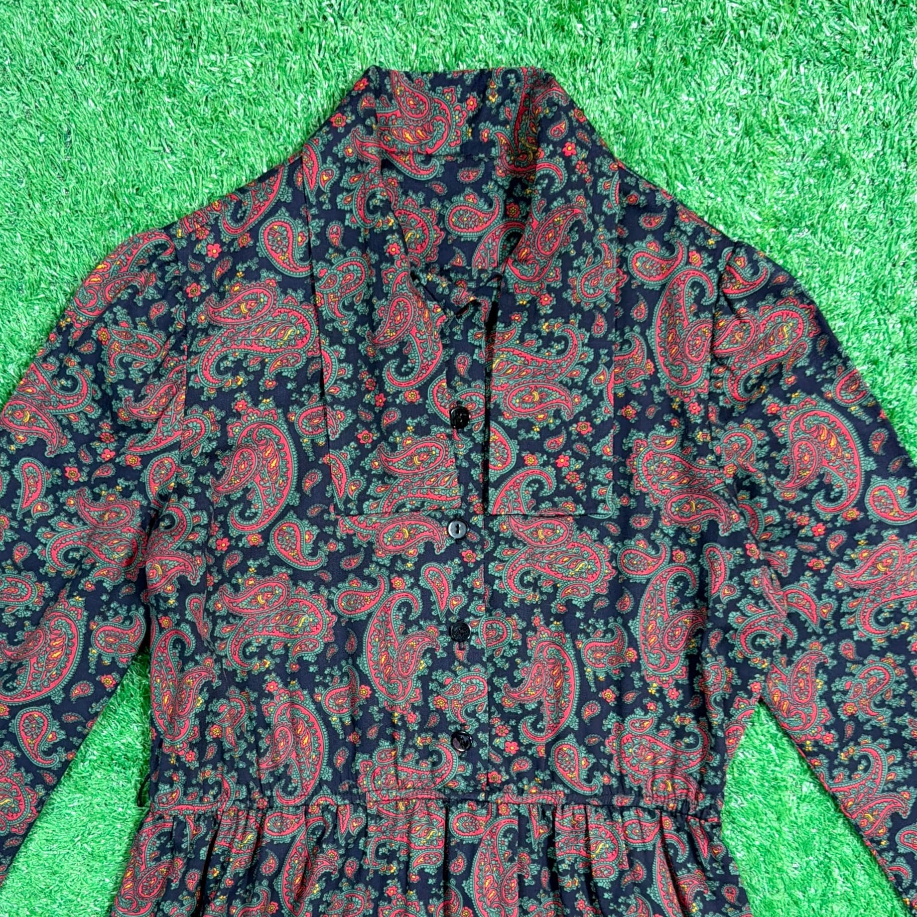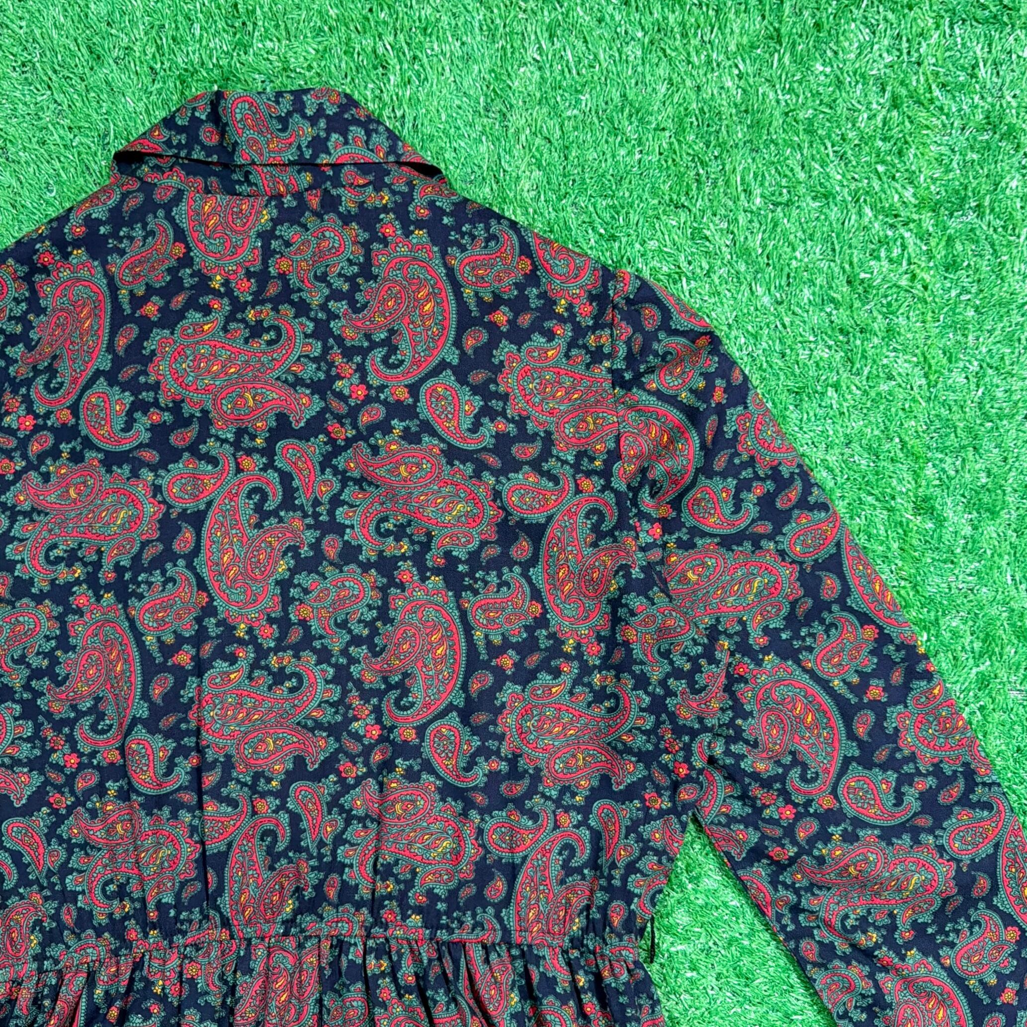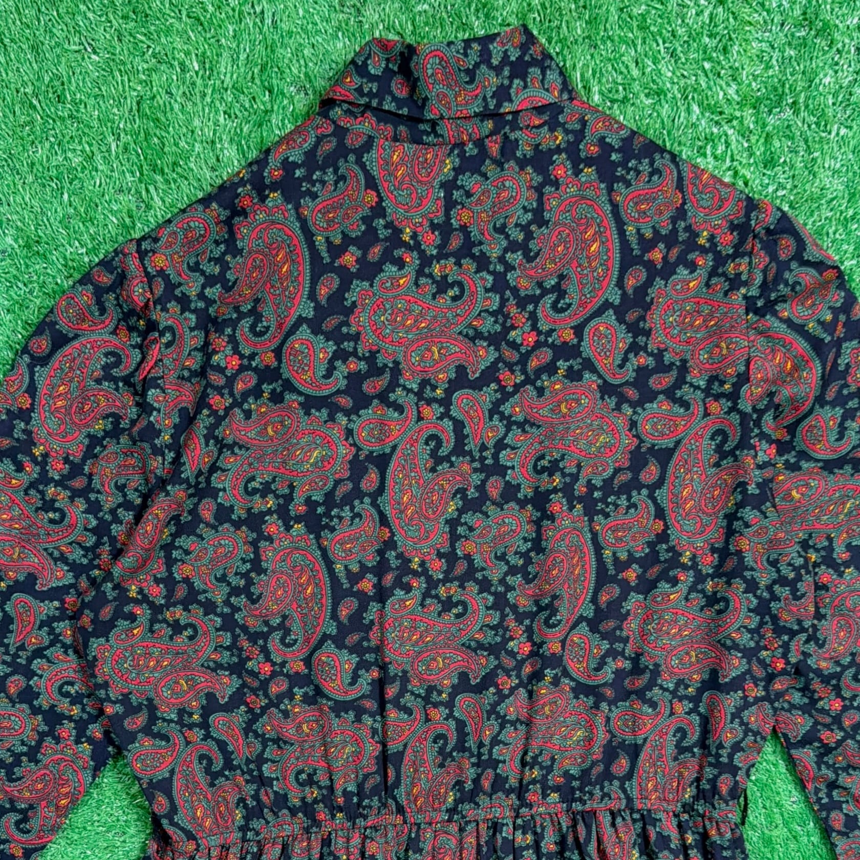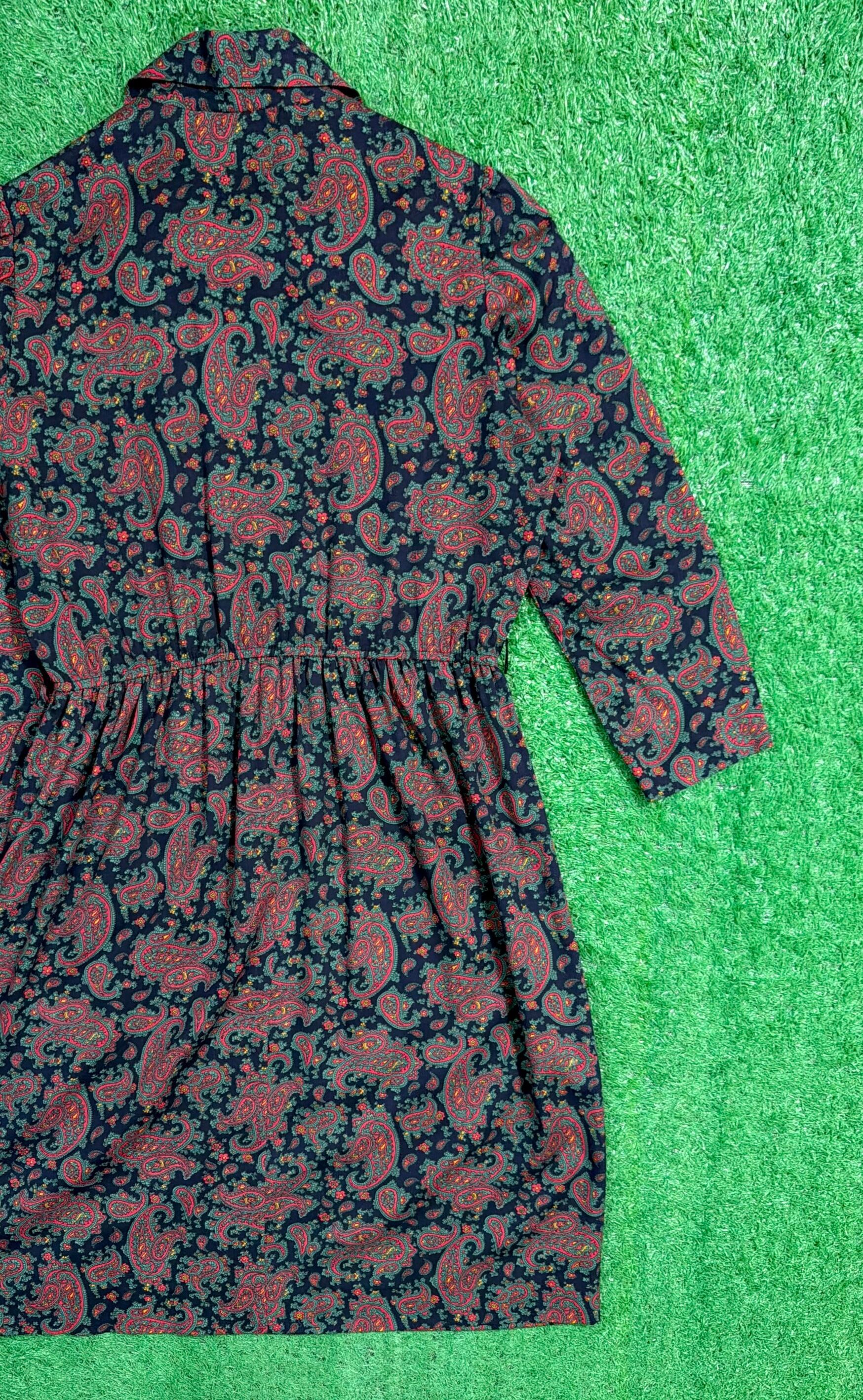 ペイズリー柄が全面にあしらわれたボウタイワンピースです。
