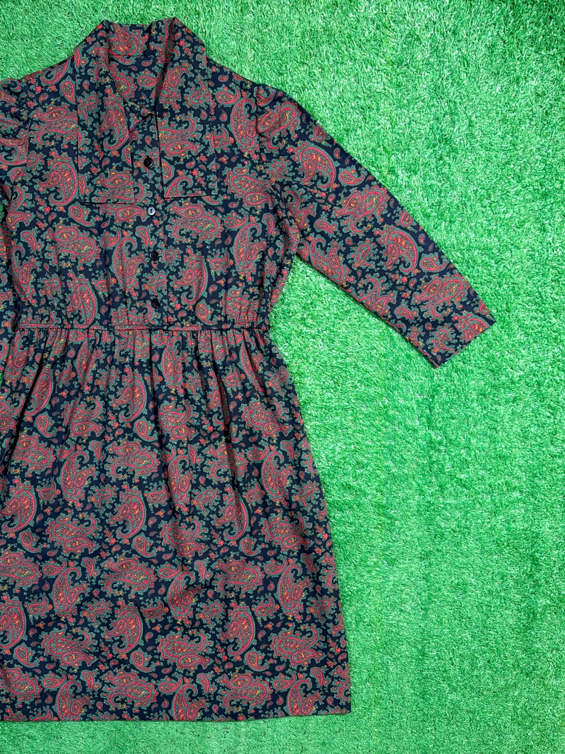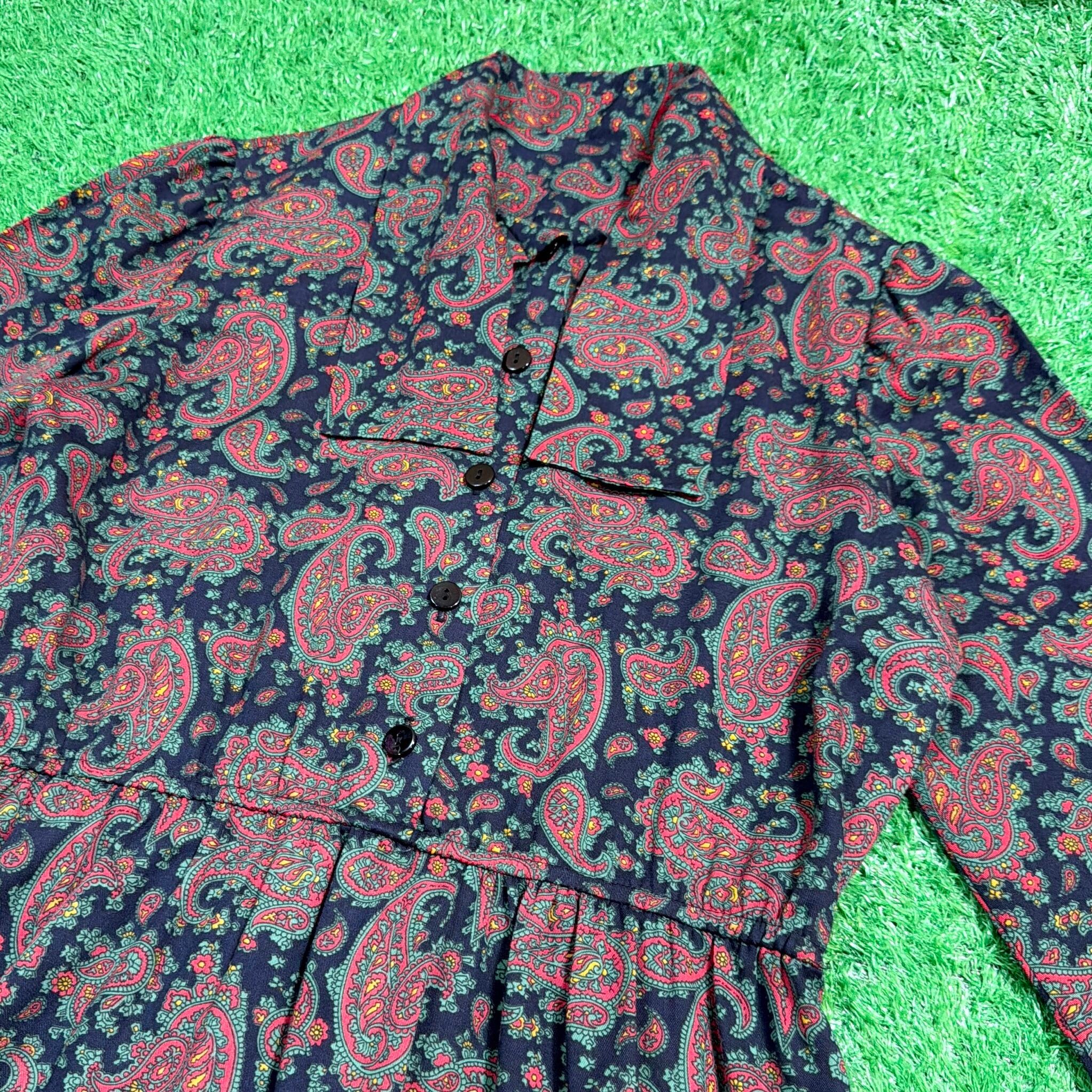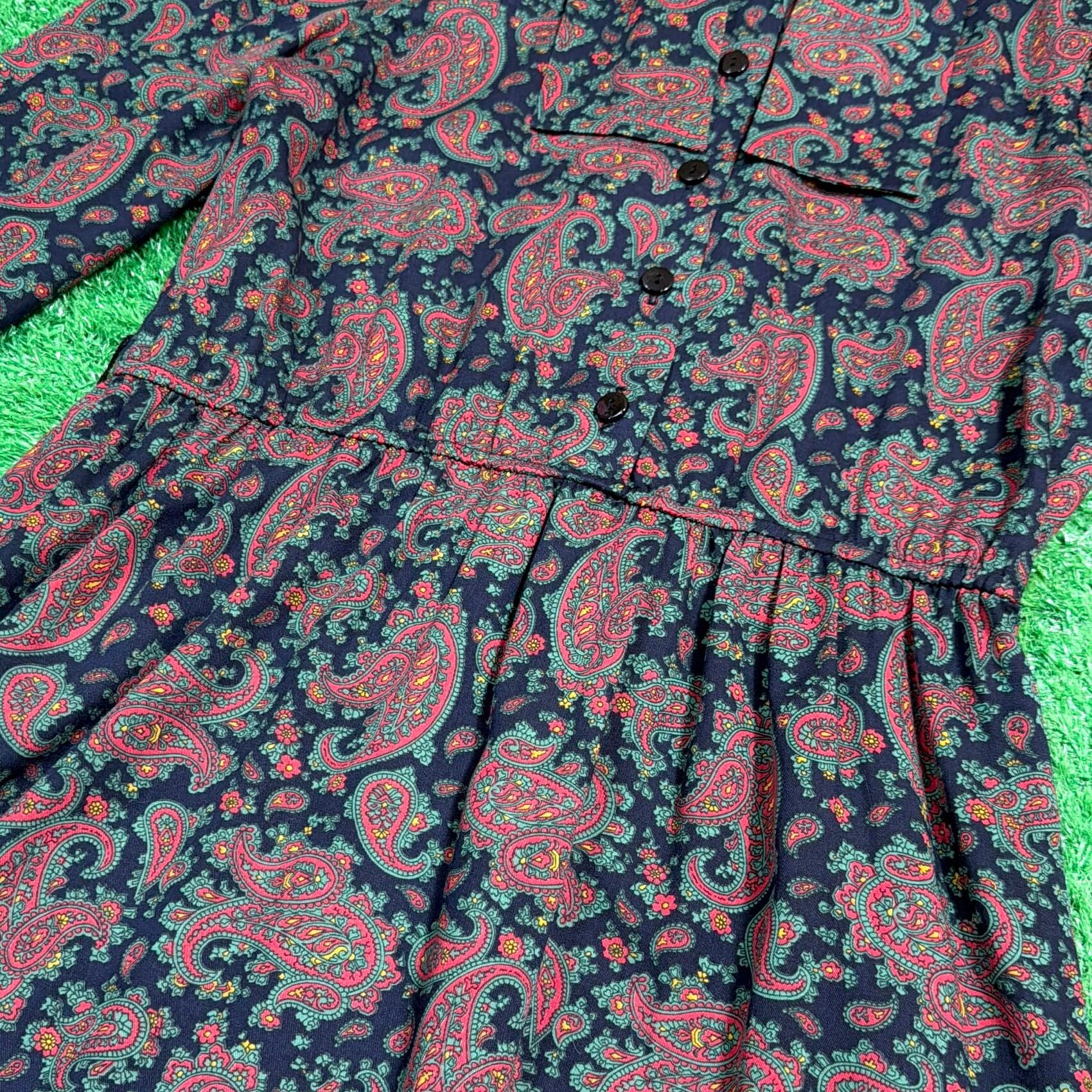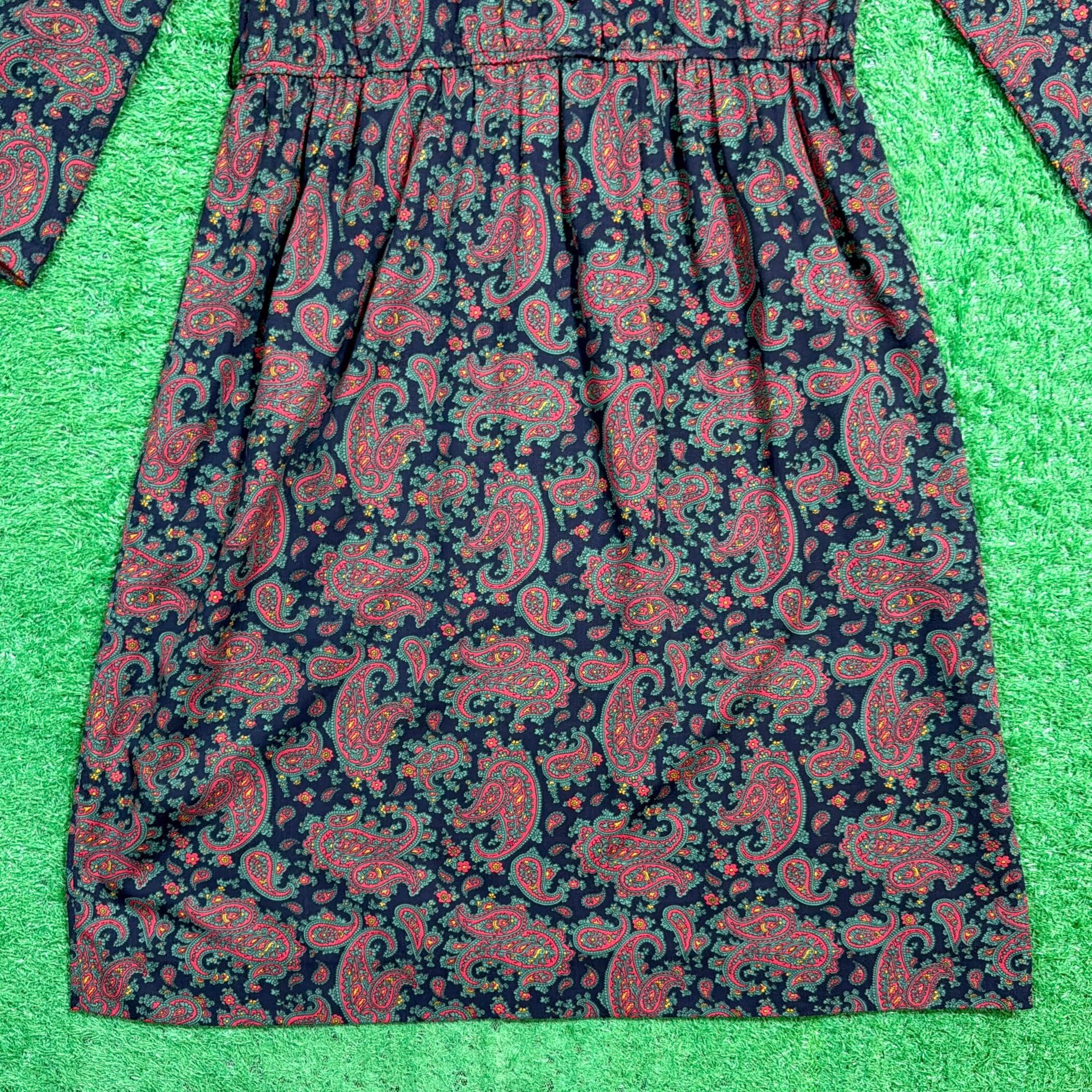 【Lady's】 ペイズリー ボウタイ ワンピース / 古着 レディース ワンピ 大人古着 総柄 レトロ 895