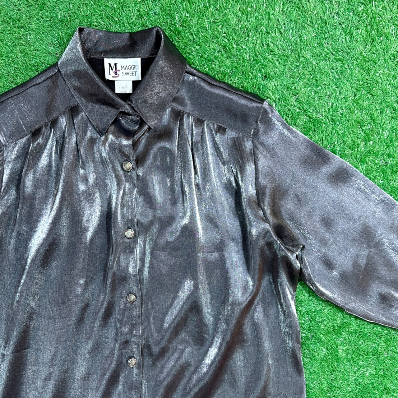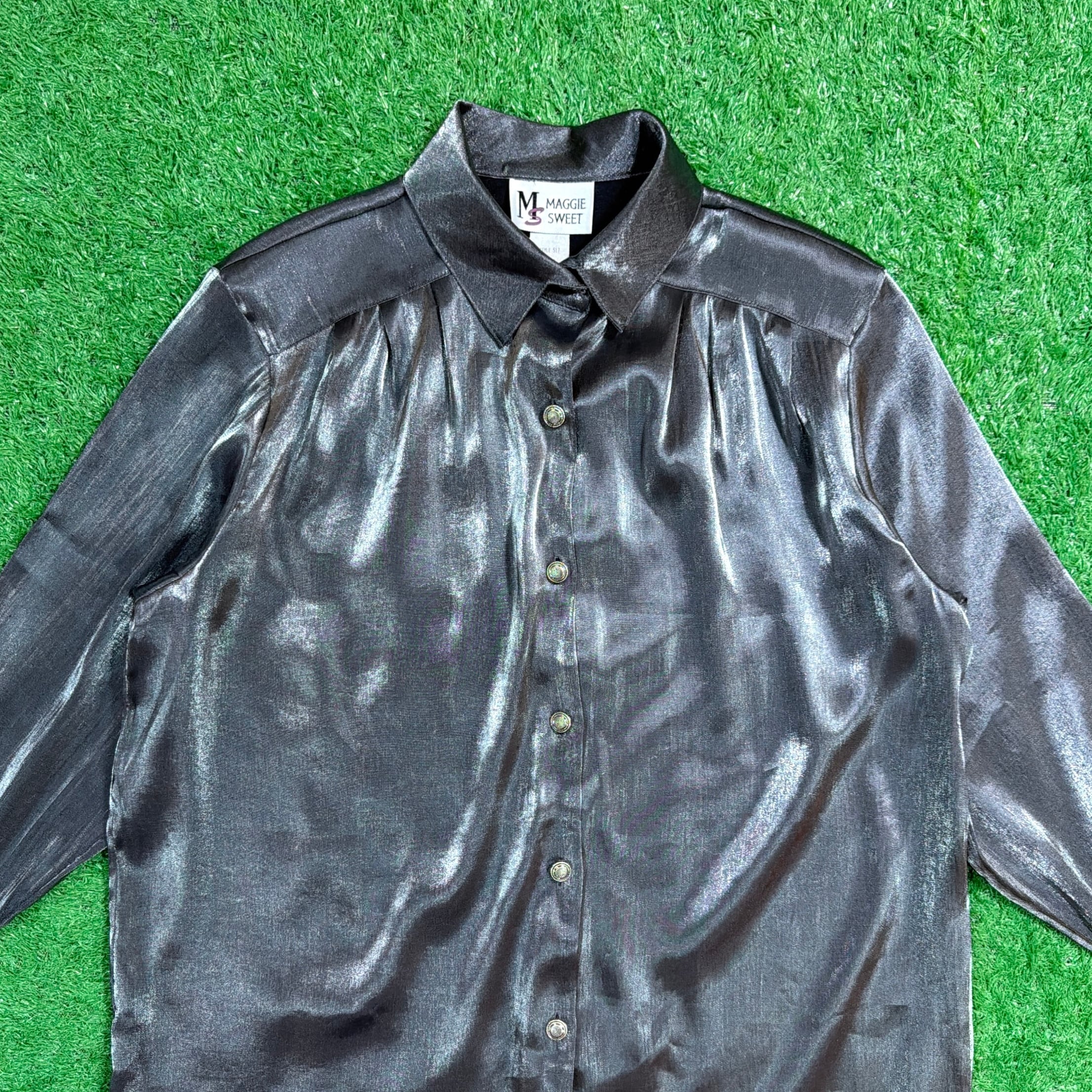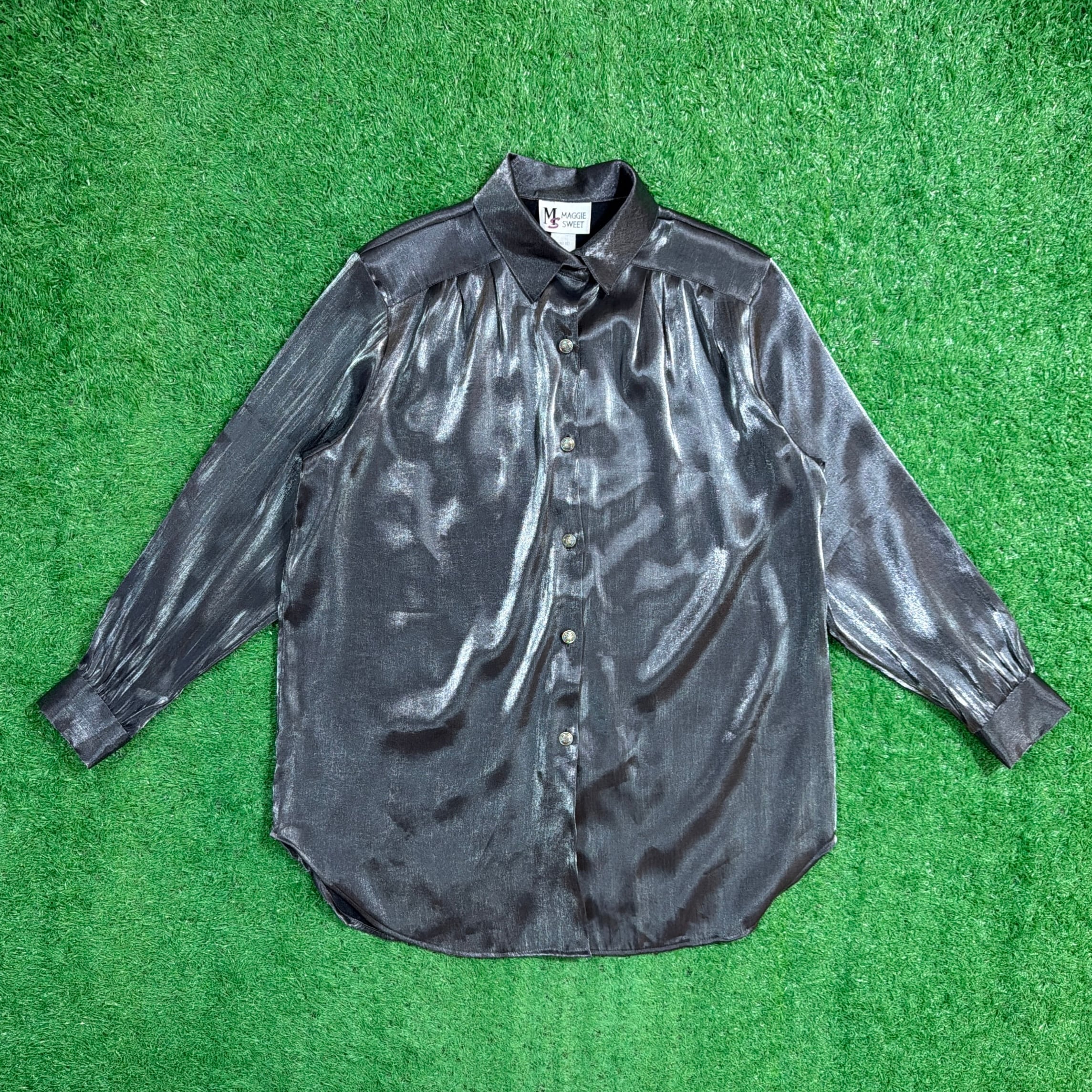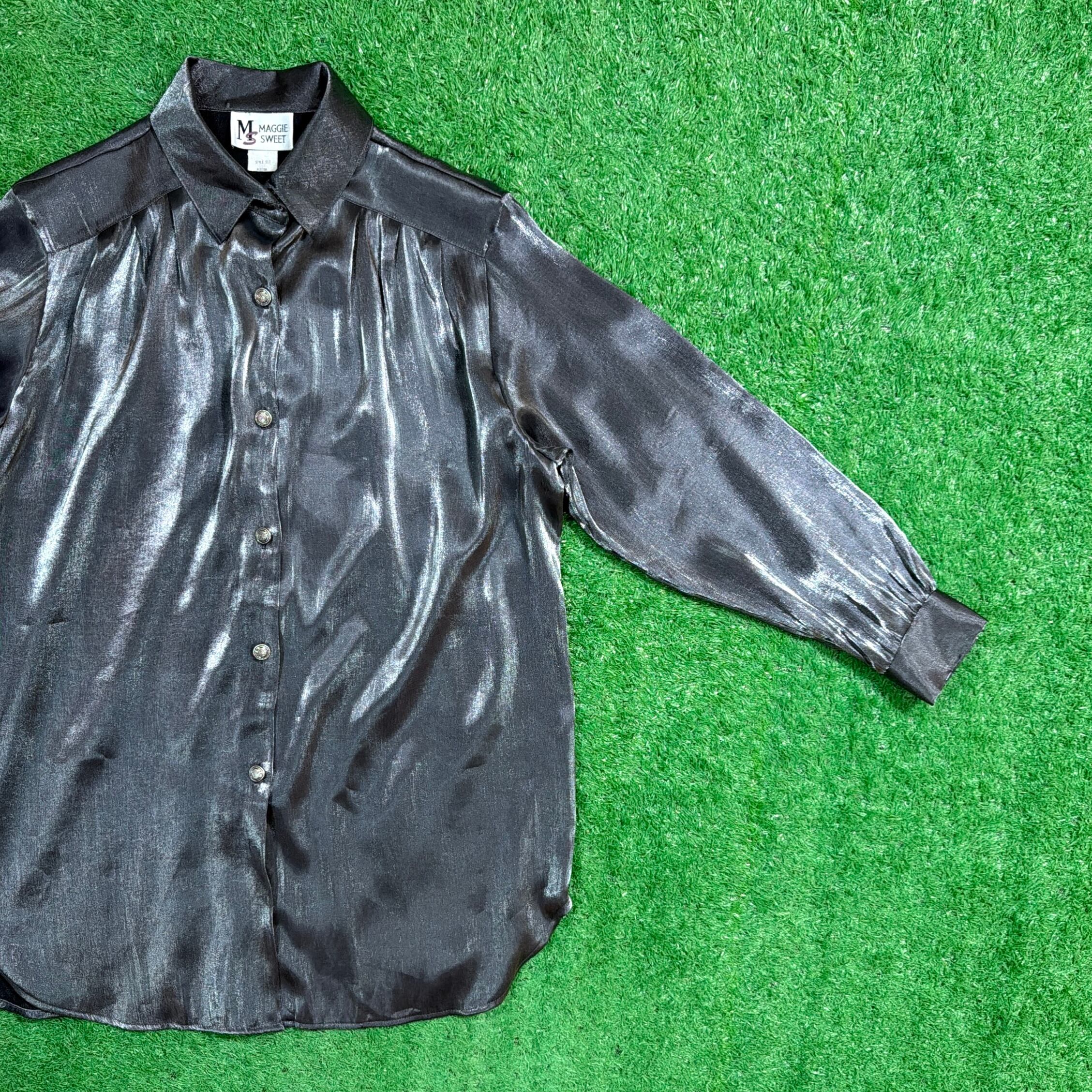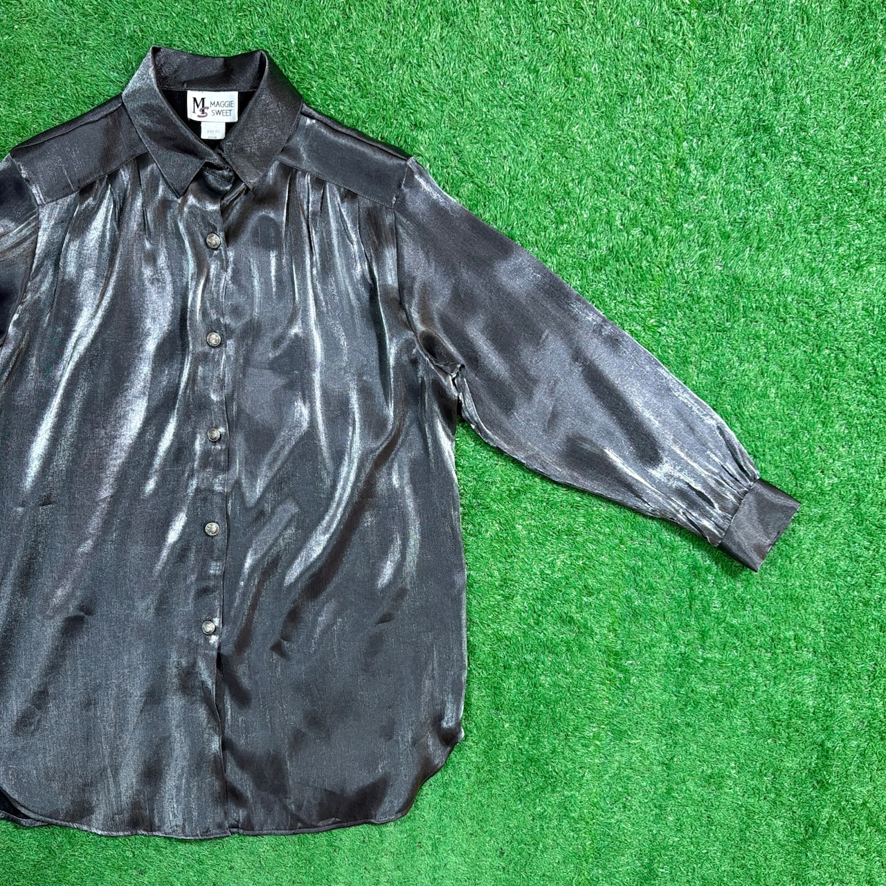 【Lady's】 90s シルバー デザイン シャツ / アメリカ製 USA製 90年代 古着 レディース 長袖 ブラウス 896