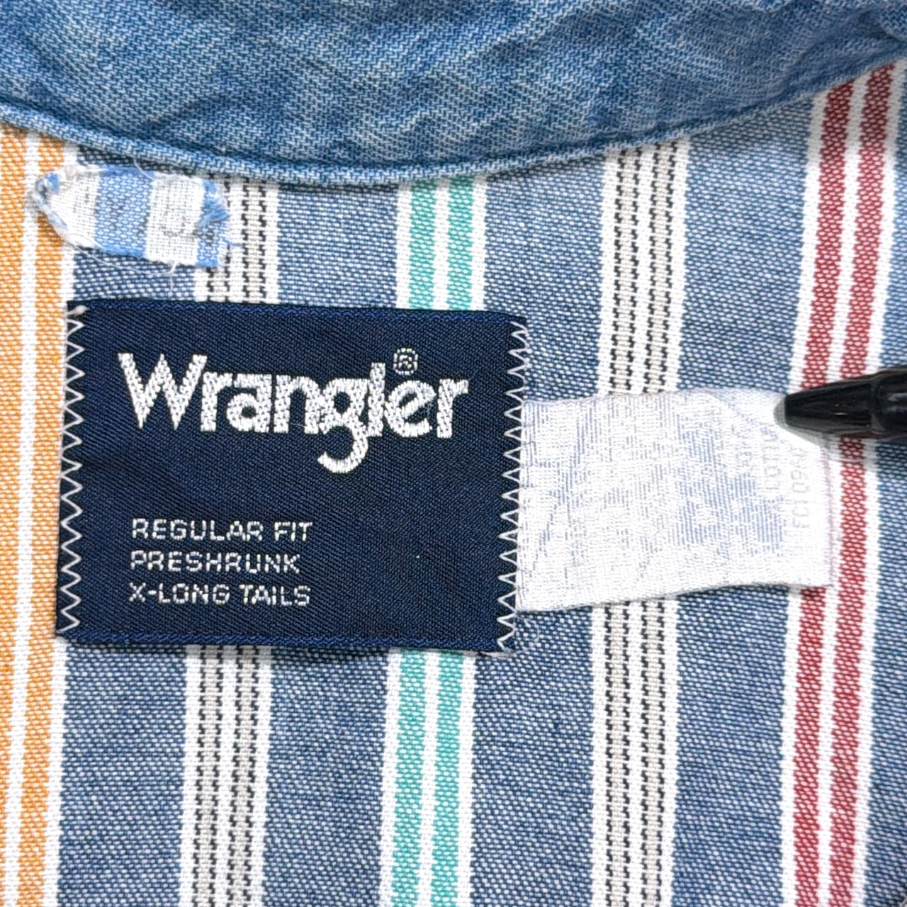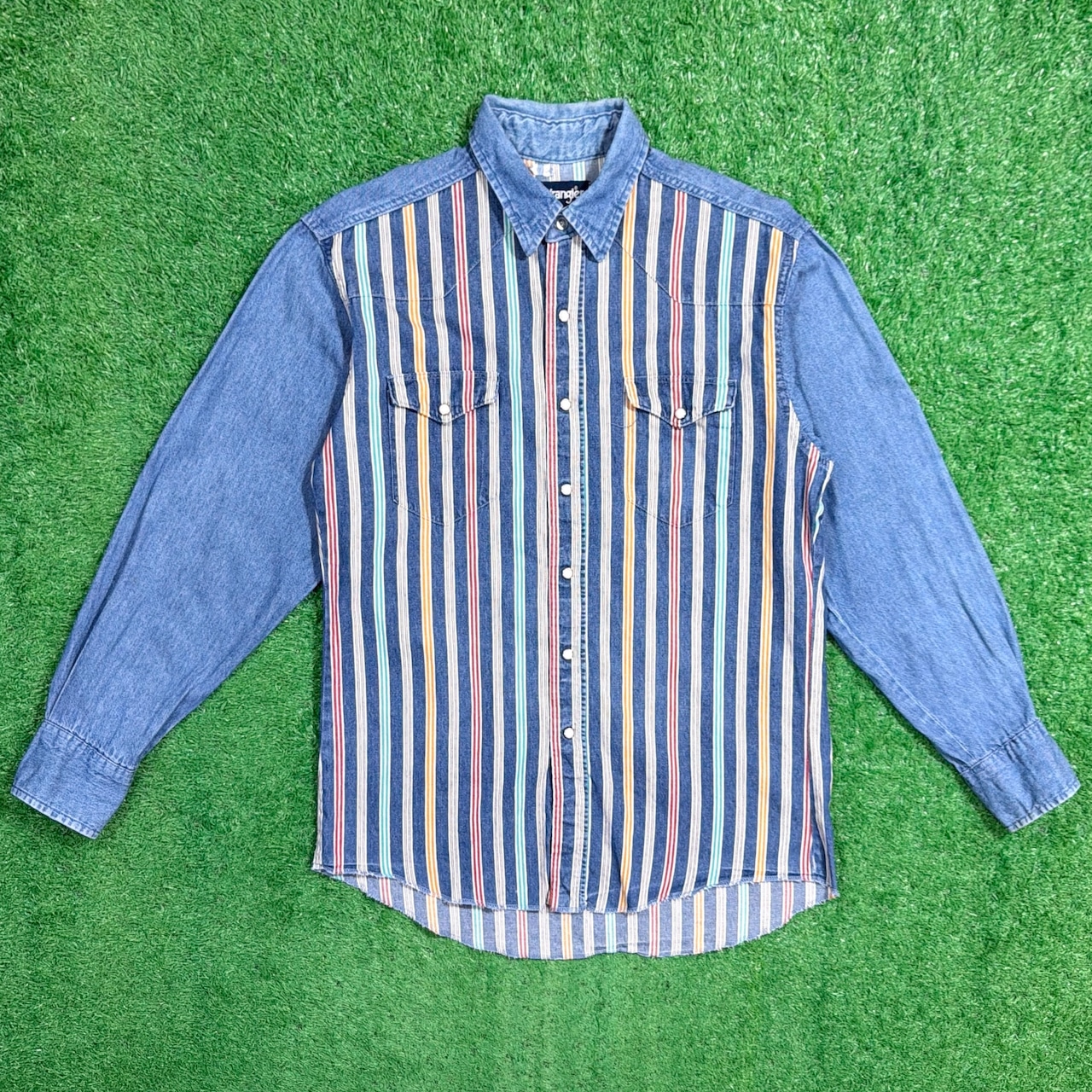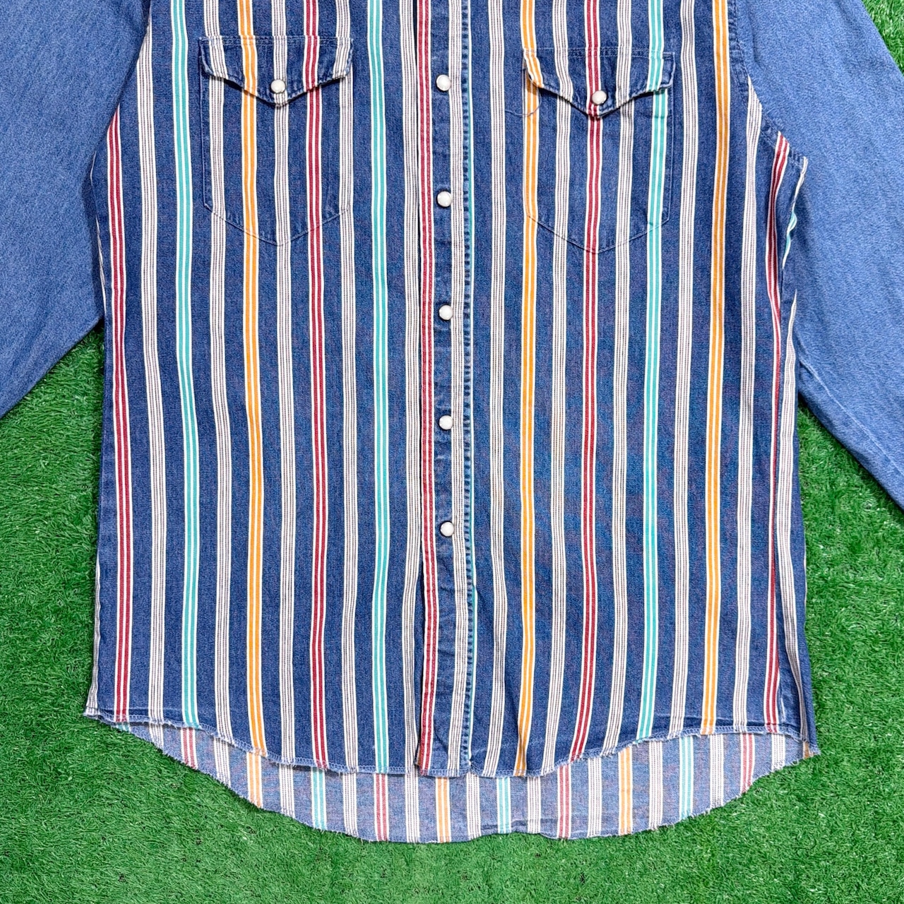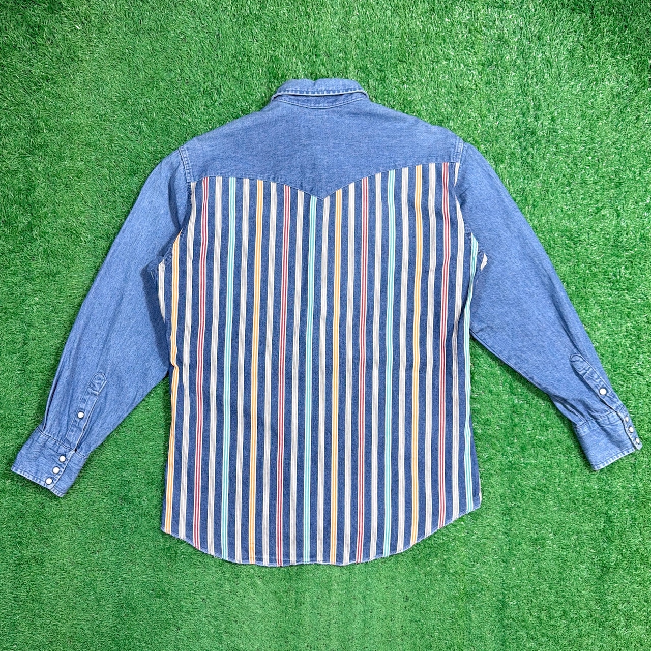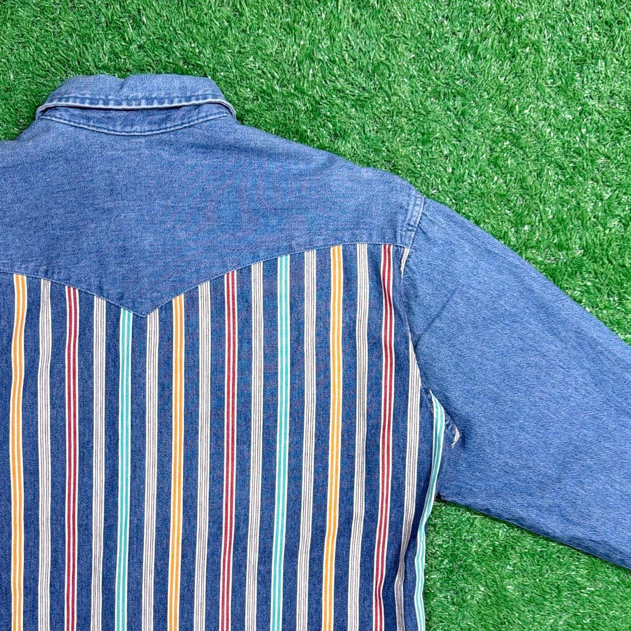 【Men's】 90s Wrangler ストライプ 切り返しデザイン デニムシャツ / 90年代 ラングラー シャツ デニム 長袖 古着 メンズ 903