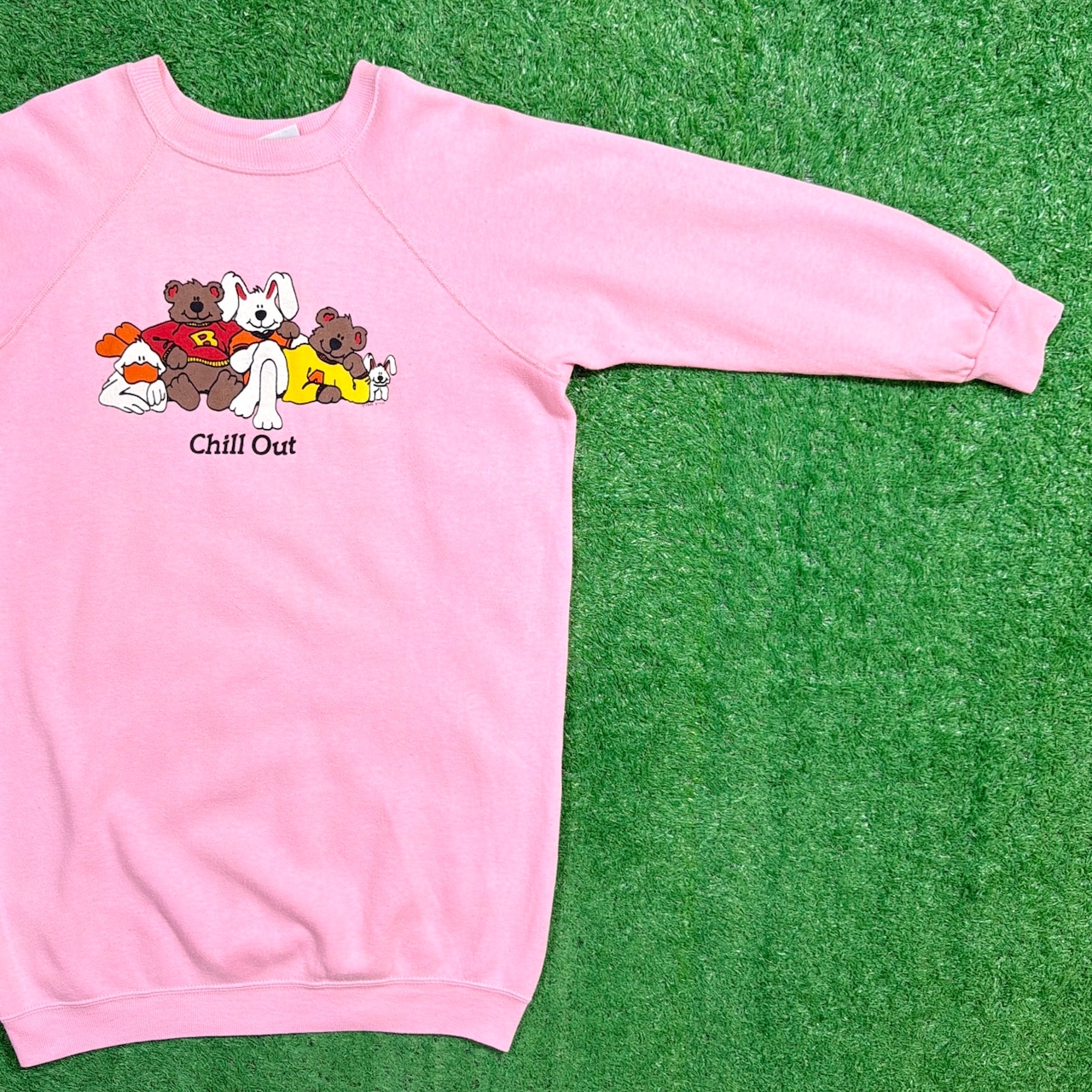 【Lady's】 80s アニマル イラスト スウェット ワンピース / 80年代 古着 動物 ロング丈 スエット トレーナー ピンク レディース 915