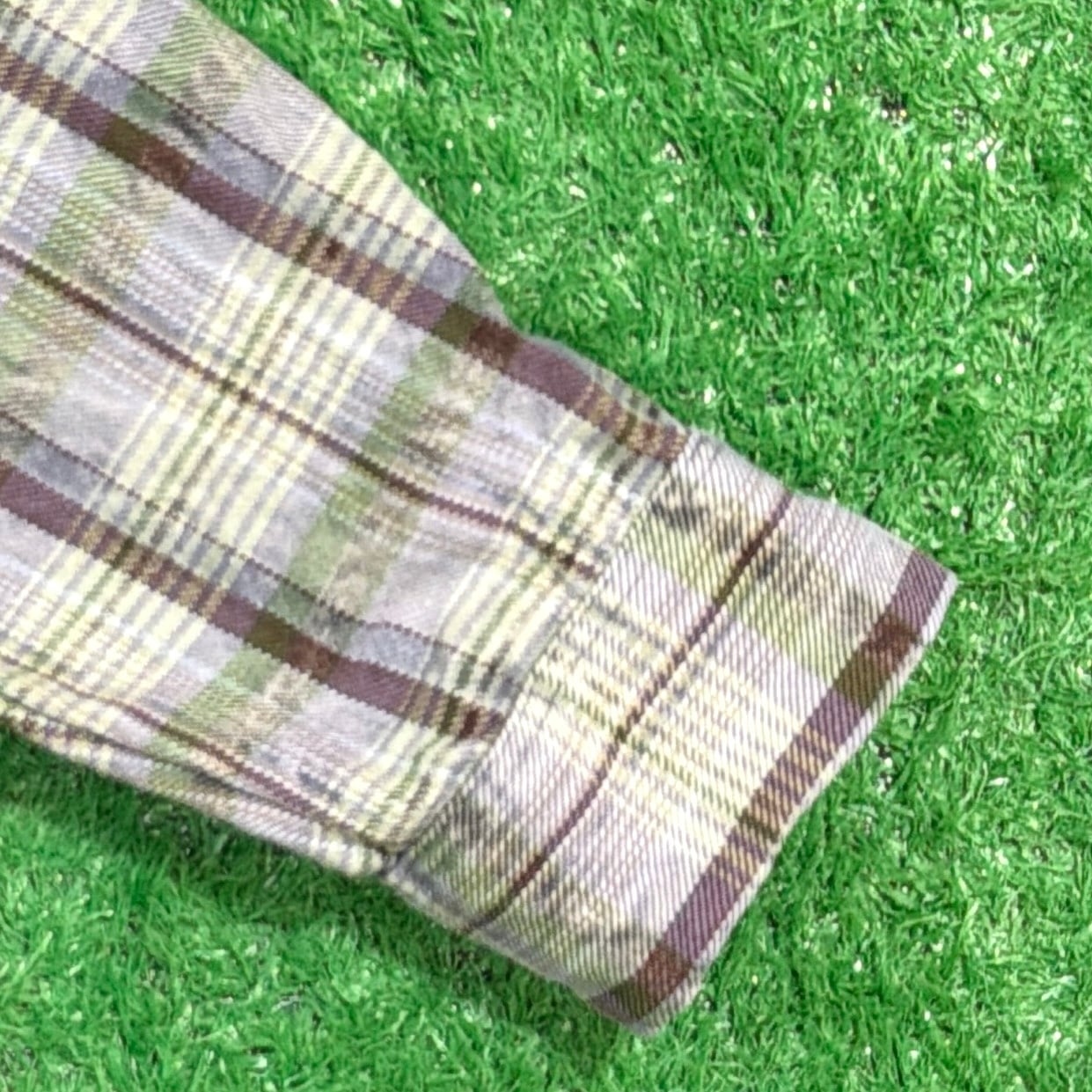グランパシャツとは、ヨーロッパで日常着や作業着としても寝間着としても用いられたロング丈のプルオーバーシャツ。ゆったりした身幅と長い着丈が特徴で、現在ではロング丈シャツの総称としても使われます。こちらは前身頃が膝上、後ろ身頃がふくらはぎほどの丈感。さらりとしたコットン生地に落ち着いたチェック柄がヴィンテージらしい雰囲気を演出します。