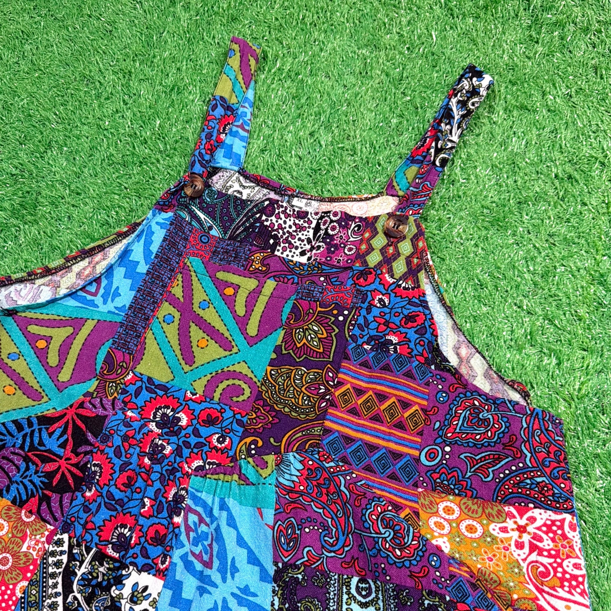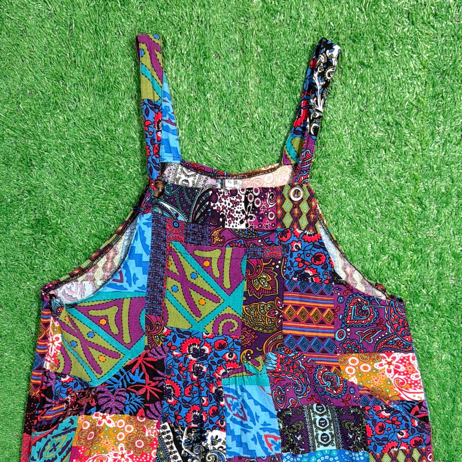 【Lady's】 ボヘミアン パッチワーク風 サロペット / 古着 オーバーオール つなぎ オールインワン 総柄 エスニック ヒッピー 943