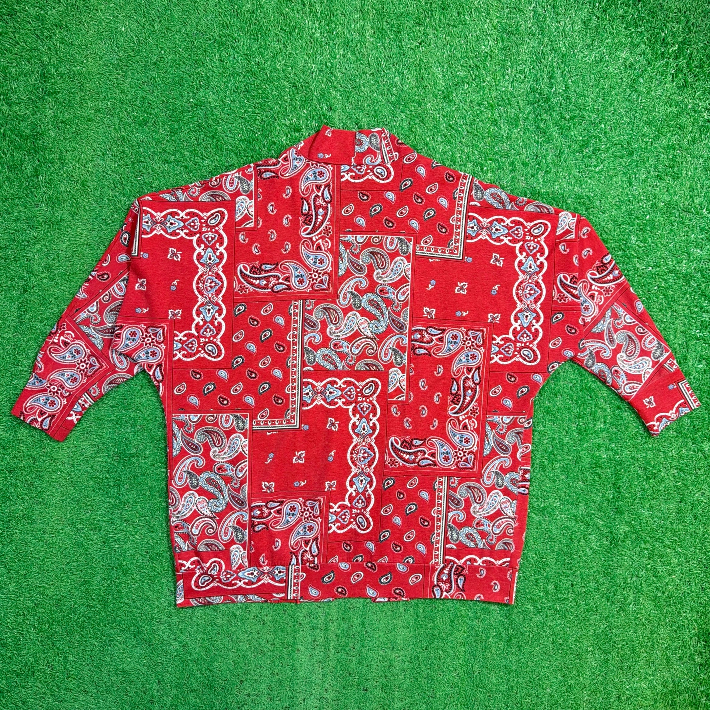 【Men's】 ペイズリー 羽織り ジャケット / 古着 メンズ ガウン 赤 バンダナ柄 950