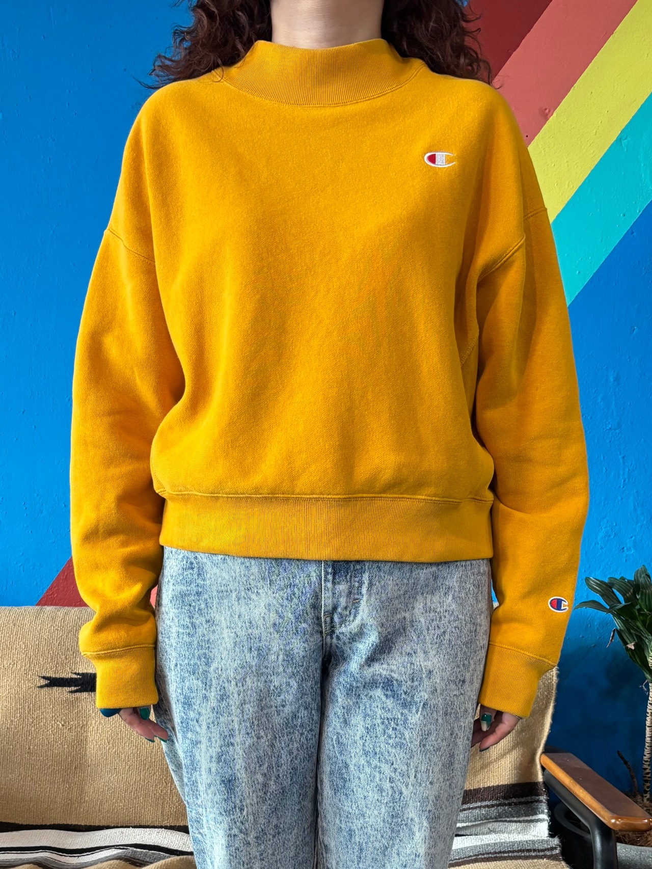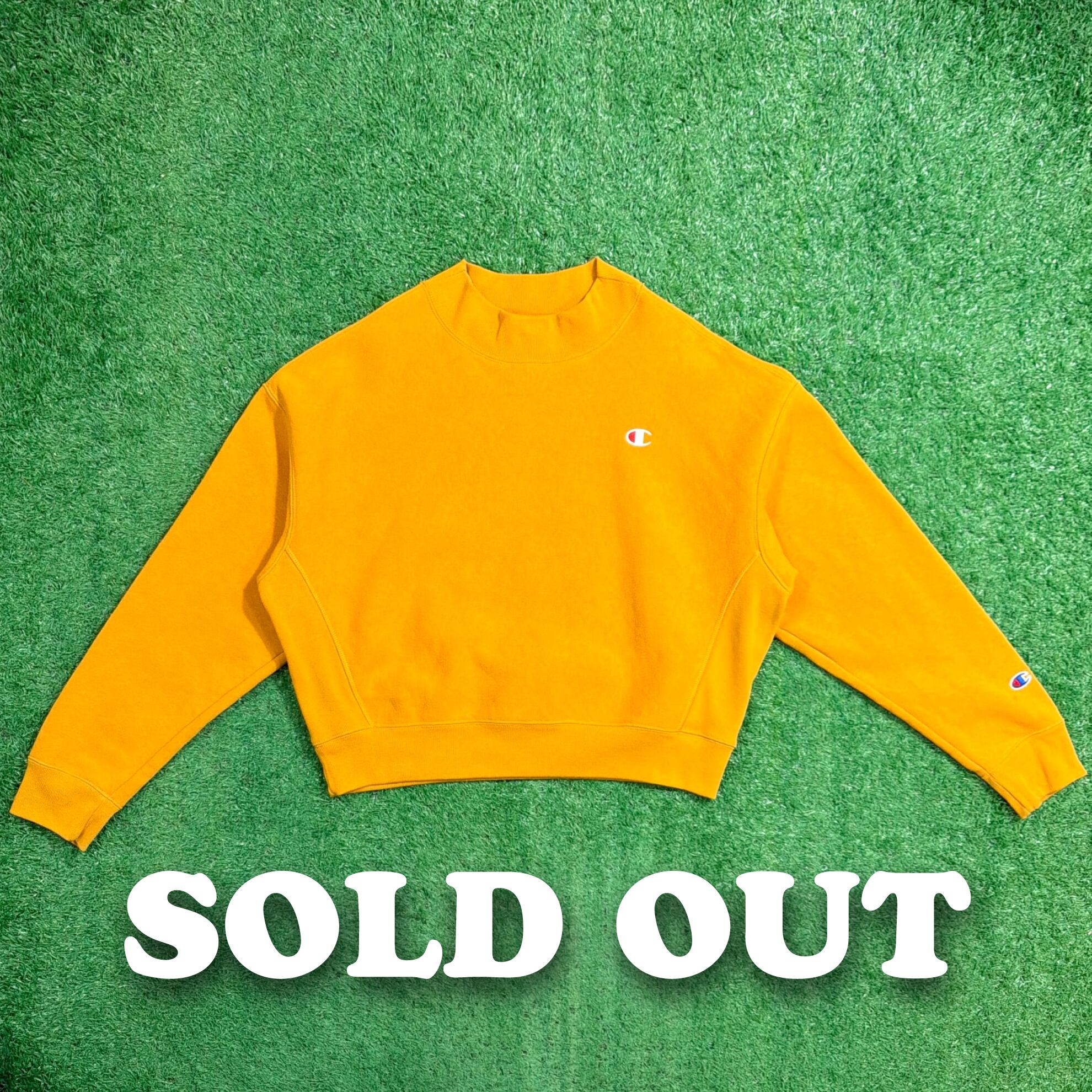【Lady's】 復刻 Champion Reverse Weave モックネック ショート丈 スウェットシャツ / チャンピオン スウェット スエット トレーナー リバースウィーブ 短丈 マスタード 黄色 イエロー レディース 952