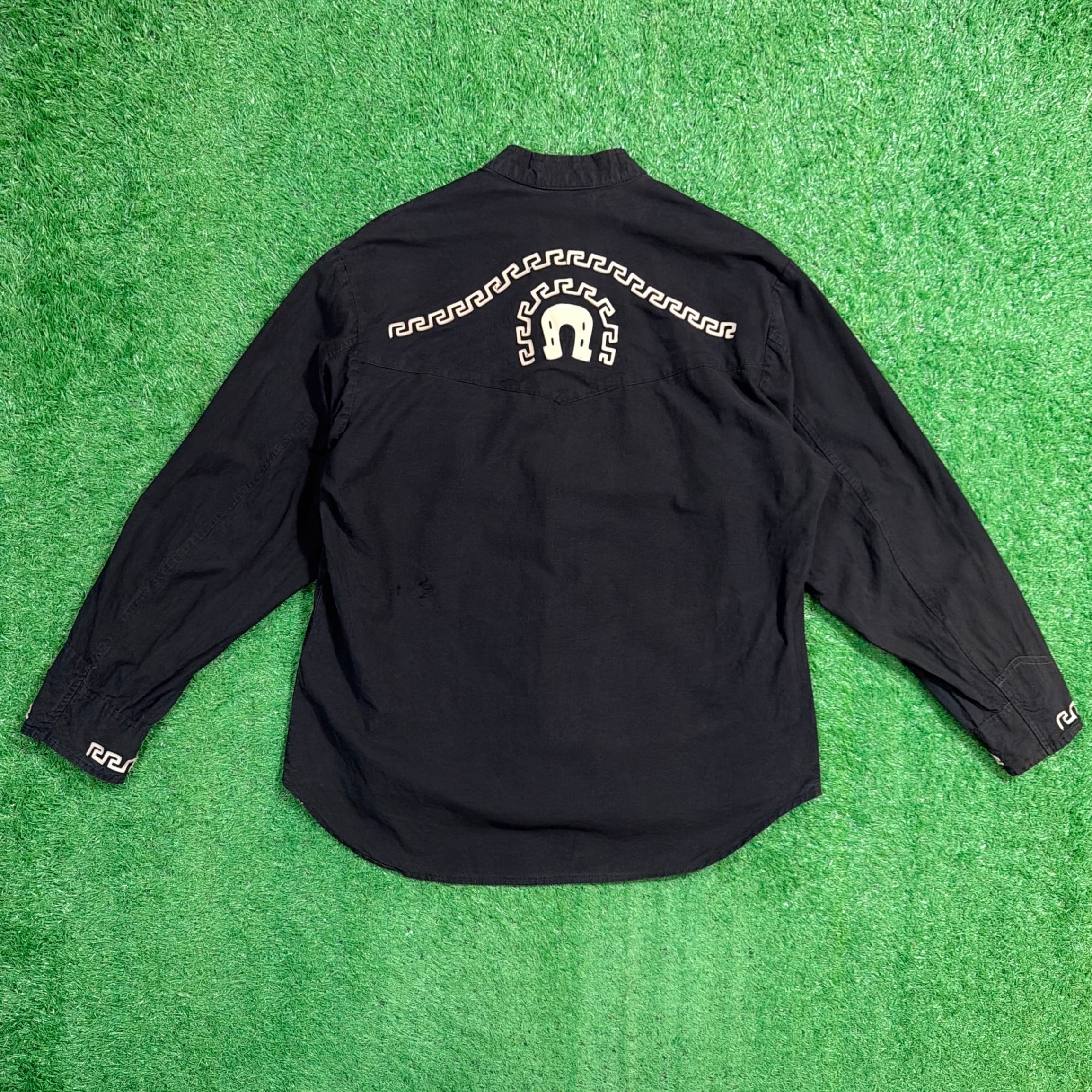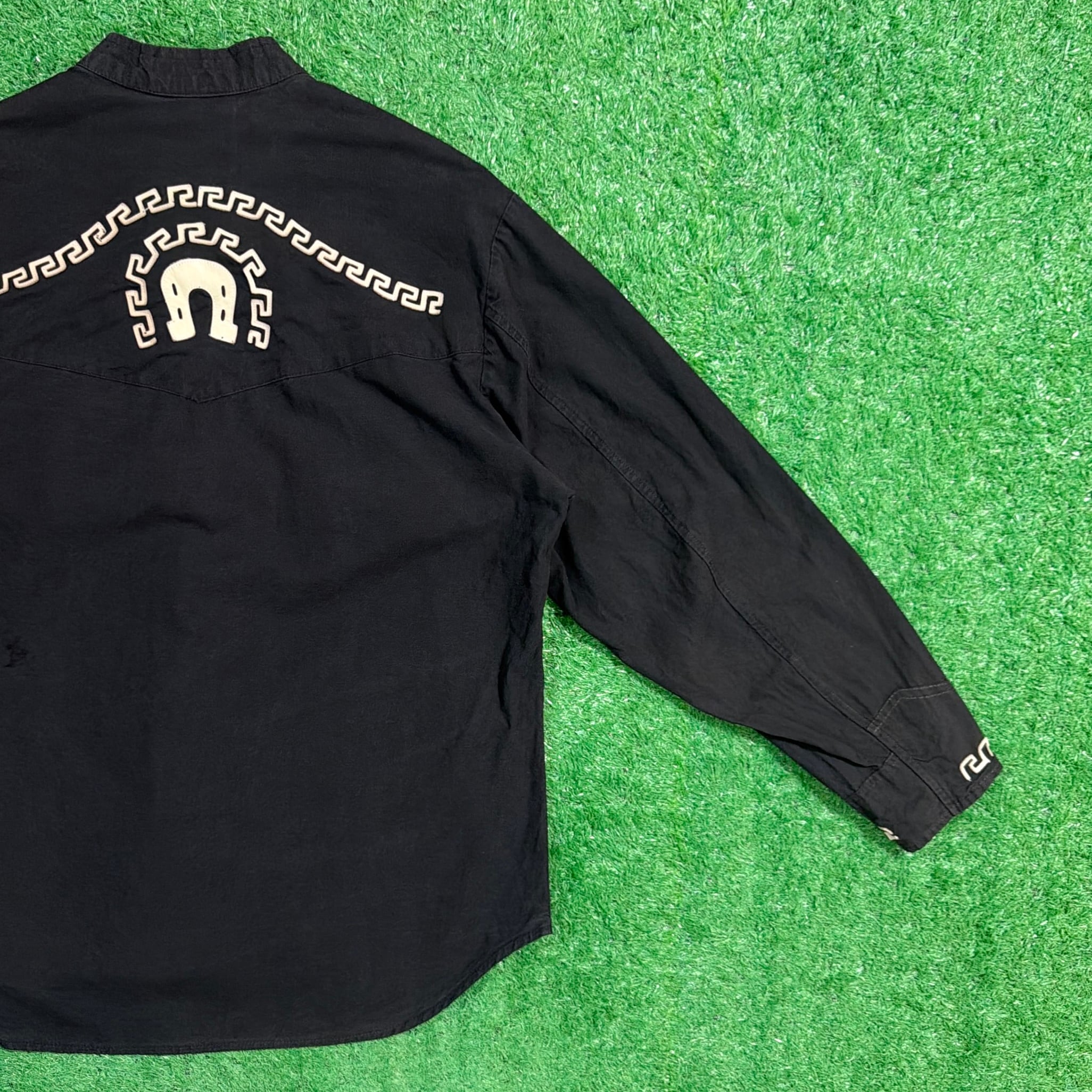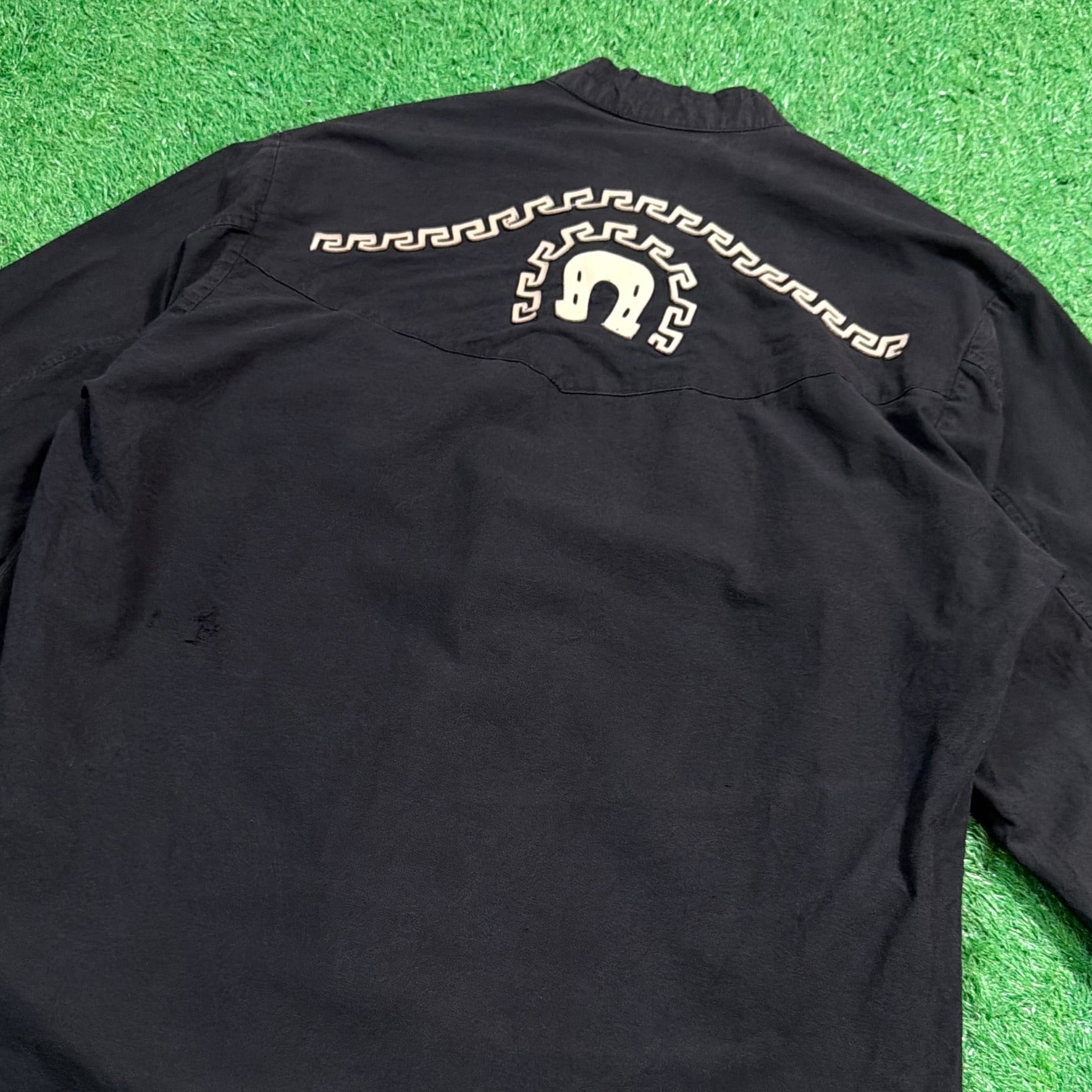 【Men's】 90s メキシカン デザイン スタンドカラー シャツ / 90年代 古着 メキシコ 黒 ブラック メンズ 957