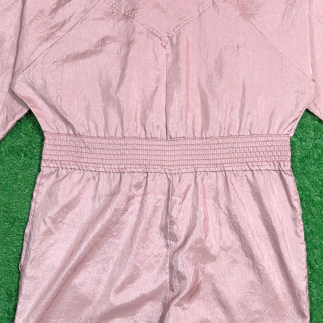 【Lady's】 90s シャイニー 刺繍デザイン ジャンプスーツ / アメリカ製 USA製 90年代 古着 つなぎ レディース ピンク オールインワン 959