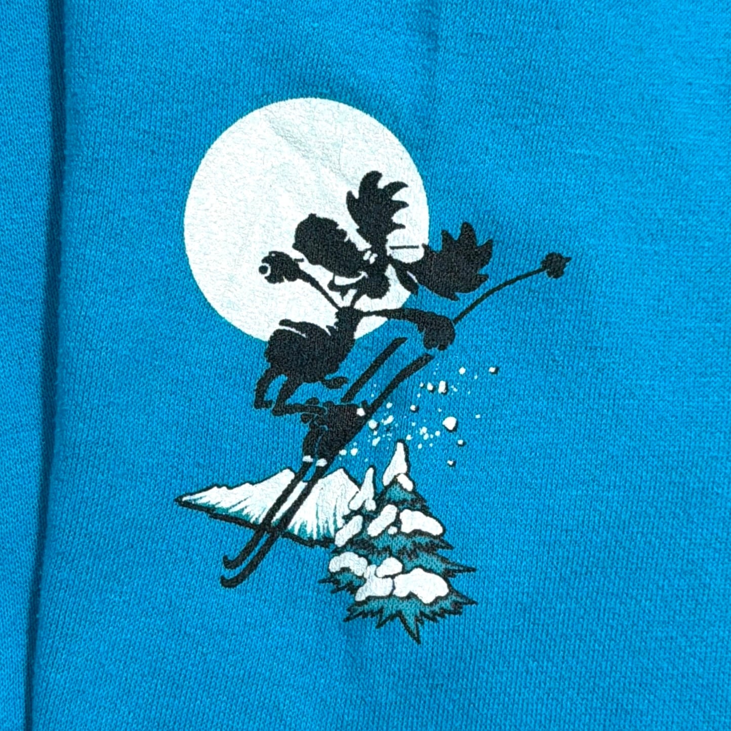 【Men's】 80s トナカイ スキーヤー イラスト スウェットシャツ / アメリカ製 USA製 90年代 スウェット スエット トレーナー ブルー 青 963