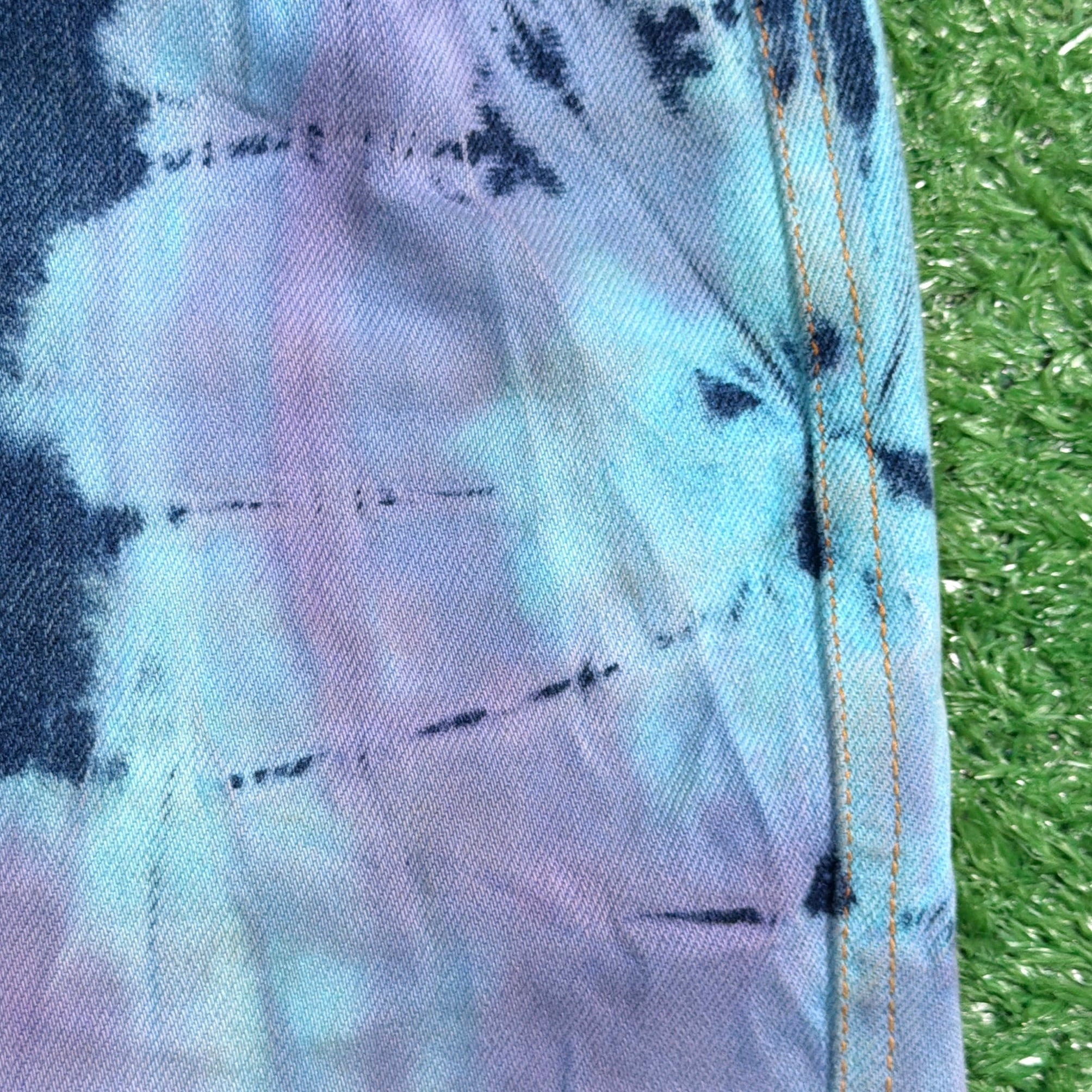 印象的なタイダイ柄が目を引く一本。アート感のある染めムラがヴィンテージならではの雰囲気を演出しています。ウエスト位置がやや高めのハイウエストシルエットで、脚をすっきり見せてくれるバランス。