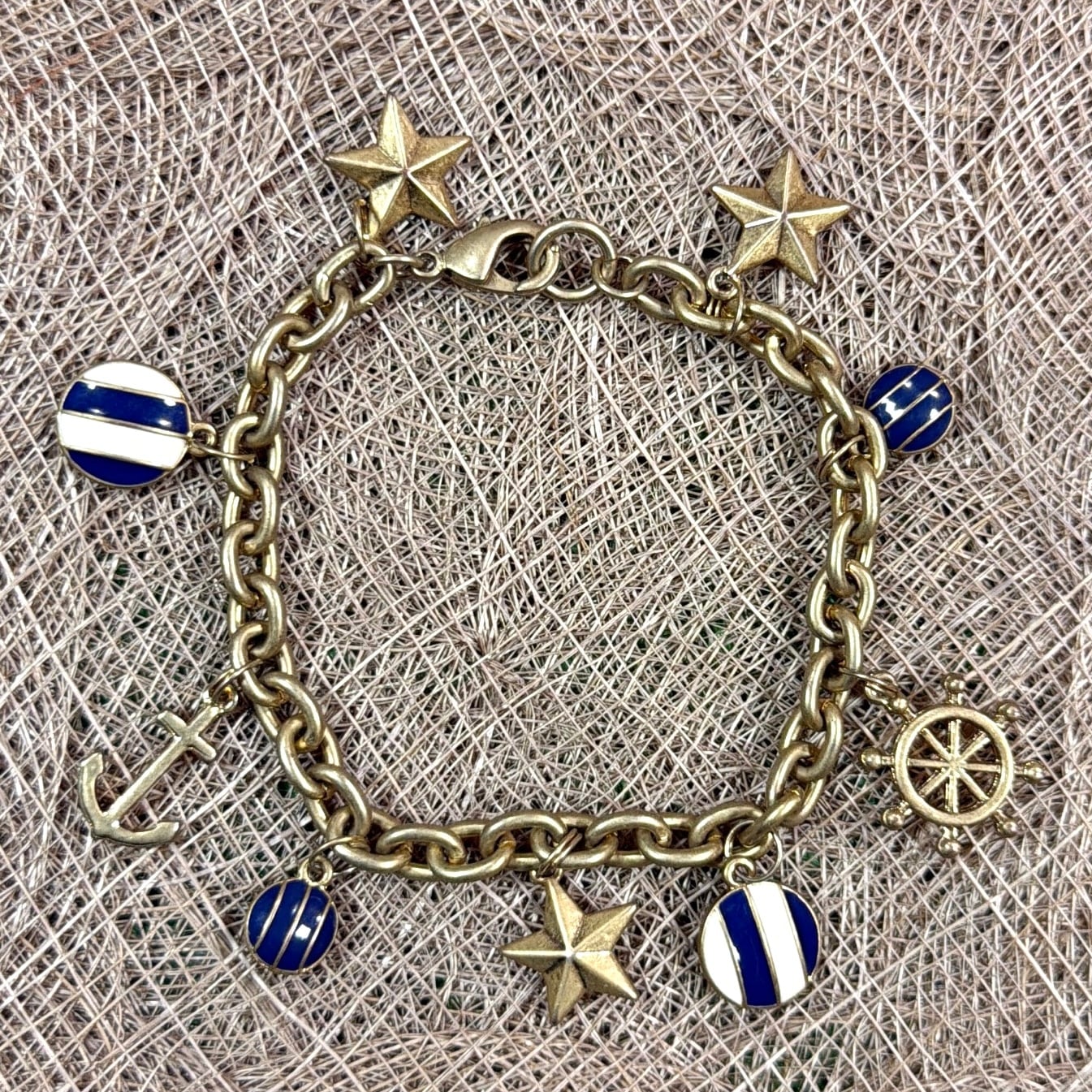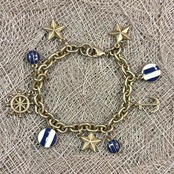 アンティーク調のゴールドカラーで仕上げられた、マリンモチーフのチャームブレスレットです。