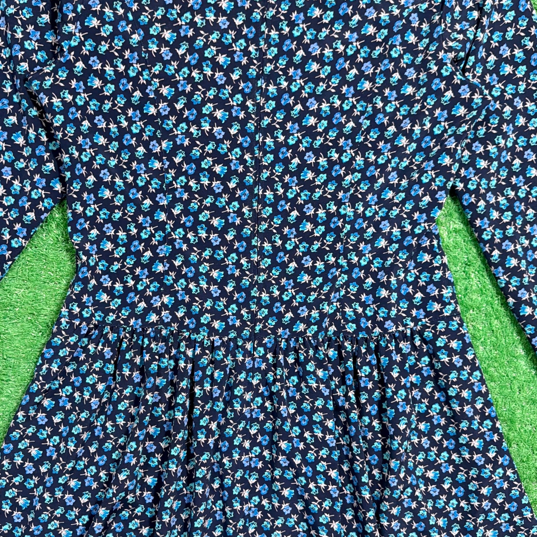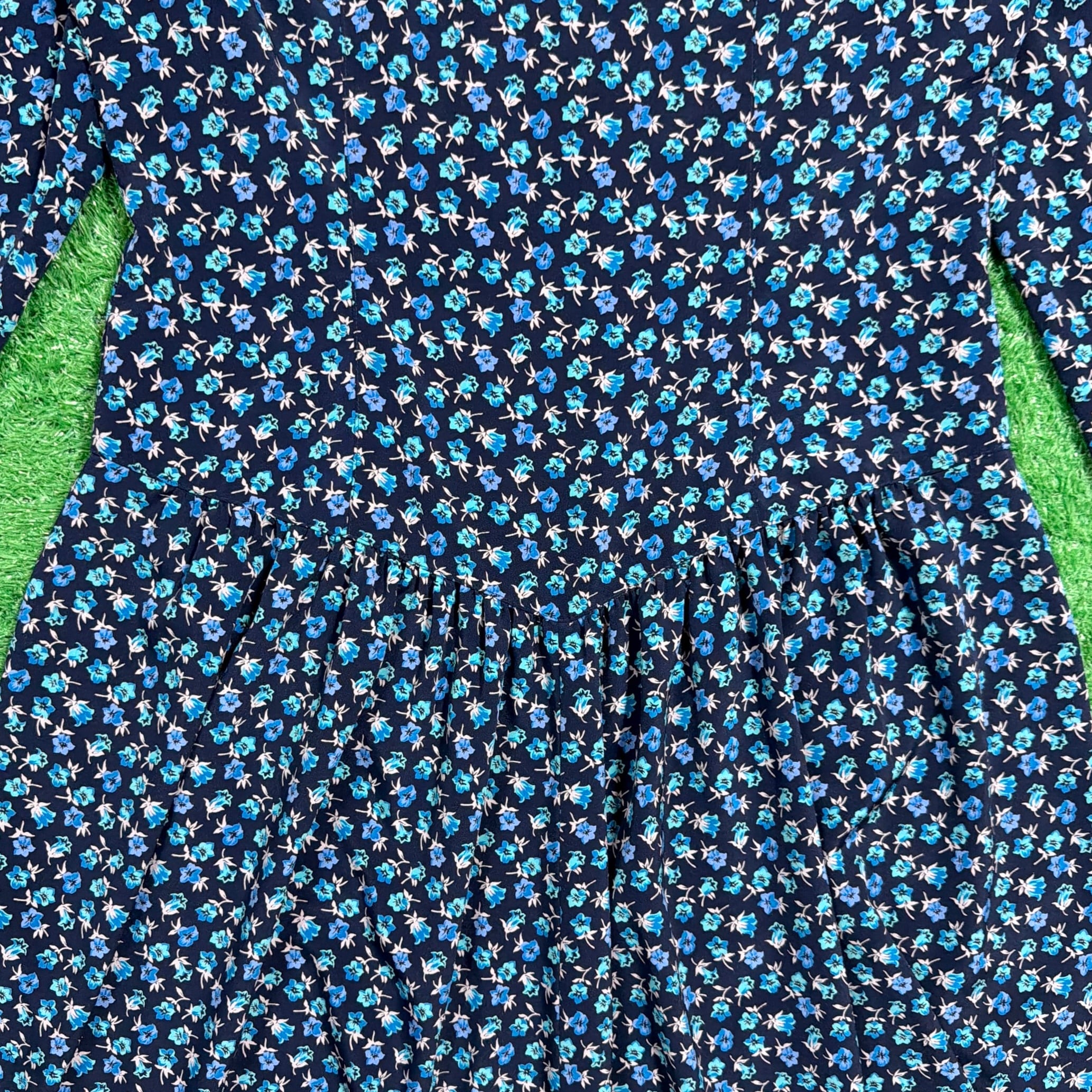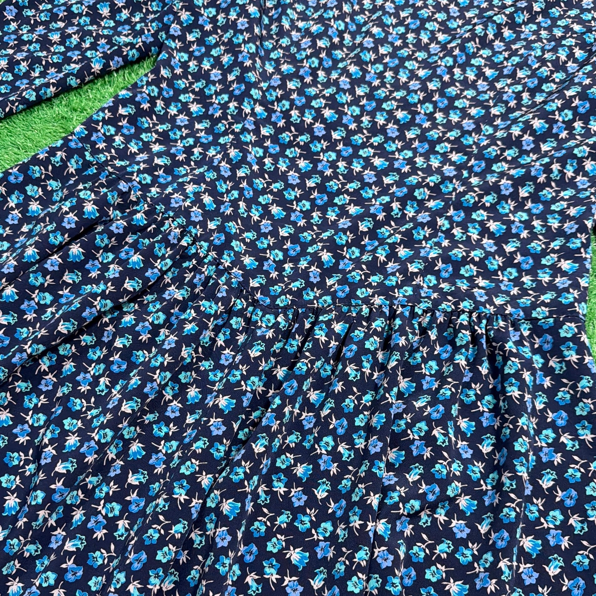 ブルーの花柄が華やかで、レトロな雰囲気を漂わせる1着。