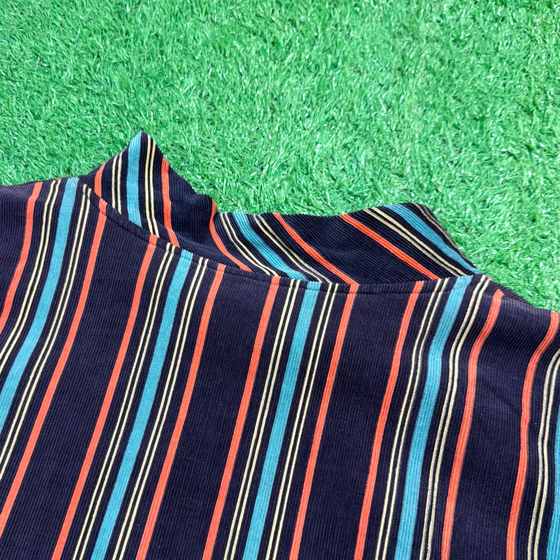 【Lady's】 コーデュロイ モックネック トップス / 古着 ストライプ レディース レトロ 987
