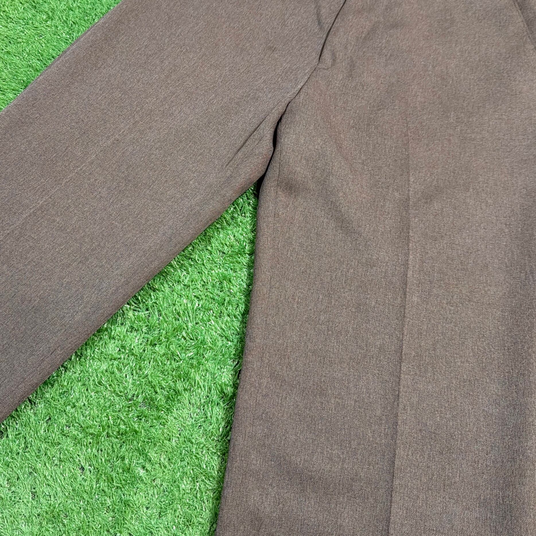 シルエットは腰まわりに少しゆとりをもたせたストレート寄り。上品なブラウンカラーが落ち着いた印象で、大人のカジュアルスタイルに馴染みやすいデザインです。