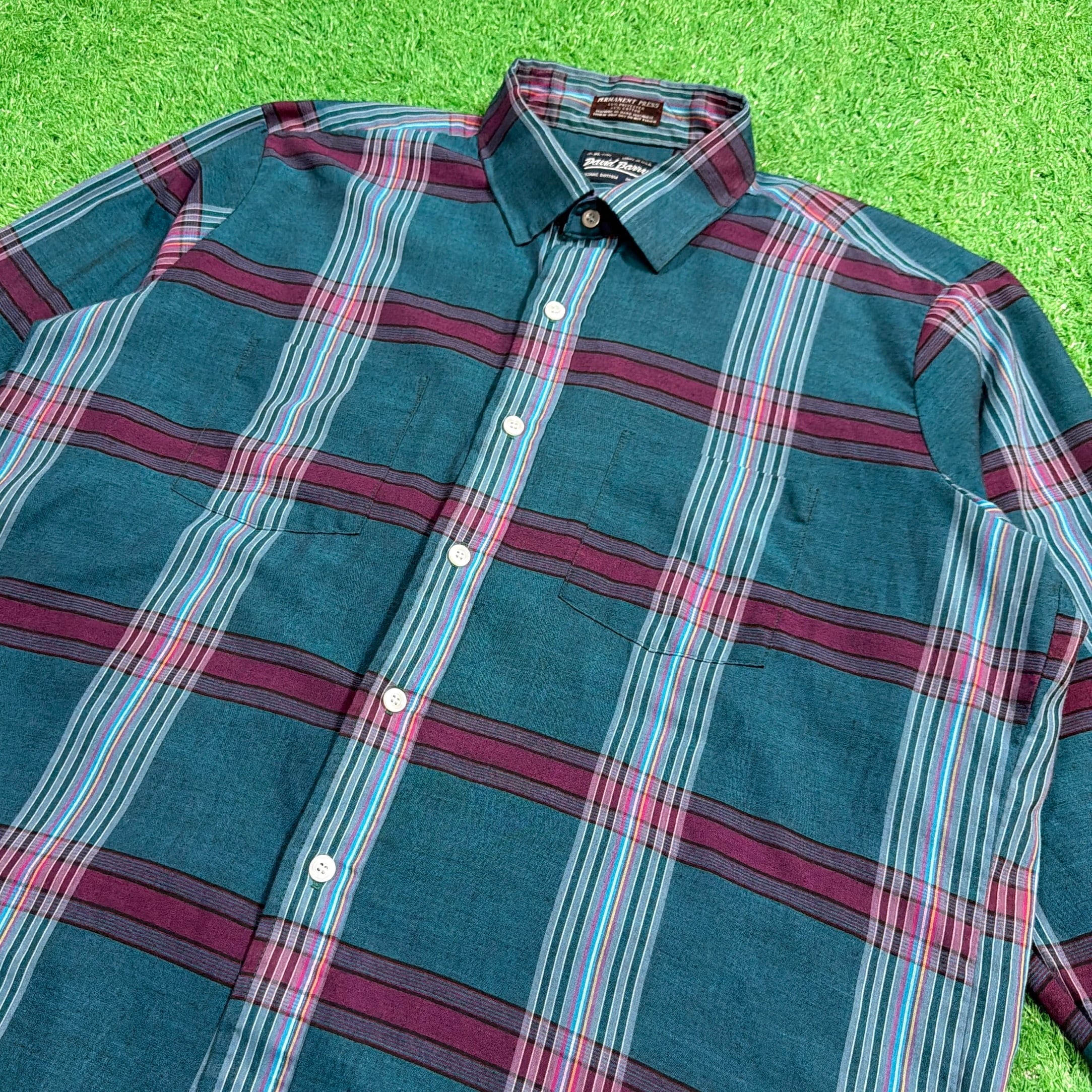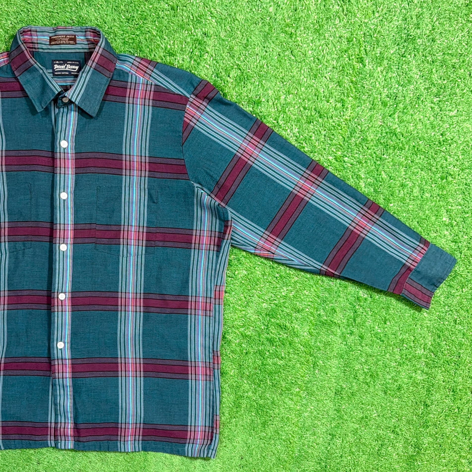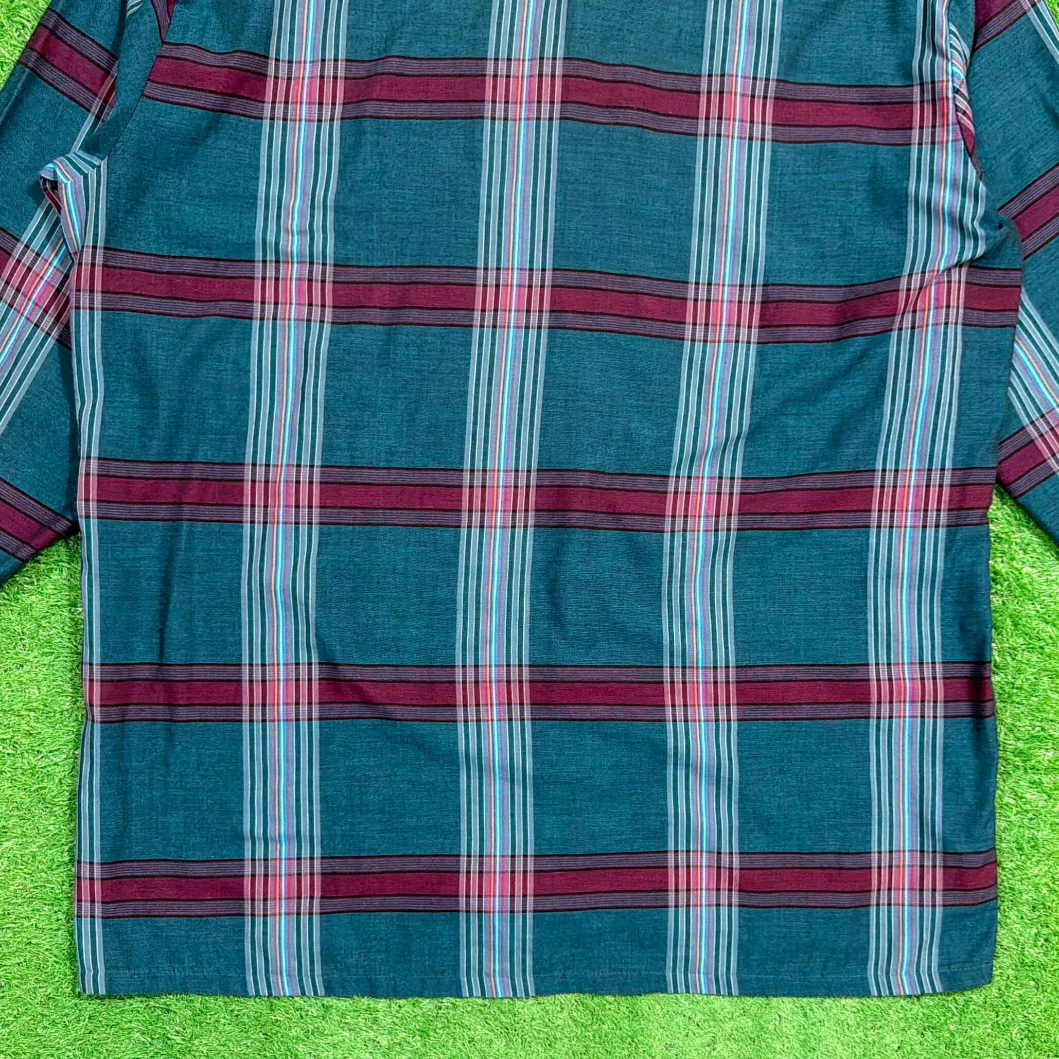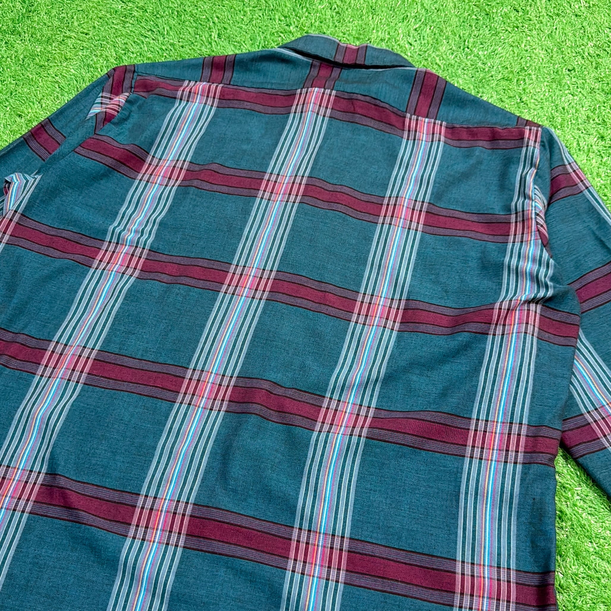 1990年代のアメリカ製、ポリコットン素材のチェックシャツです。