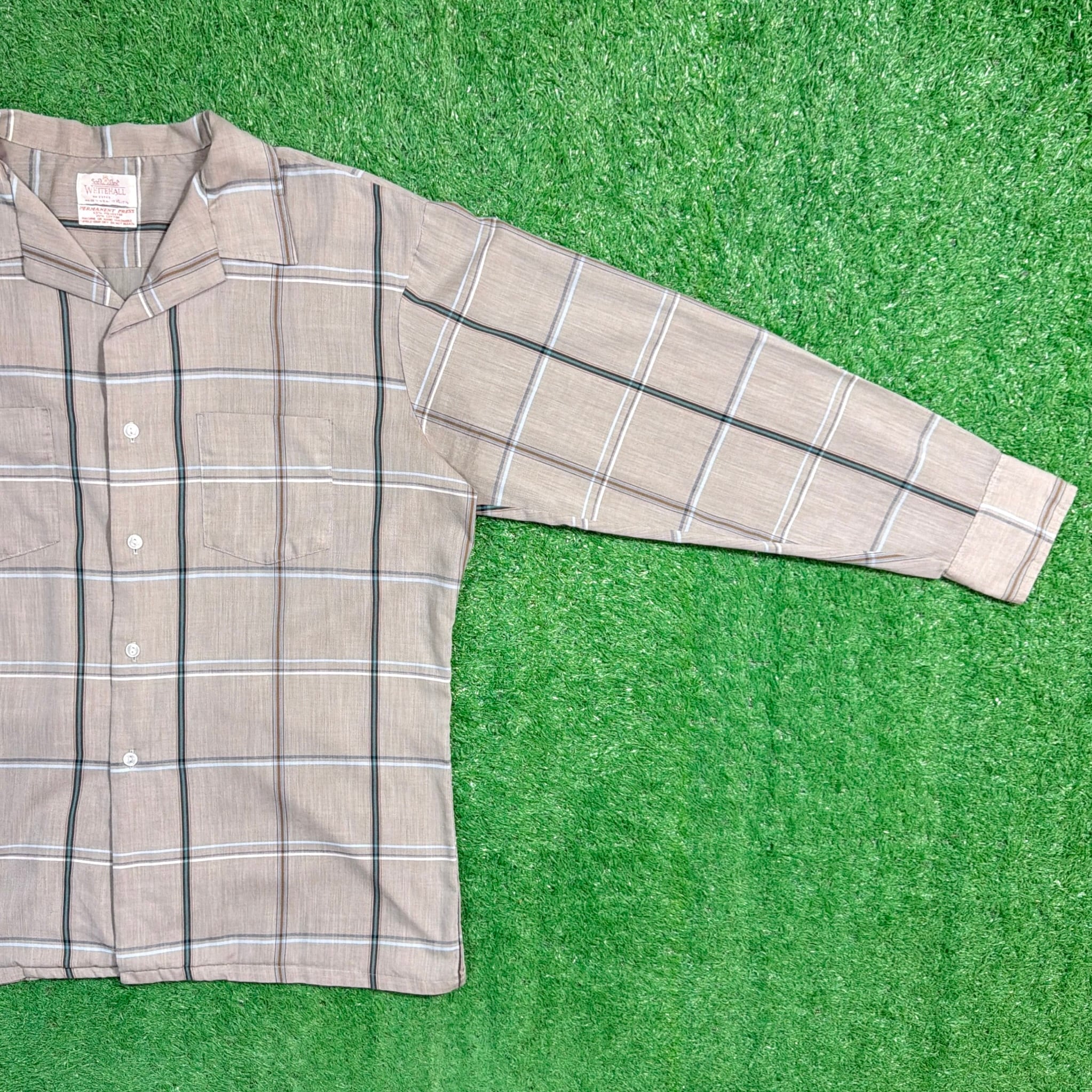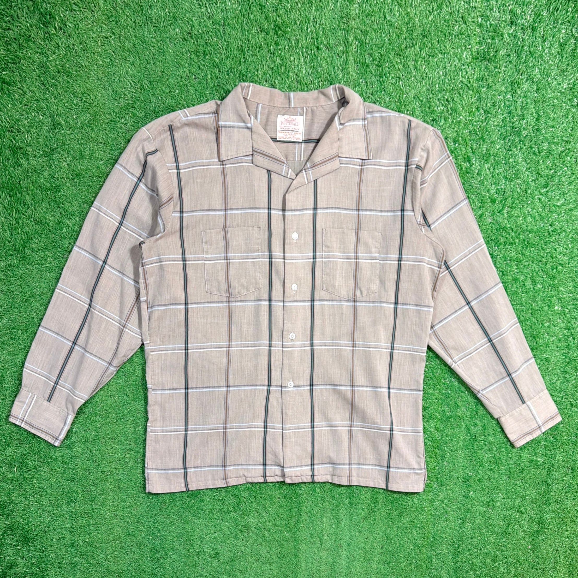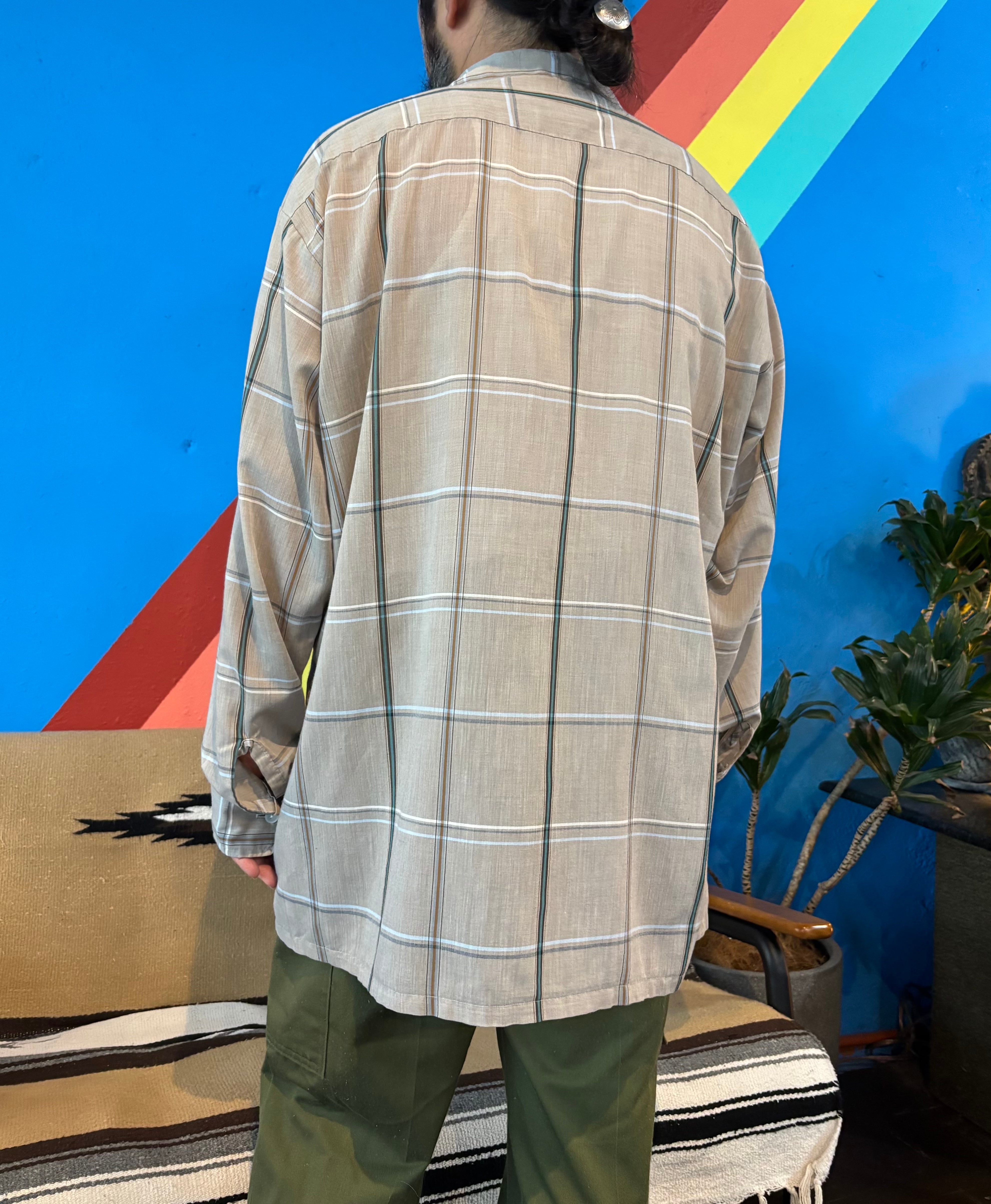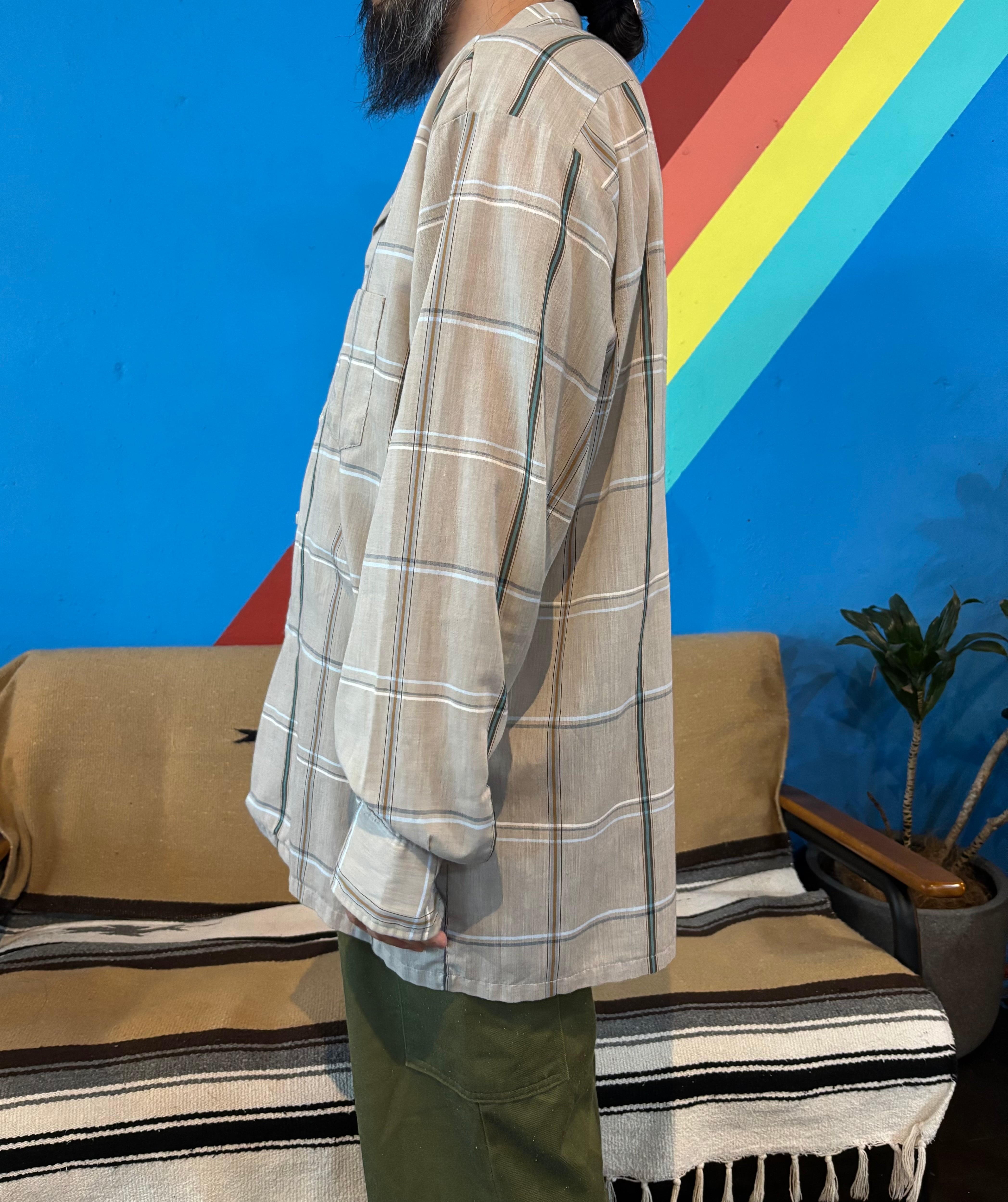 【Men's】 70s チェック 開襟シャツ / アメリカ製 USA製 70年代 古着 シャツ 開襟 長袖 メンズ 1004