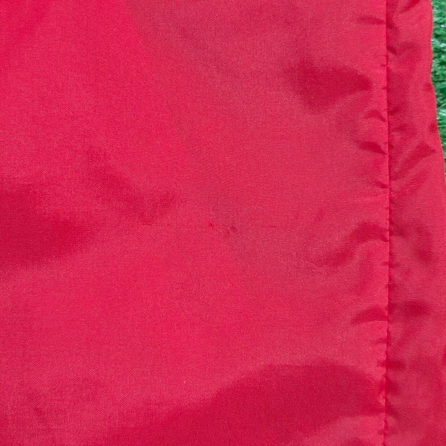 レトロなカラーリングが印象的な1着で、フードは襟元に収納できるタイプ。裏地のない軽量仕様で、春秋のライトアウターとして使いやすいアイテムです。さらっとしたナイロン生地で、光沢のある質感が80sらしい雰囲気を演出。裾にはドローコードが付いており、シルエットの調整も可能です。